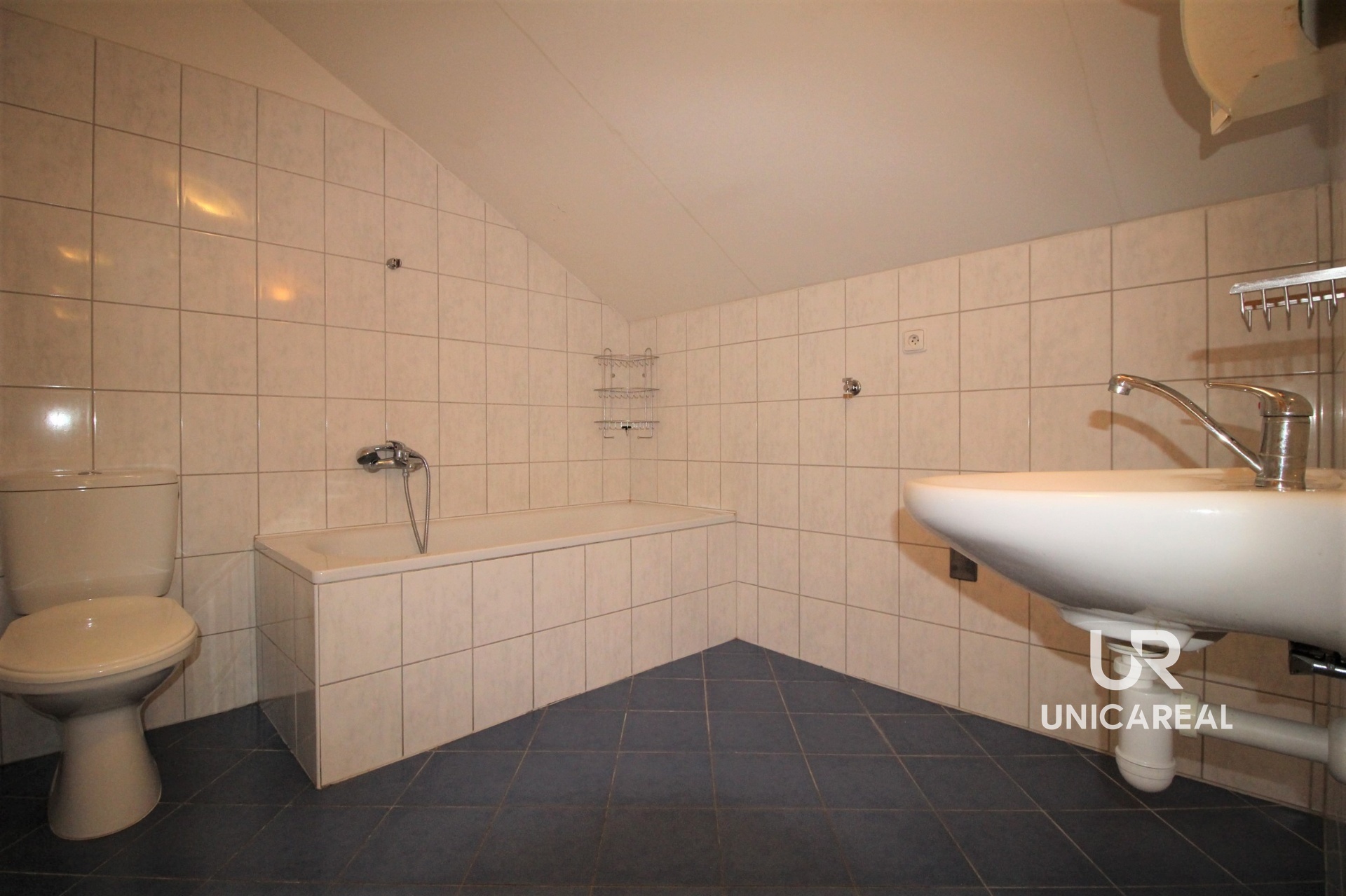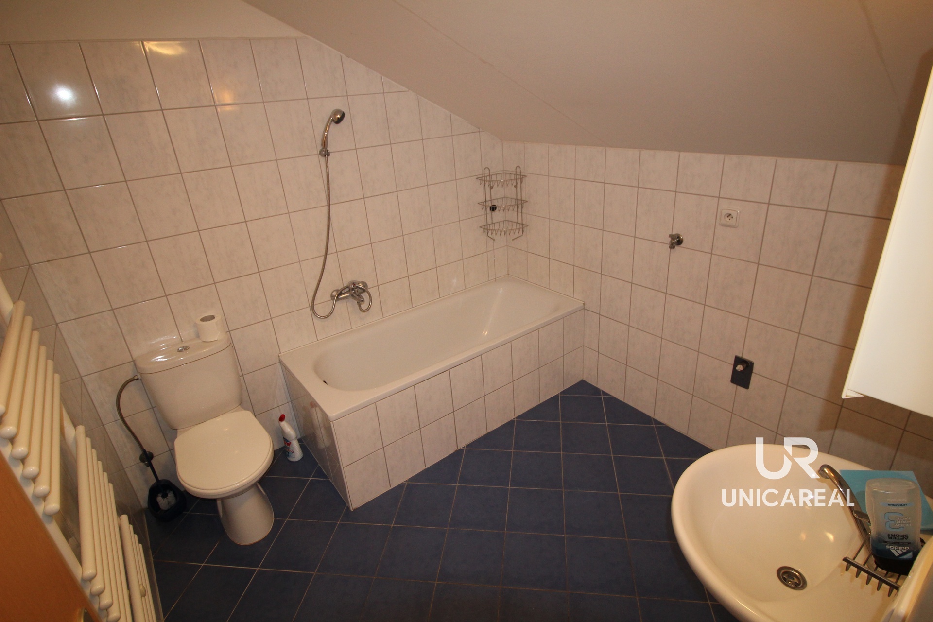 Byt není zařízený, jen skříň v chodbě zůstává a v pokoji (cca 28 m2) kuchyňská linka s elektrickým sporákem. Koupelna je prostorná s vanou a společná s WC. Okna i terasa (cca 6 m2) jsou situovány do vnitrobloku.