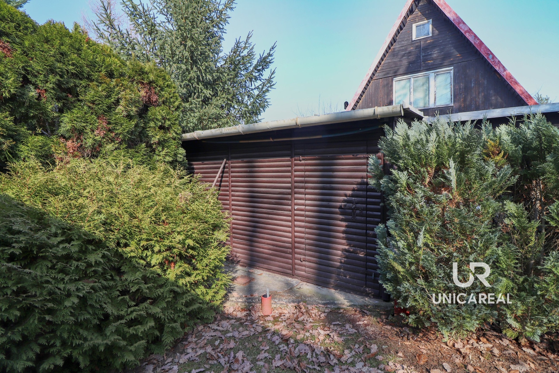 Na pozemku se dále nachází samostatná dřevěná kůlna vhodná pro uskladnění nářadí, dřeva či zahradního vybavení.
