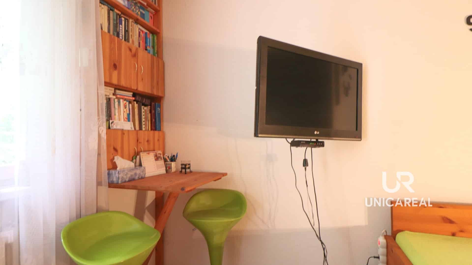 Byt se nabízí s celkovým velmi pěkným vybavením nábytku na míru, tj. dřevěná postel s úložným prostorem, dvě velké šatní skříně, psací kout s policovým úložným prostorem, sedačka, mobilní konferenční stolek i mobilní křesílka.