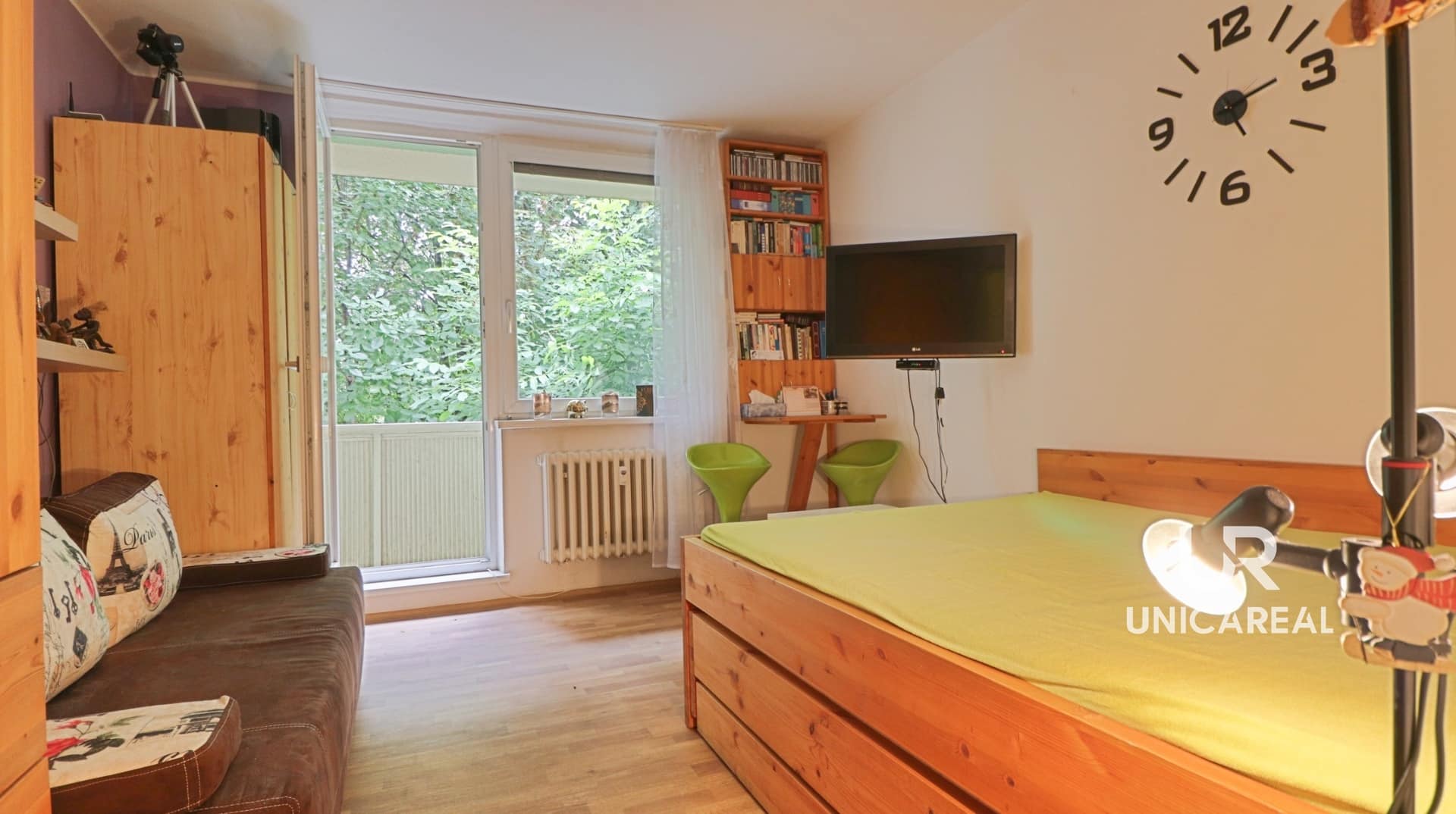 Byt o velikosti 20,1 m2 s balkonem je situován v 2. nadzemním podlaží panelového bytového domu po revitalizaci.