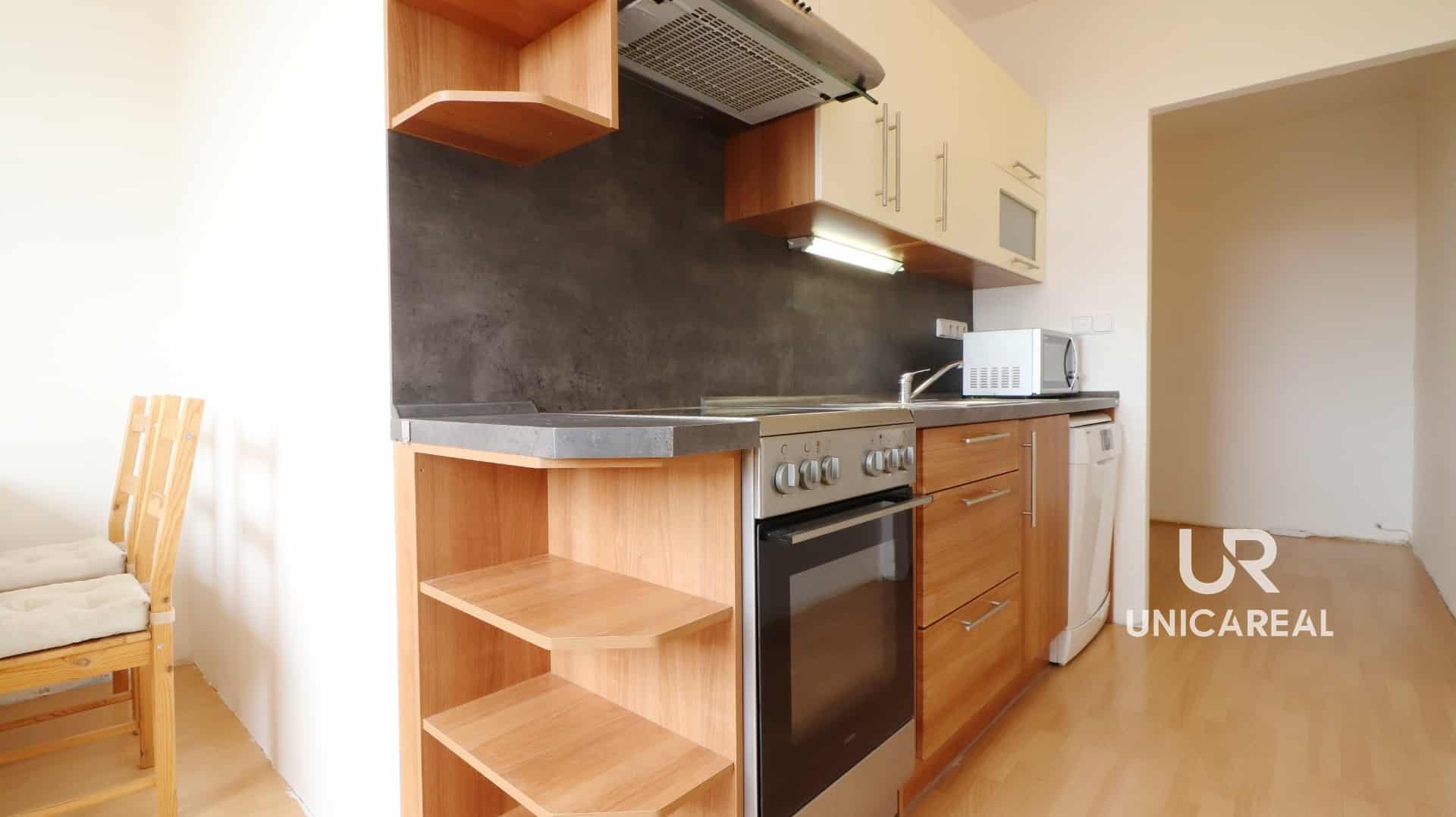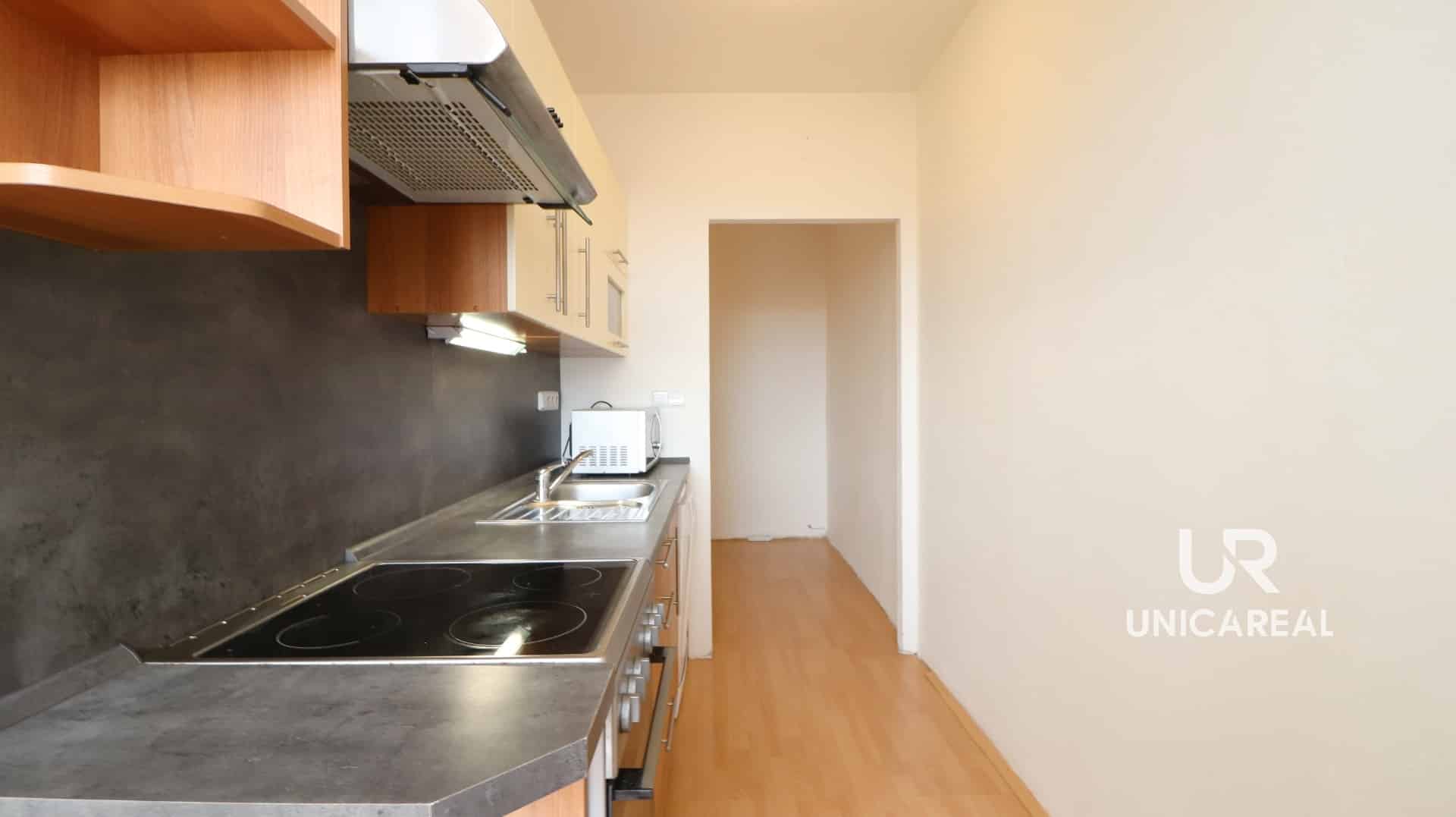 Dispozičně je tvořen kuchyní s výměrou 11,5 m2 s vkusně řešenou kuchyňskou linkou a vestavěnými spotřebiči, dvěma pokoji 16 m2 a 12 m2 se samostatnými vstupy a balkónem 4 m2 s výhledem do zeleně a orientací na východ.