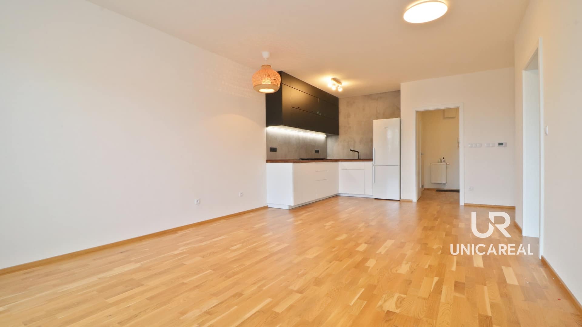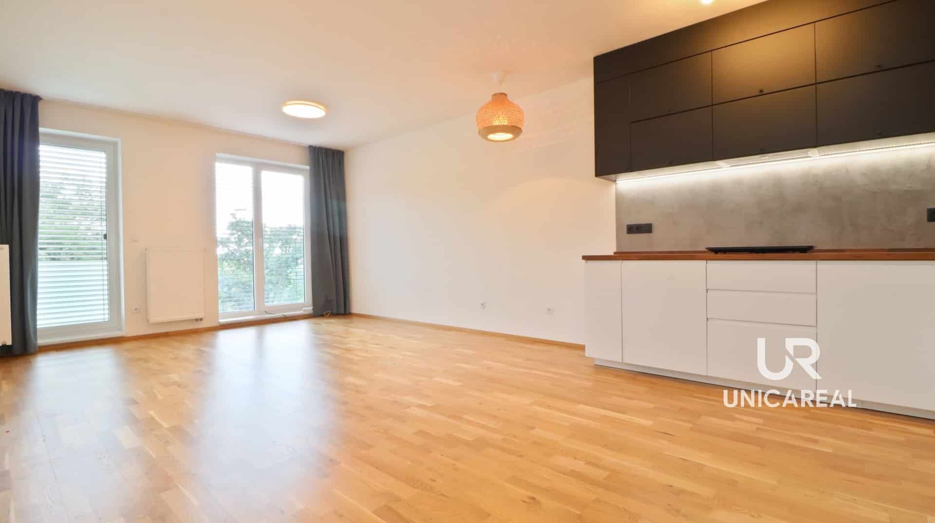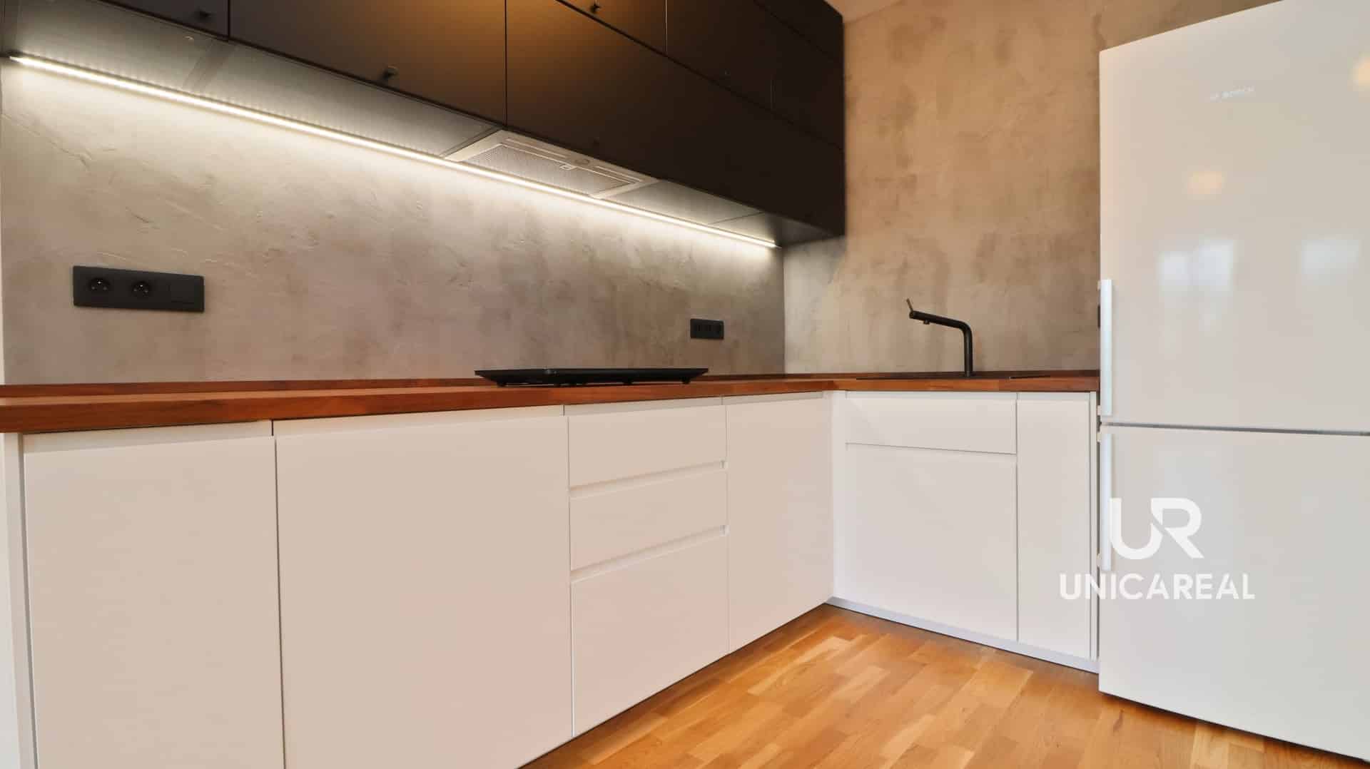 Tento moderní otevřený koncept bydlení zaujme především obývací částí s kuchyňským koutem o velikosti 30 m2 jehož srdcem je právě trendová kuchyně s dostatkem úložných prostor, která vypadá skvěle v kombinaci s dřevěnou dubovou podlahou.