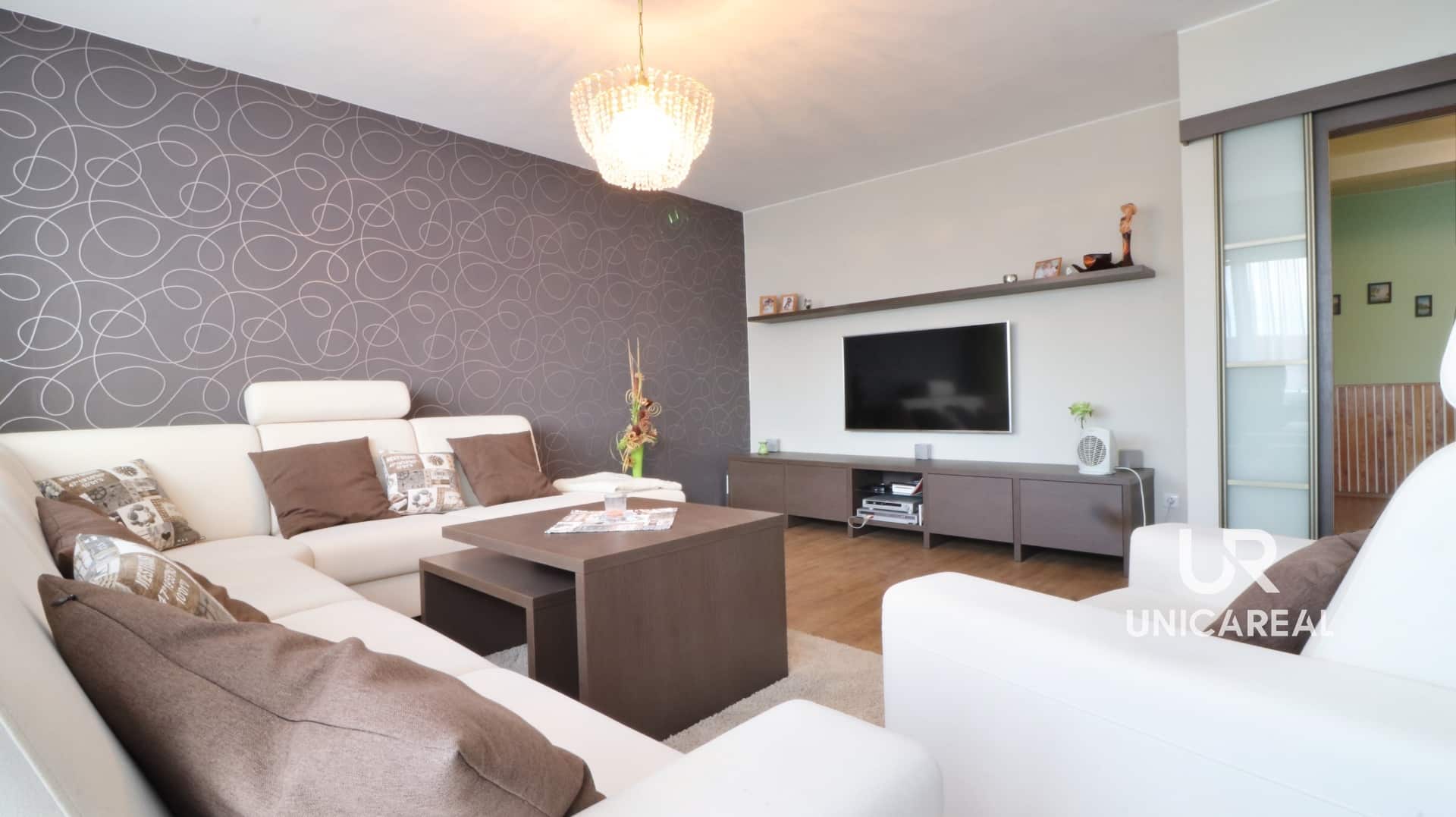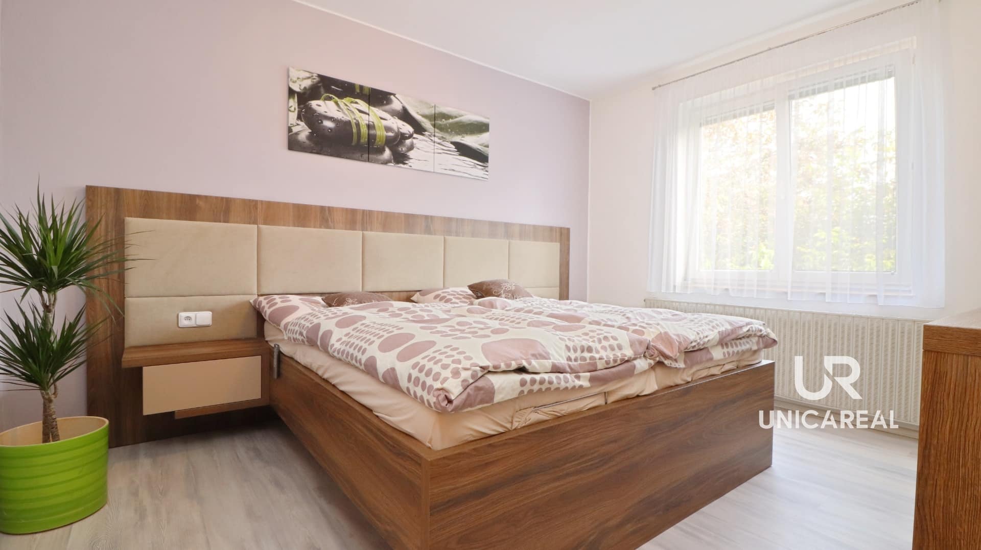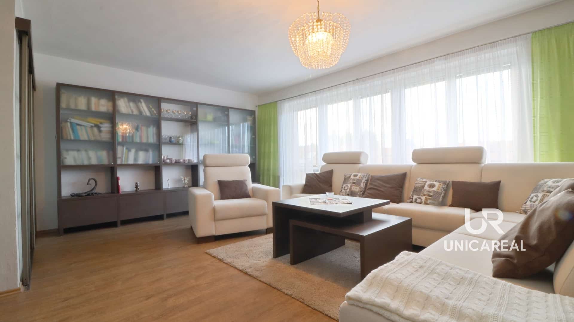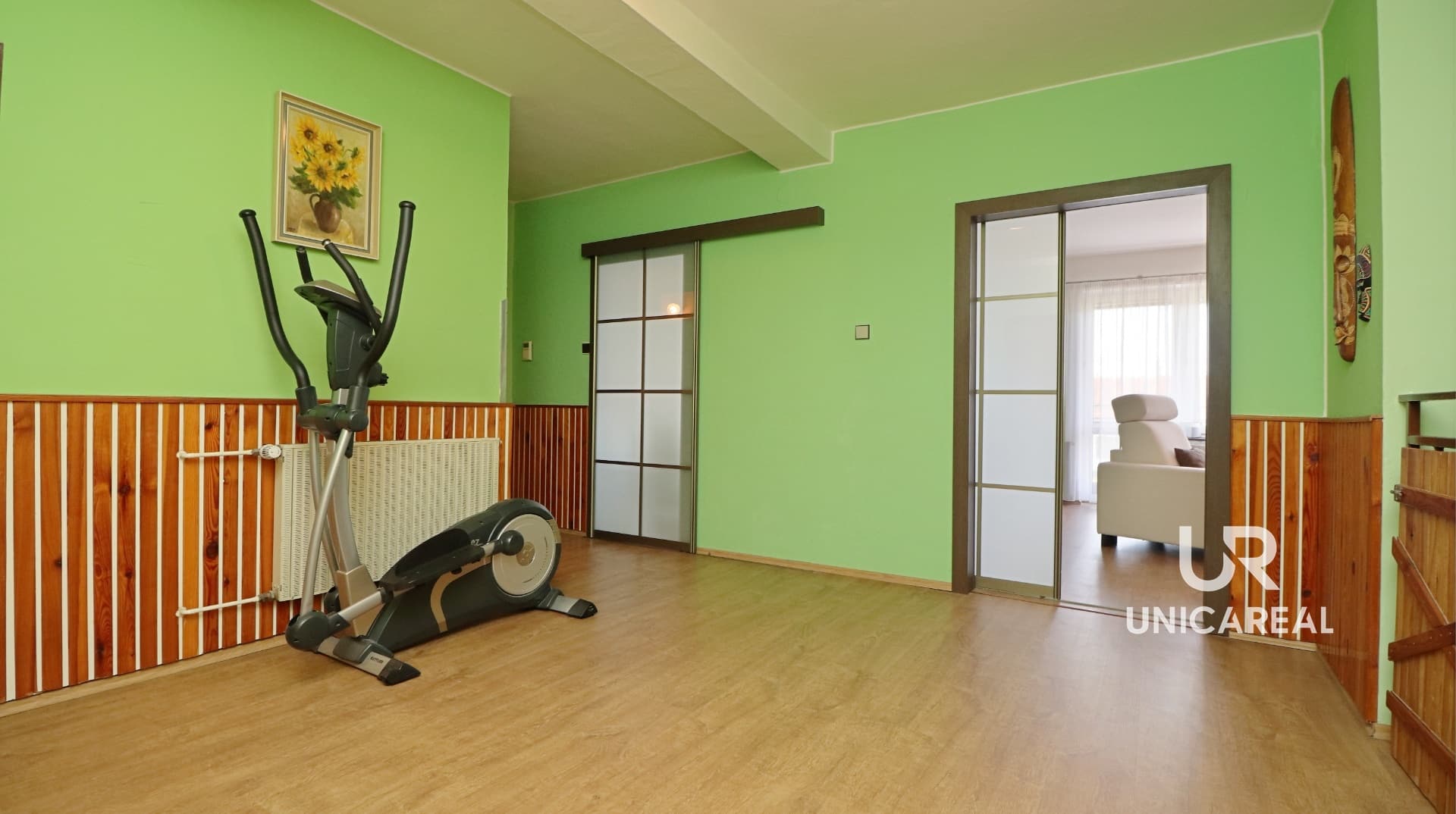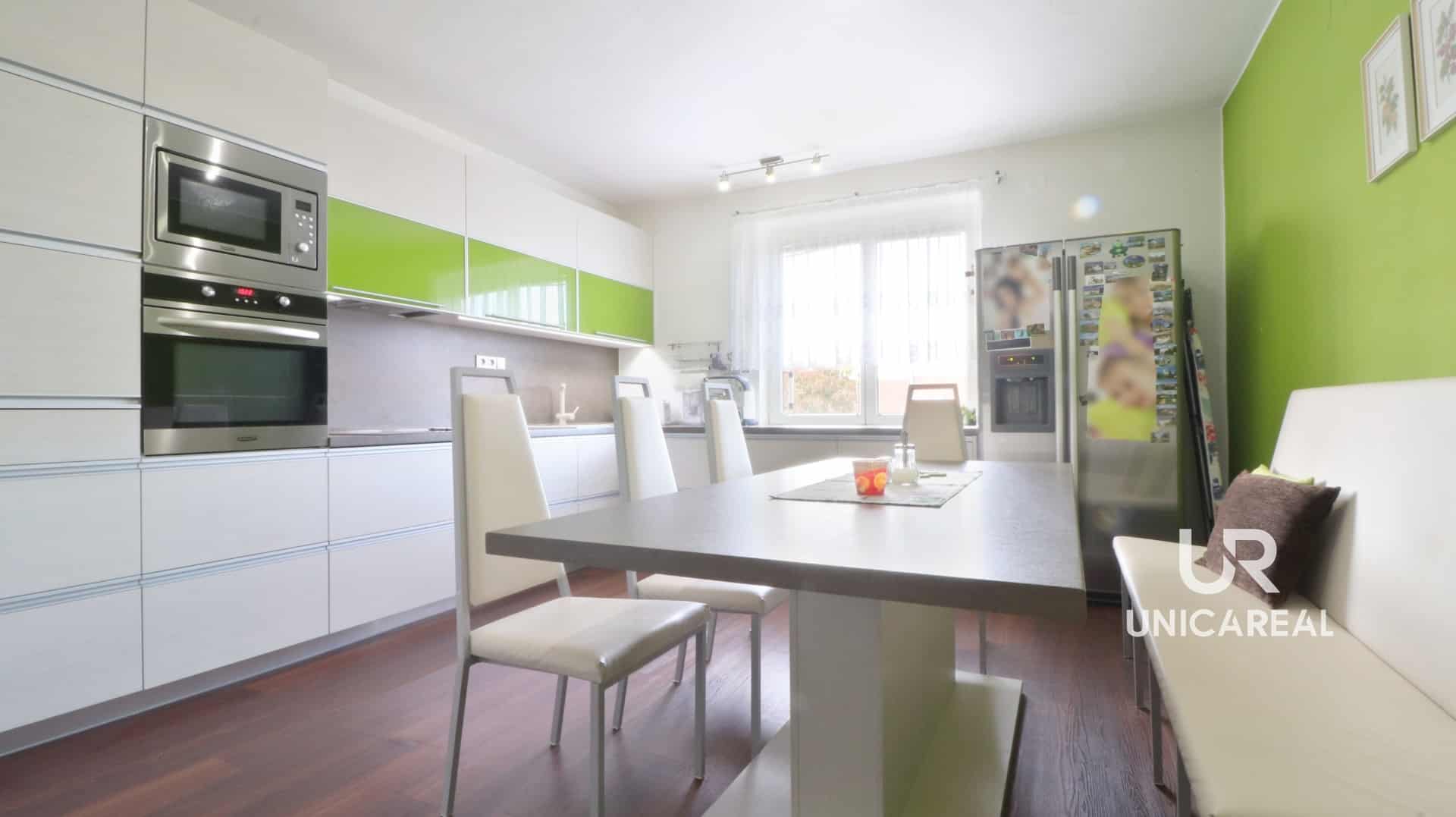Součástí prodeje je i luxusní kuchyňská linka na míru včetně vestavených spotřebičů ( trouba, indukční deska, mikrovlnná trouba a myčka), velký jídelní stůl se židlemi, prostorná šatní skříň v jednom z pokojů a praktická šatní stěna v předsíni.