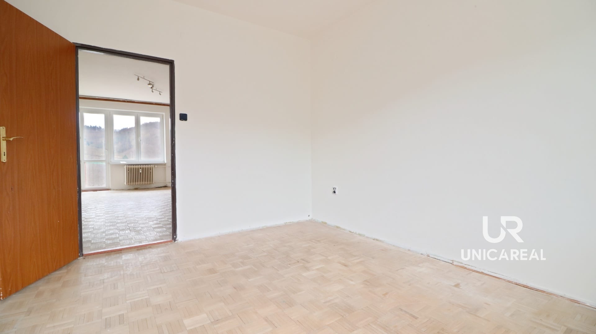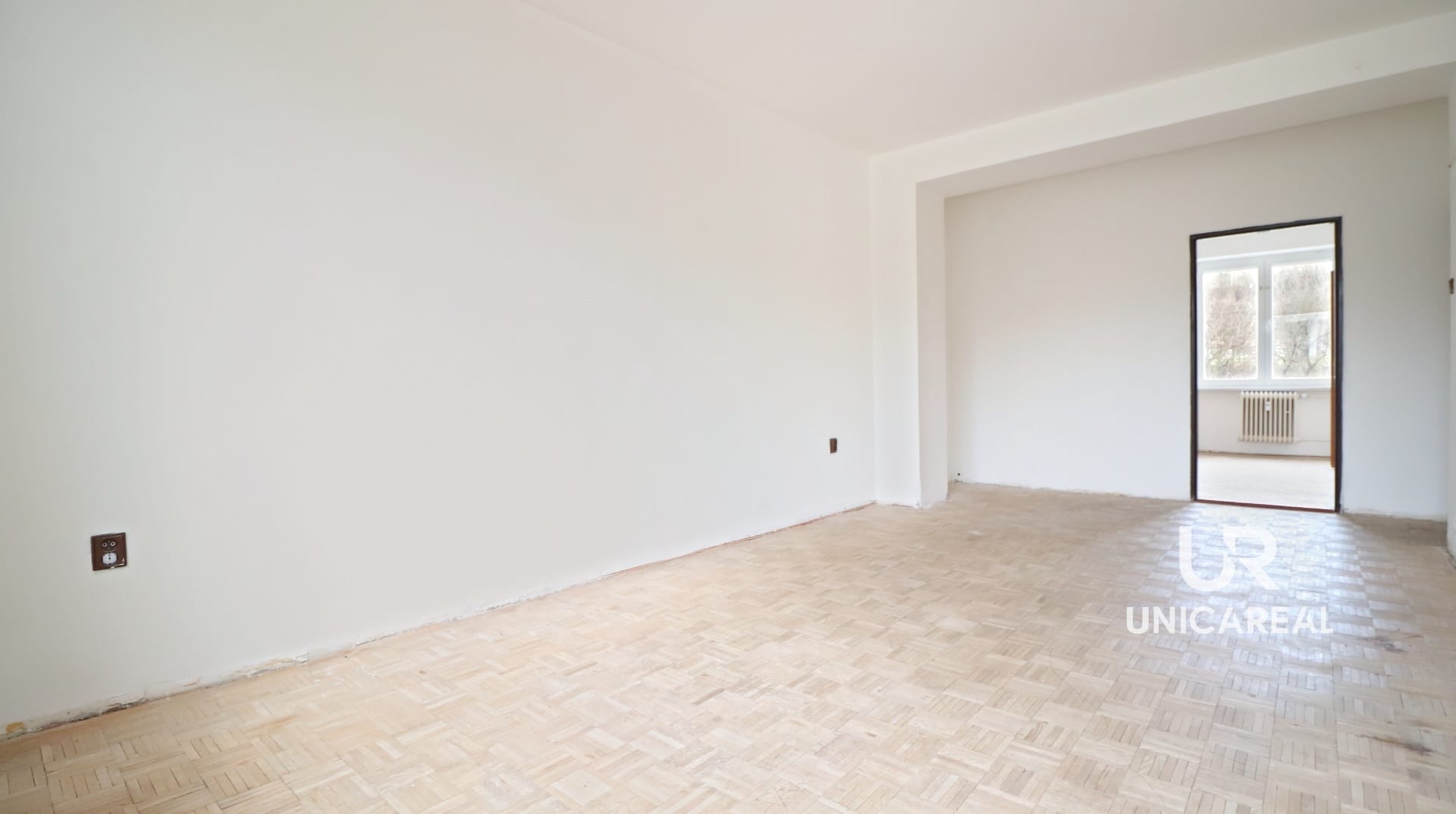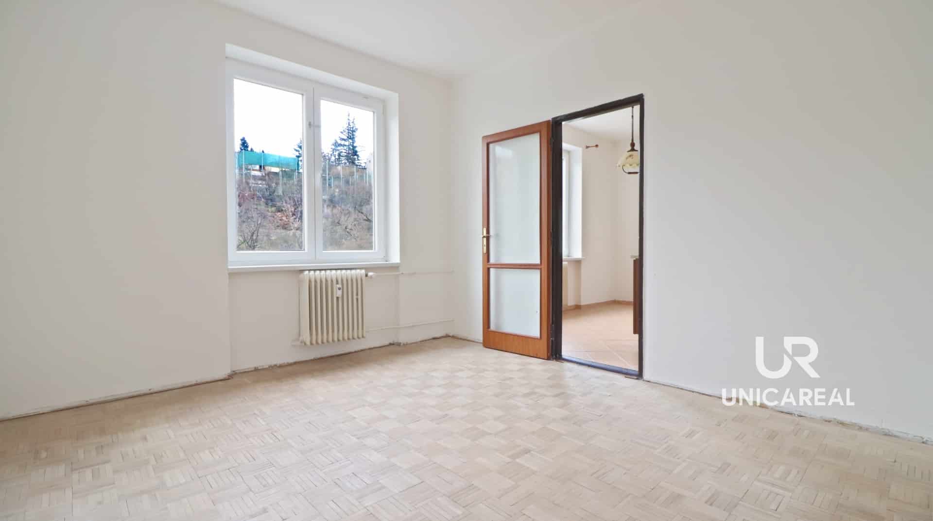 V obou pokojích jsou parkety, které bude třeba zrenovovat a položit lišty kolem zdí.