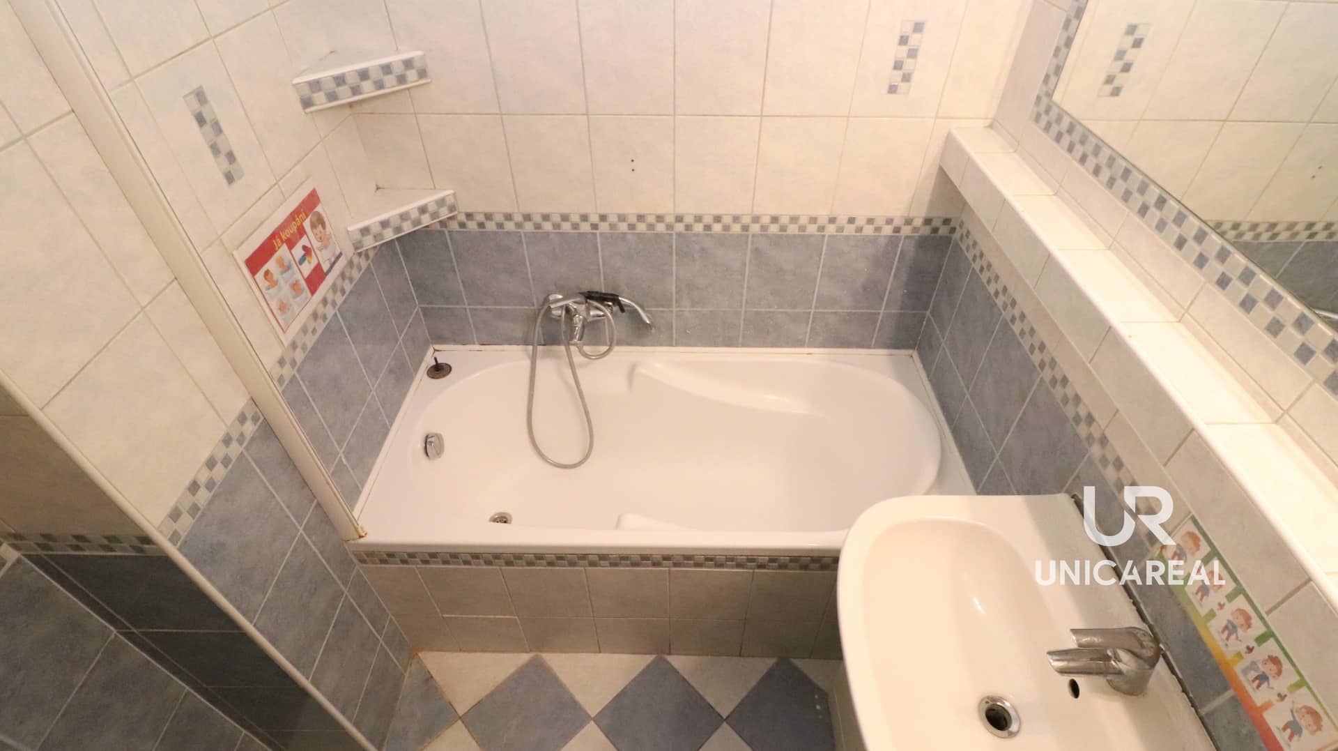 Malá, ale praktická koupelna 2m2, nabízí vanu a umyvadlo. Toaleta je samostatná. Celé jádro je zděné.