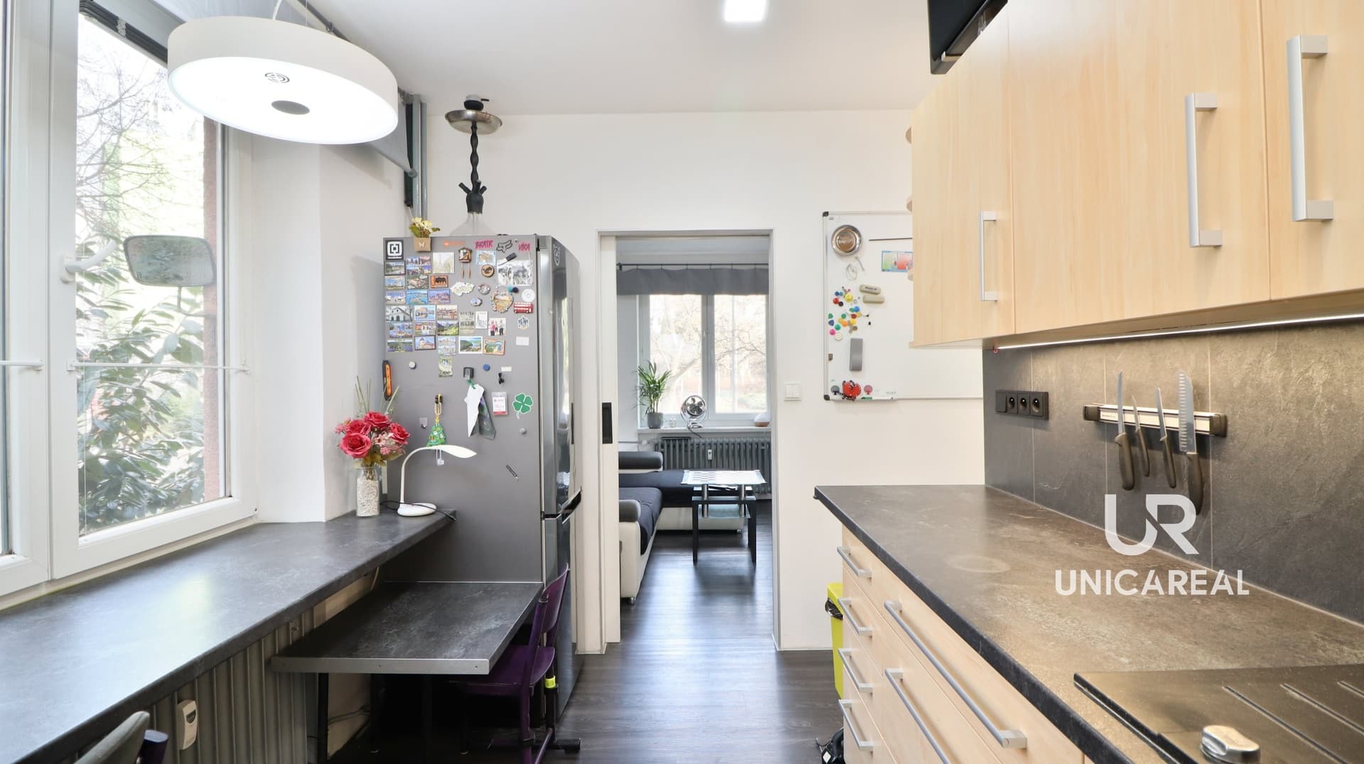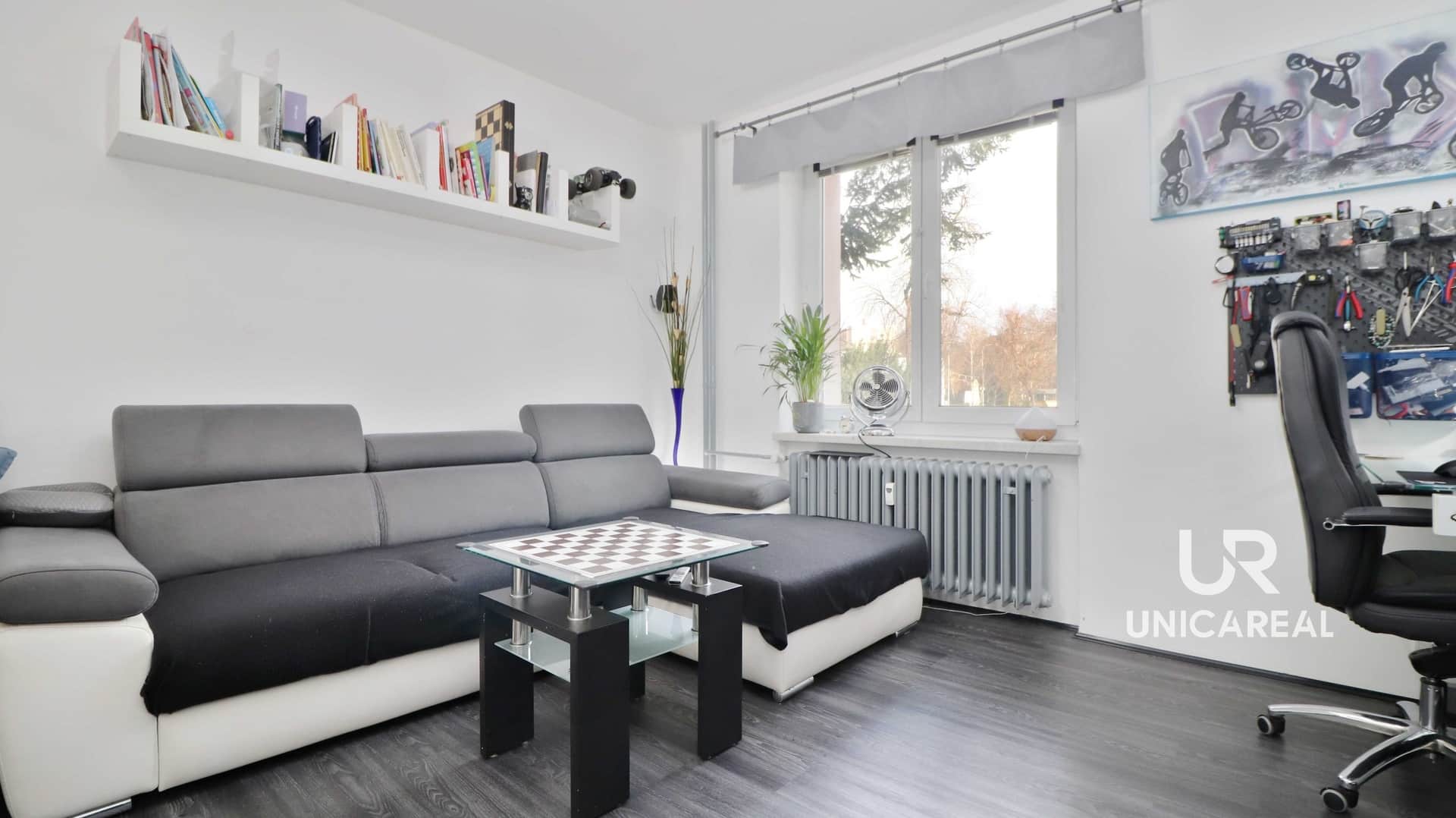 Kuchyně – severozápad. Obývací pokoj – severovýchod. Ložnice s balkonem – jihovýchod, výhled do klidného sídliště.