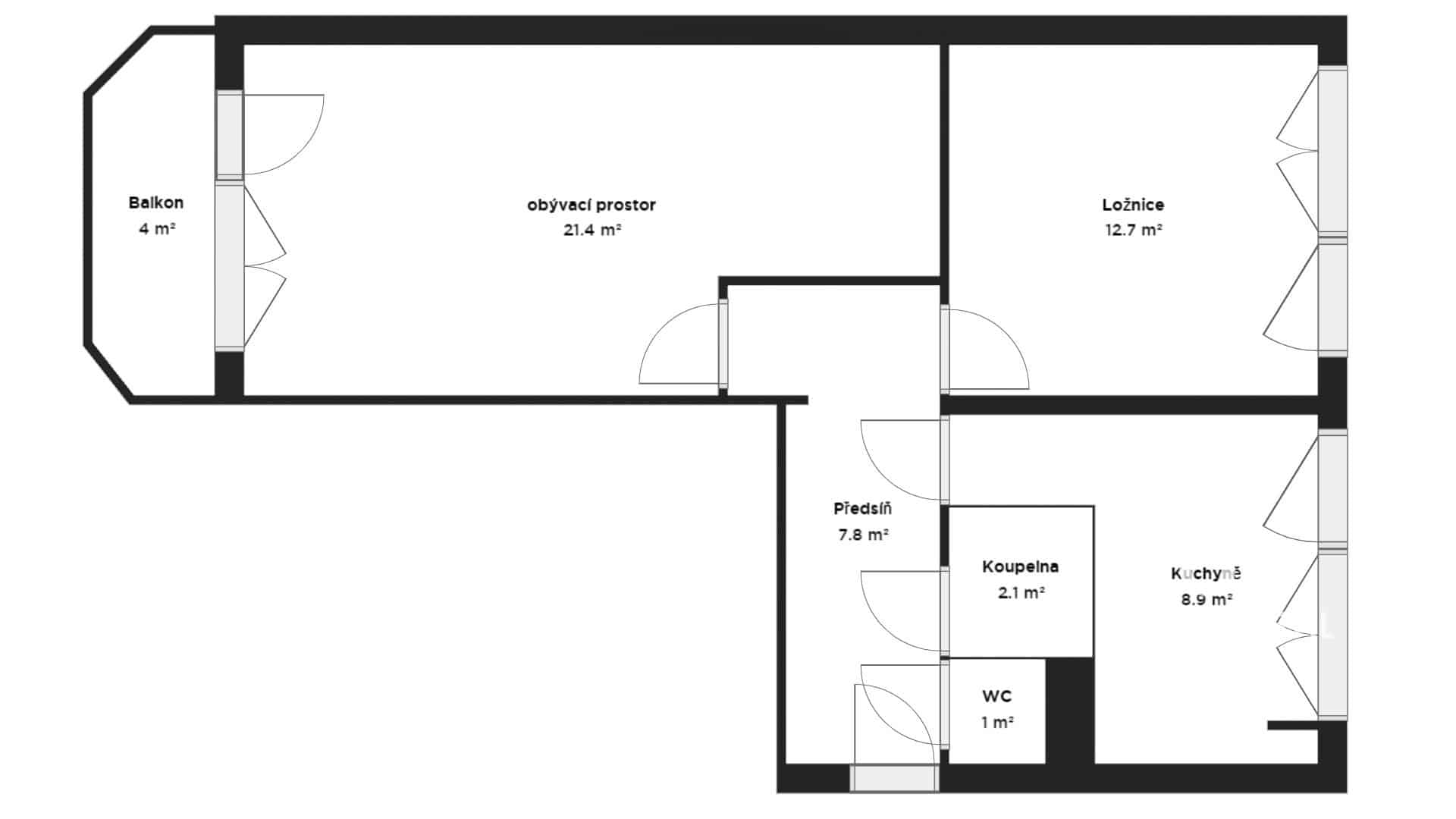 Byt je dispozičně dobře řešen. Všechny místnosti mají samostatné vstupy. V obývacím pokoji je atypická “spací” nika, kterou lze jednoduše předělat i na velkou šatnu. V předsíni je úložný prostor v nice vhodný pro zbudování vestavěné skříně. Součástí fotografií v prezentaci je i půdorys bytu.