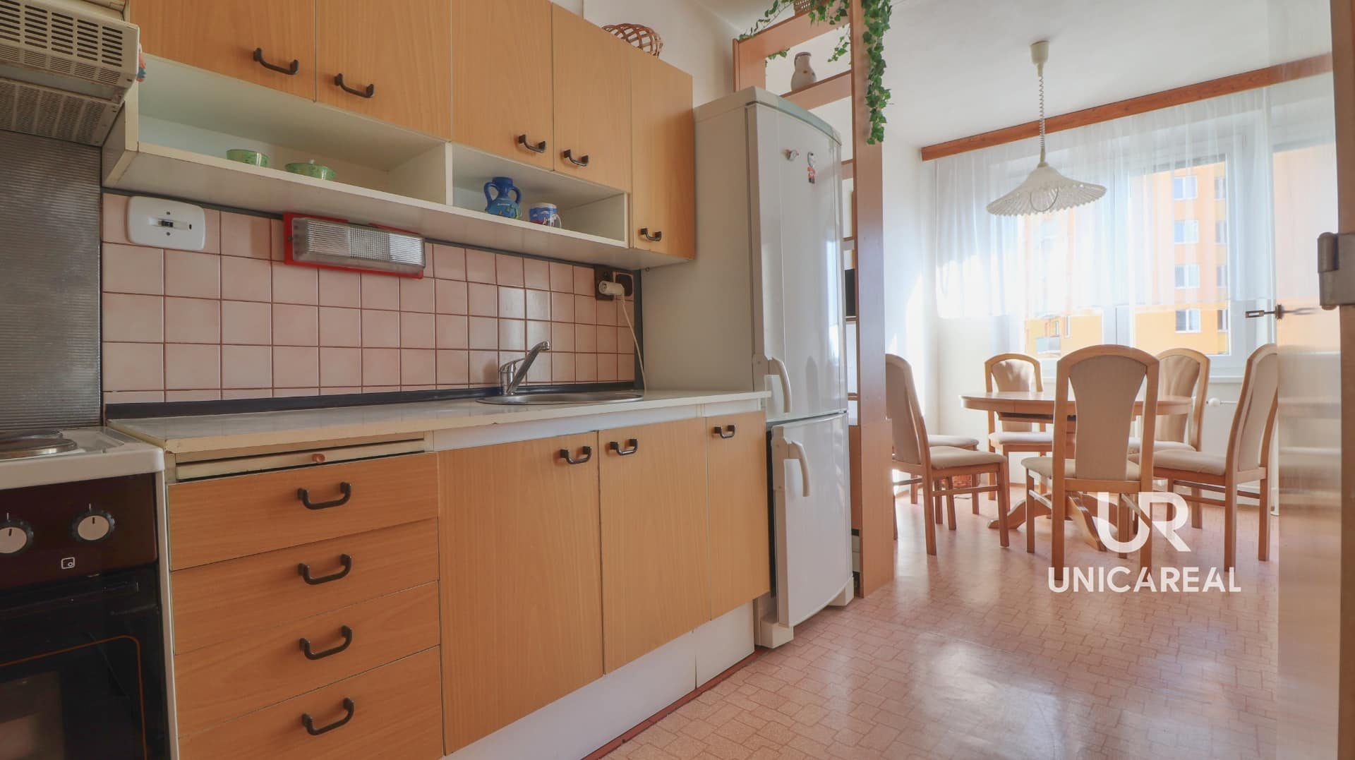 Ve výhradním zastoupení majitele si Vám dovolujeme nabídnout k prodeji dispozičně výborně řešený byt OV 4+1, nacházející se v těsné blízkosti Campus Square, Masarykovy univerzity a Fakultní nemocnice Brno, v komlpetně zrevitalizovaném, panelovém domě, v do centra výborně dostupné lokalitě Nový Lískovec, na ul. Svážná. Byt se samostatnými vstupy do všech místností je situován v 2n.p. a má celkovou užitnou plochu 78m2 + 5m2 lodžii + 2m2 sklep. Součásti kupní ceny je i nábytek a elektrospotřebiče viz. fotografie. V případě zájmu bude byt předán nezařízen, nebo částečně zařízen. Vše je věcí dohody. Samostatné pokoje mají rozměry 22, 12, 8 a 8m2. V bytě se nachází praktická a prostorná předsíň s nikami, ideální pro vestavěné skříně, které tak ušetří místo v pokojích. Již zděná koupelna a WC jsou umístěné zvlášť. Byt je v udržovaném, standardním stavu. Velkou výhodou bytu jsou velmi nízké náklady na bydlení ve výši max. do 3.500,-Kč. V této částce jsou zahrnuty fondy oprav, teplo, ohřev vody, studená voda, i veškeré služby domu. V domě proběhla kompletní revitalizace v roce 2014, na kterou bylo našetřeno a dům tedy není zadlužen. V suterénu domu je pronajímán komerční prostor a z nájmů za tento prostor je příspíváno do fondu oprav. V přízemí se nachází kolárna a kočárkárna. Vzhledem ke své dispozici neprůchozích pokojů, částečnému zařízení bytu a poloze v těsné blízkosti Masarykovy univerzity, je byt výbornou investicí do budoucna, především na pronájmy. V těsné blízkosti se nachází spoustu možností k relaxu a sportovnímu vyžití jako např. několikahektarový park na Plachtách, plný zeleně, s přírodním jezírkem, sportovním a dětským areálem, vnitřním a venkovním, navazujícím lesoparkem, s chráněnými konikleci a dalším vyžitím pro děti i dospělé. V pěší dostupnosti se nachází veškerá občanská vybavenost a dostupnost do centra je výborná. To je spoustu důvodů proč je byt ideální i pro rodinné bydlení. Vzhledem ke kompletní revitalizaci domu má dům třídu energetické náročnosti C, tedy úsporná. Na bytě neváznou žádné právní závazky, jako zástavní právo, nebo věcné břemena a je ihned volný. Budeme se těšit na osobní prohlídku, kterou určitě doporučujeme.