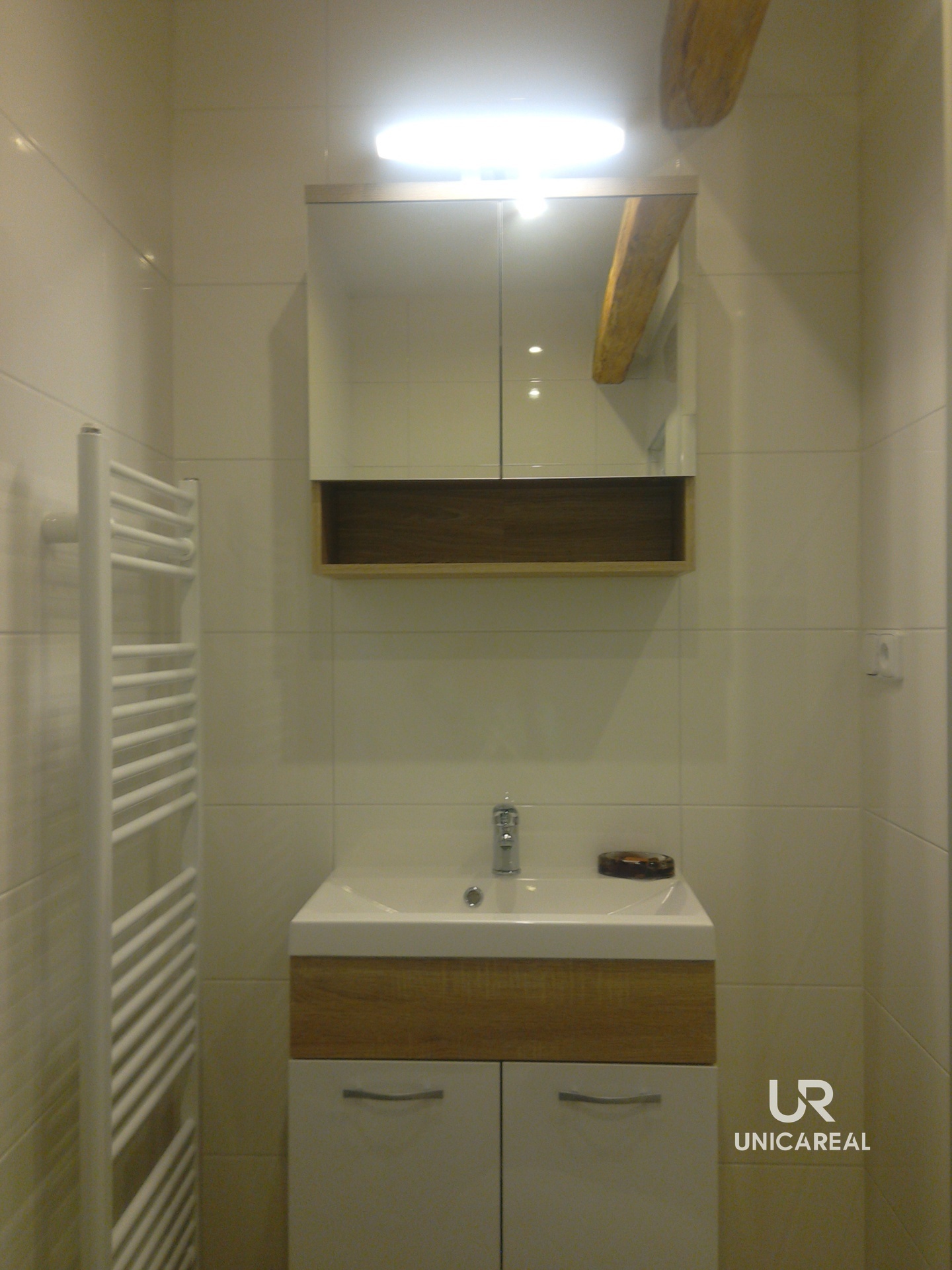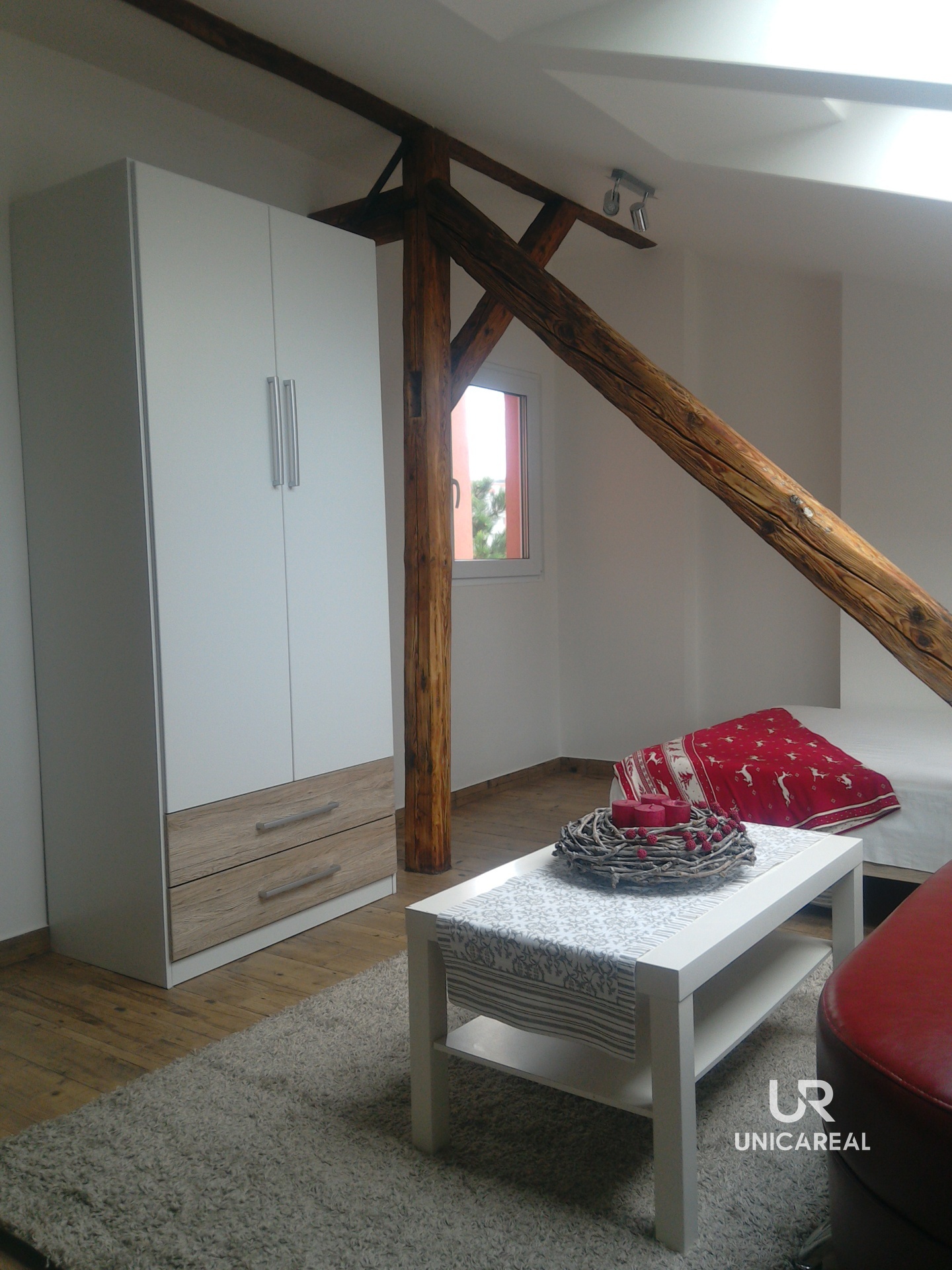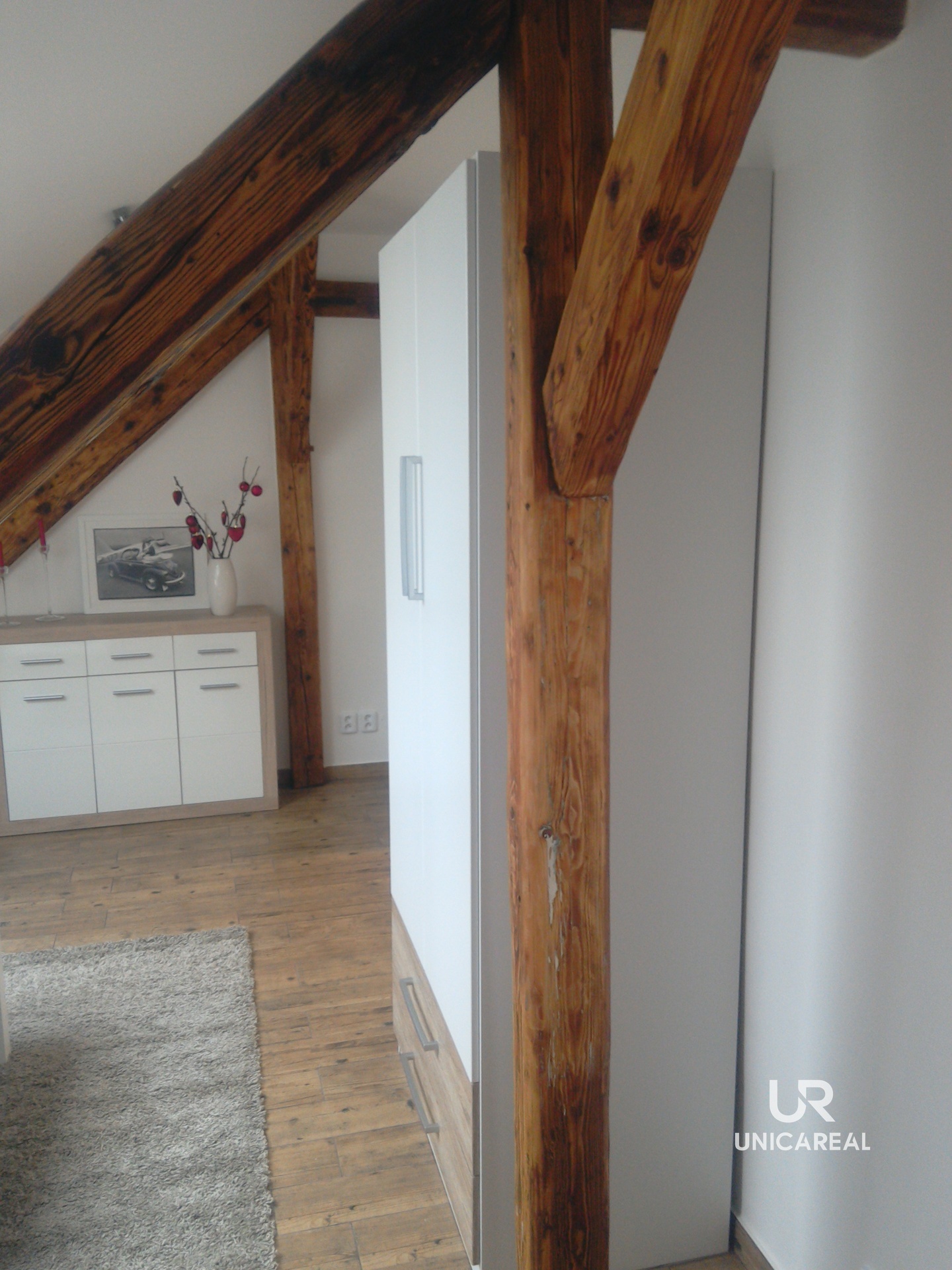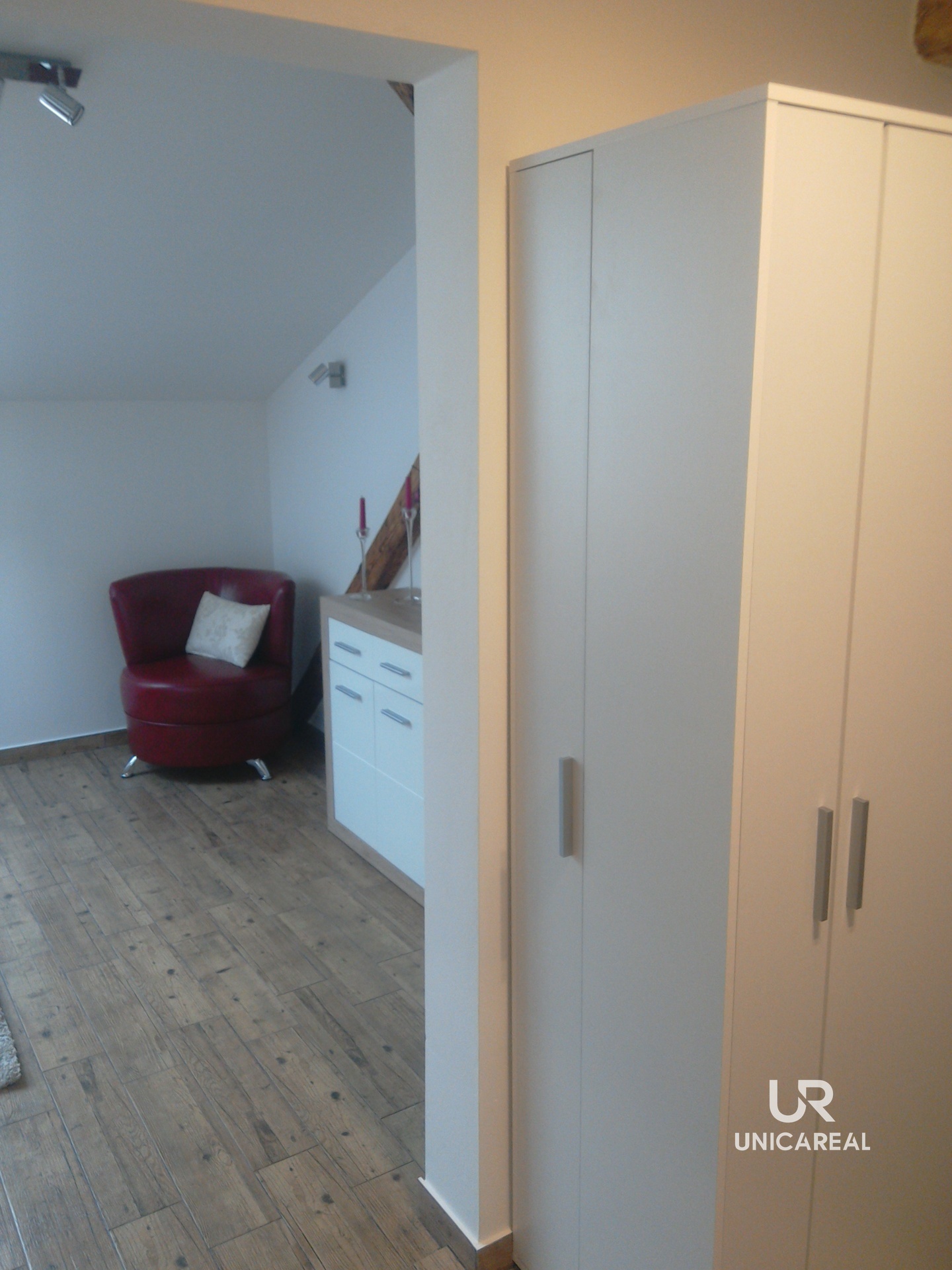 Byt se nachází ve 4. NP (bez výtahu) a disponuje zádveřím, kuchyní s kuchyňskou linkou vyrobenou na zakázku, koupelnou se sprchovým koutem a toaletou, obytnou místností.