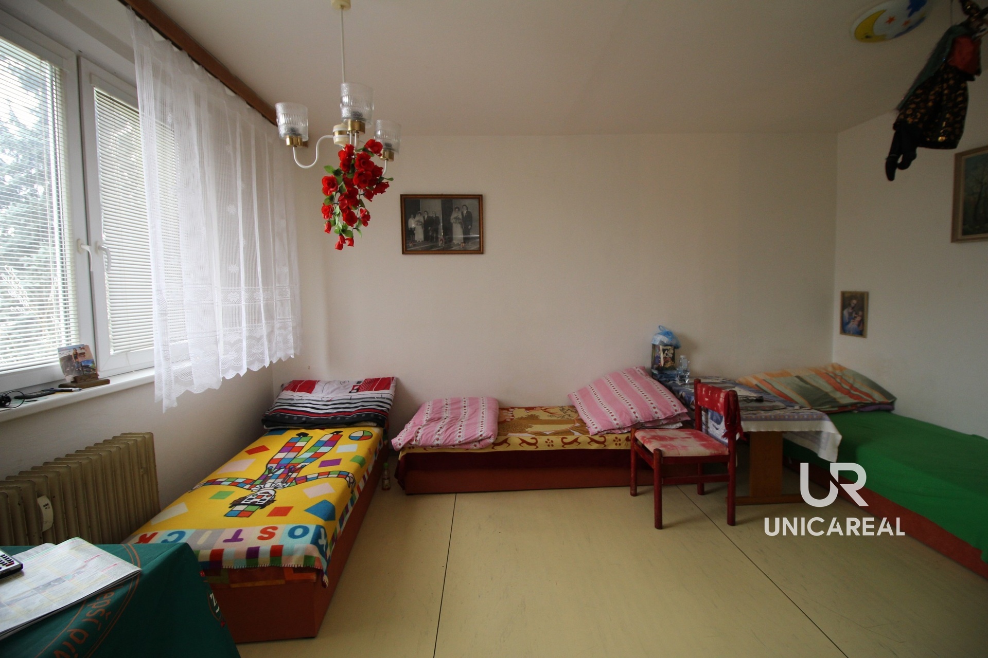 Byt je světlý, udržovaný a ve standardu. Kromě dvou pokojů se samostatnými vchody, komorou a šatnou má také balkon a lodžii. V přízemí domu se dále nachází sklep, kočárkárna a sušárna. Z oken se nabízí příjemný výhled do přírody. V současné době je byt pronajat.