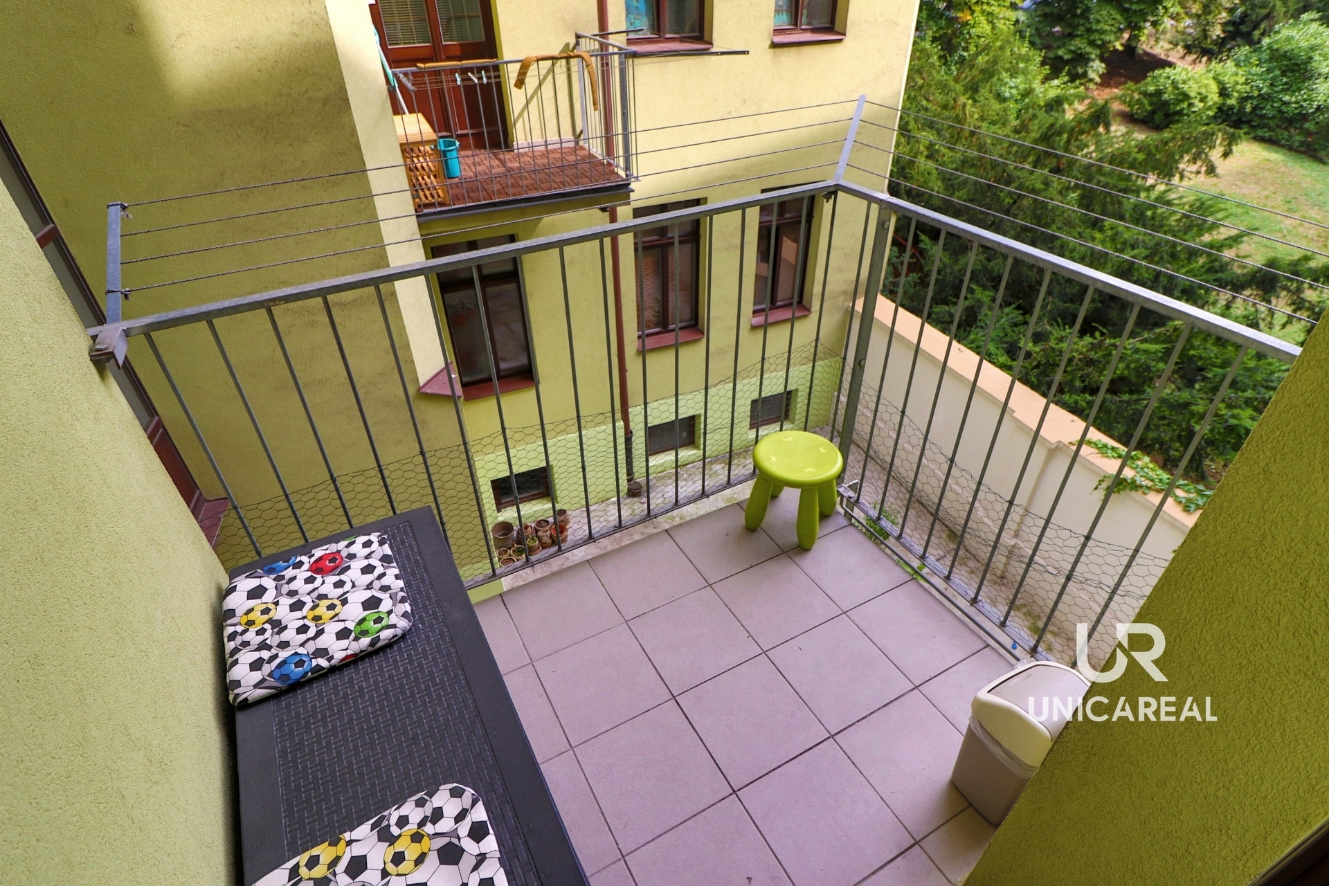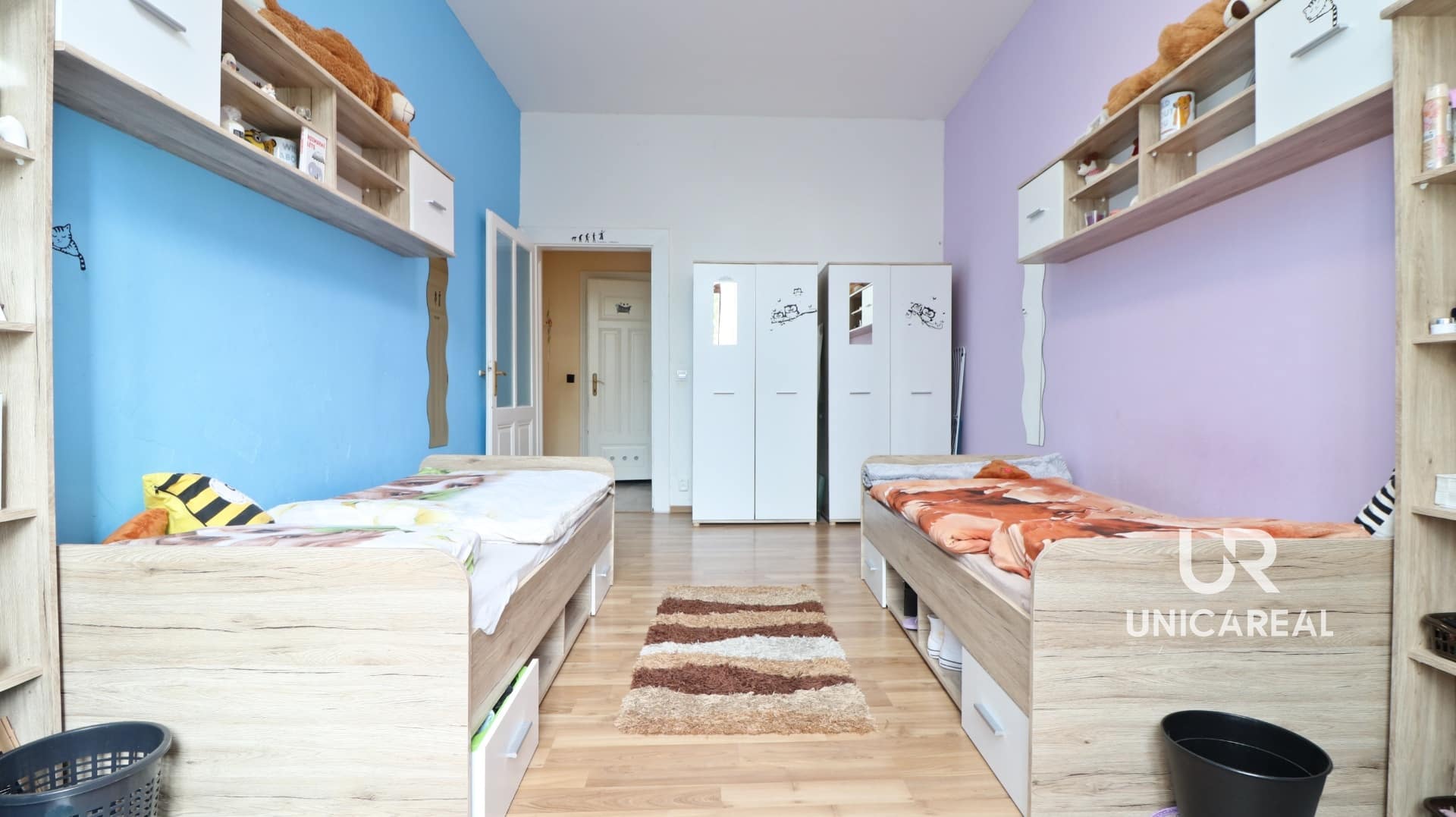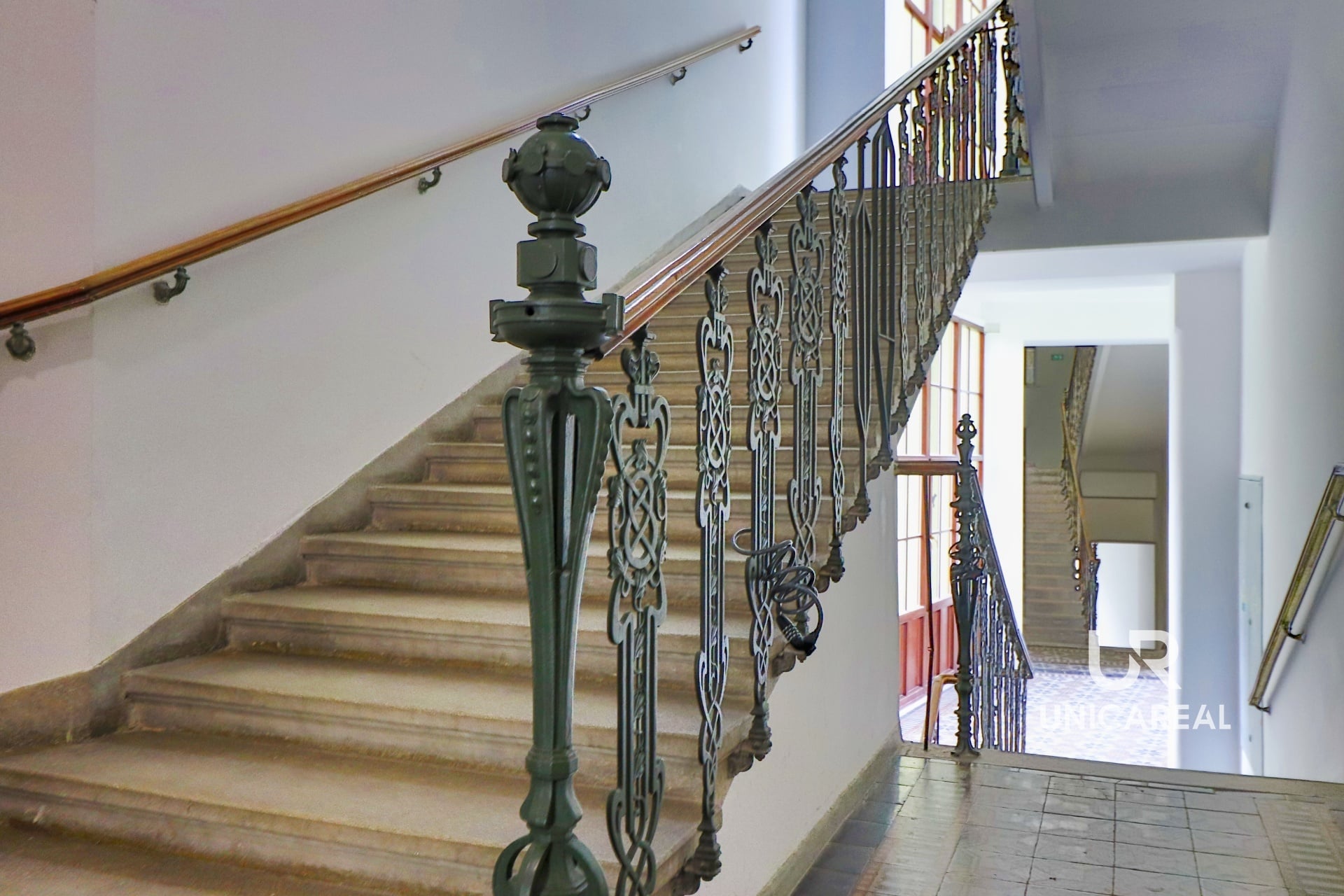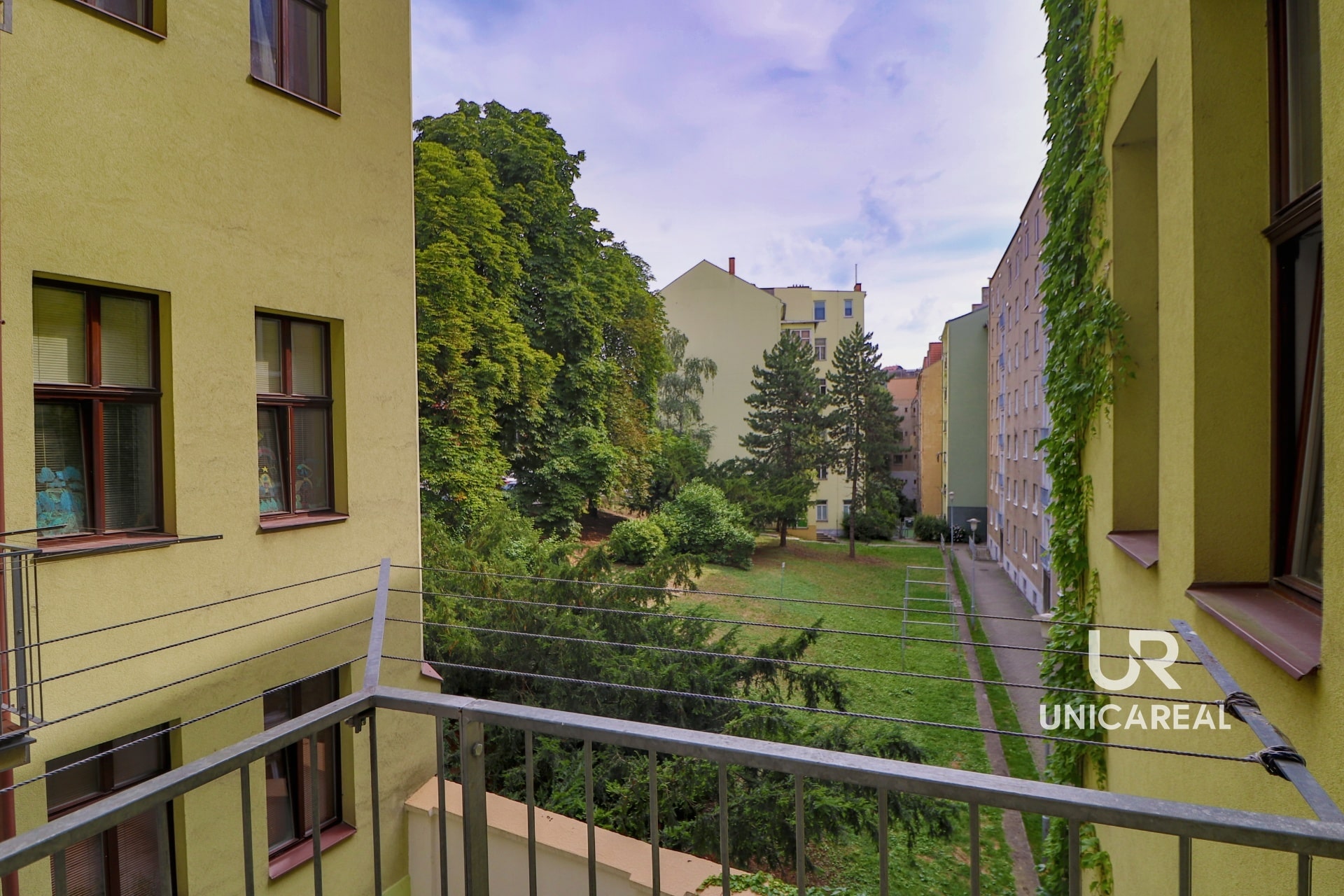 – centrální vstupní hala o výměře 13,2m2, komora 4,5 m2 , tři slunné pokoje o výměrách 28,1m2 se vstupem na balkon orientovaný do ulice, 24,7m2, 19,5 m2 s orientací do ulice a vnitrobloku.