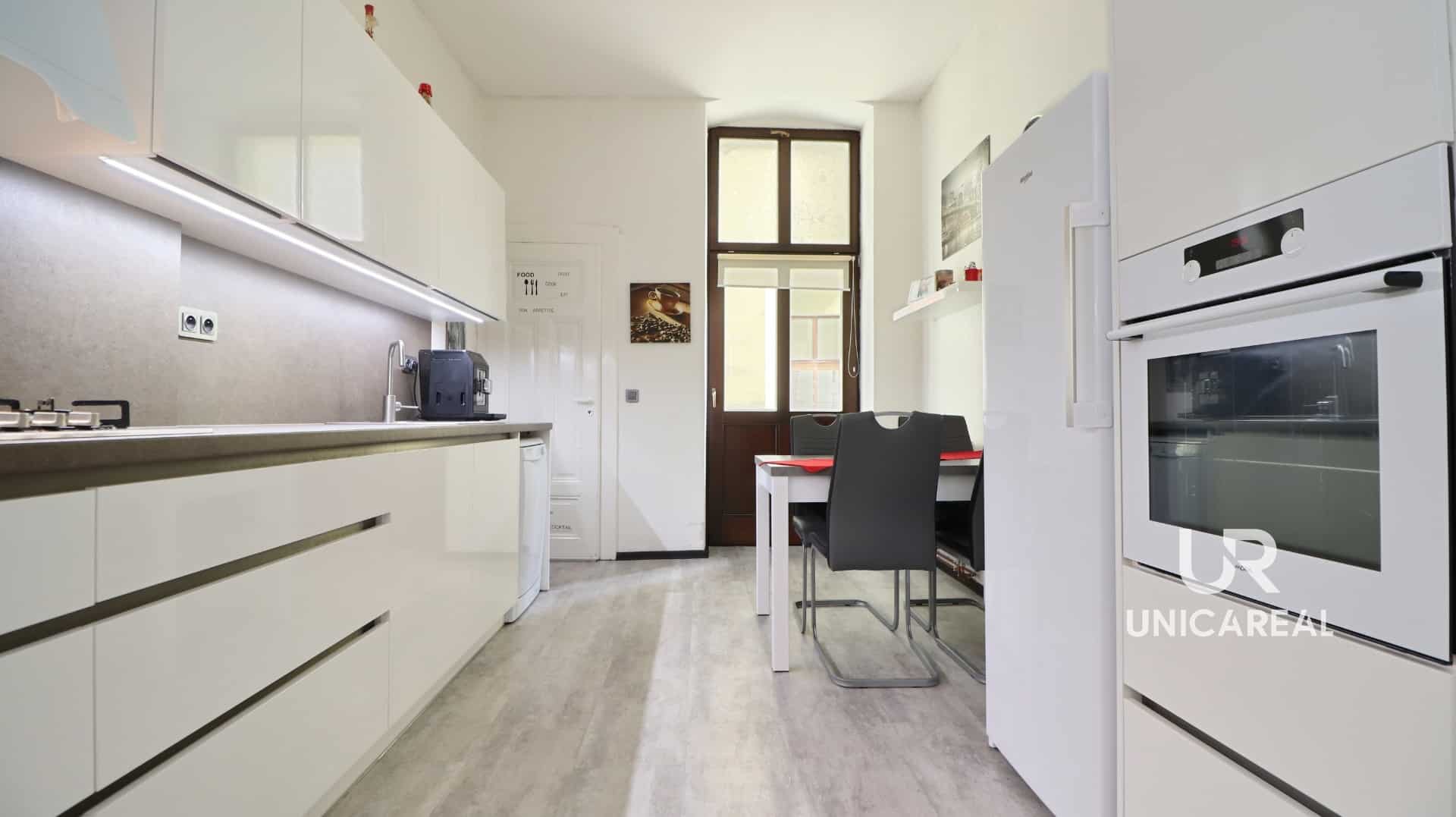 Kuchyně vč. vestavných spotřebičů z roku 2019 byla dělána na zakázku společně s položením nové vinylové podlahy, která navazuje ve stejném dekoru do vstupní haly. Součástí kuchyně 13,5 m2 je i spíž 1,6 m2 a balkon 2,6 m2 orientován do vnitrobloku.