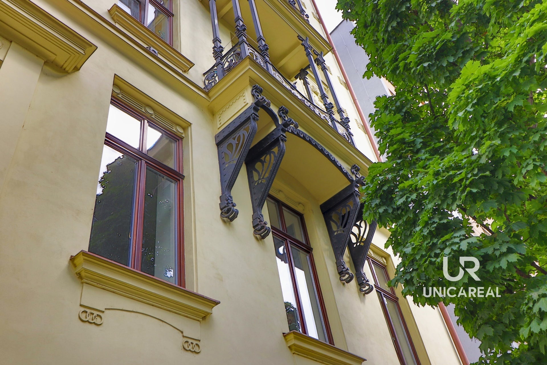 Ve výhradním zastoupení majitele si vám dovoluji nabídnout prodej jedinečného bytu na ul. Výstavní. Byt se nachází v krásném secesním dvojdomě postaveného v roce 1901 se symetricky řešenými průčelími, členěnými kovovými balkony a secesním dekorem. Dvojdům si postavil dle vlastního návrhu František Pawlu.