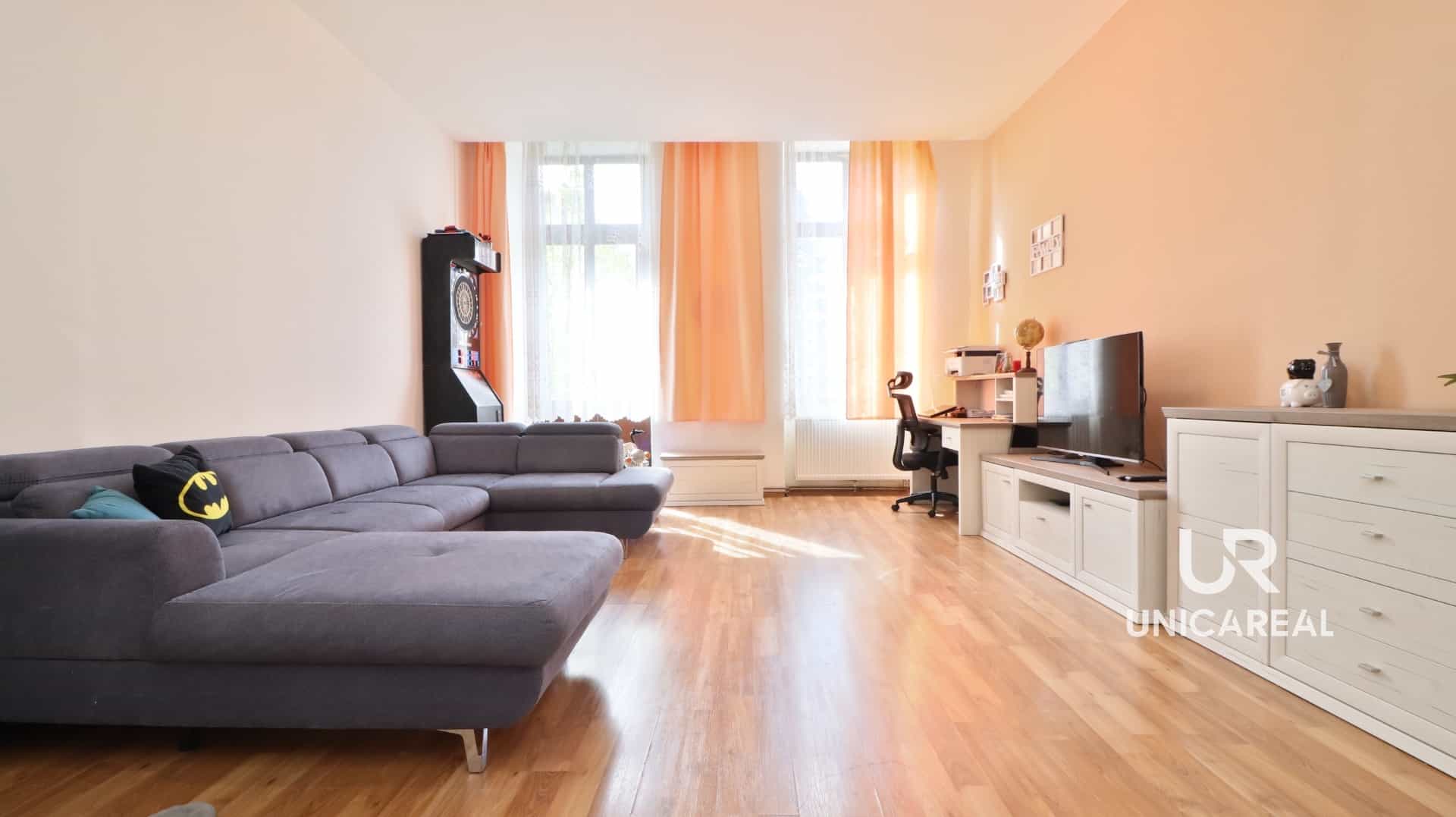 Tento velkorysý byt s užitnou plochou 130m2 vč. dvou balkónů se nachází ve 2.nadzemním podlaží cihlového domu s orientací J/Z.