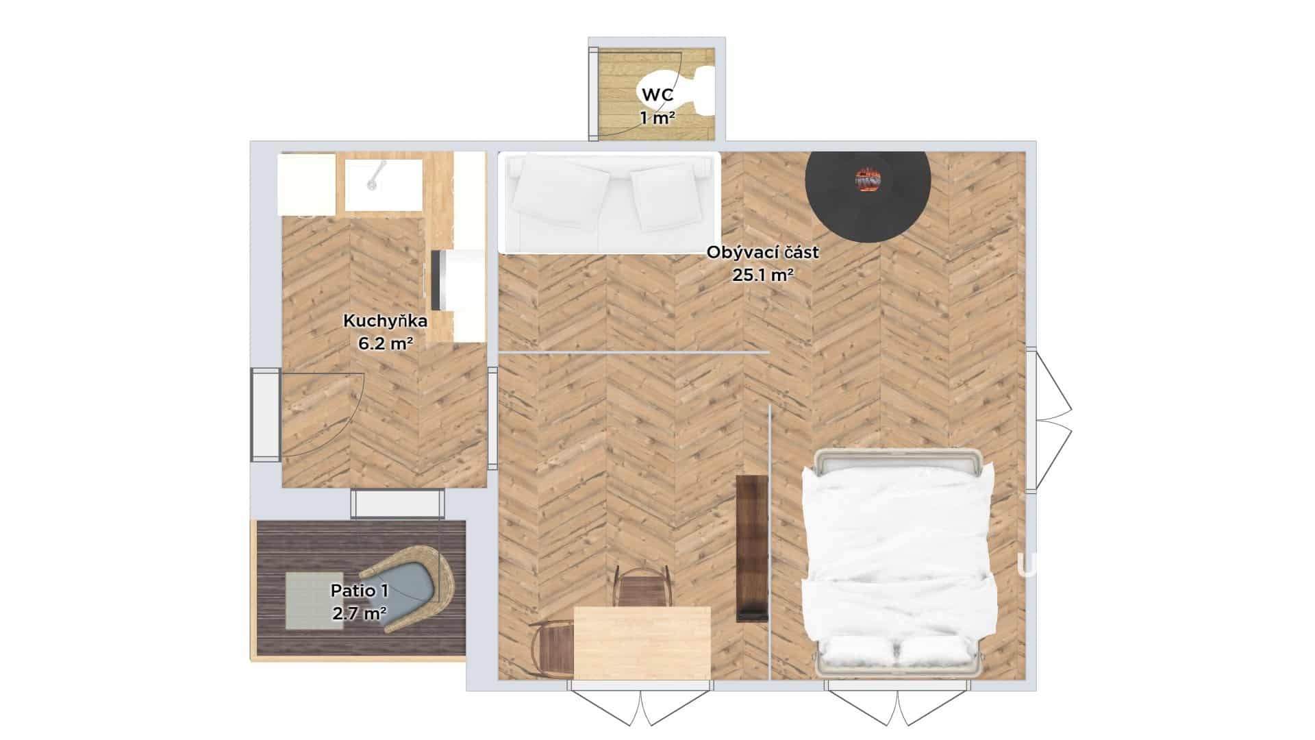 Vstupte na terasu s výhledem do zeleně a nechte se okouzlit okolní přírodou. Uvnitř chaty na vás čeká pečlivě udržovaný prostor, kde se snoubí pohodlí s praktičností.