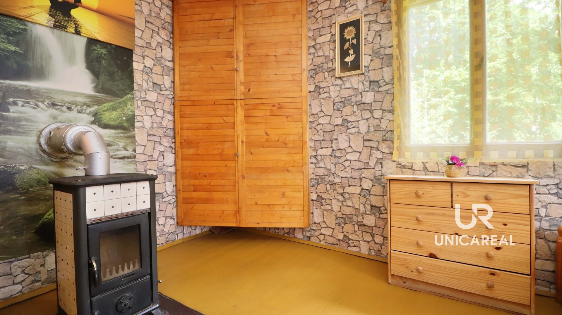 V chatě je rozvedena elektřina a nabízí vybavení kuchyňskou linkou s plynovým vařičem, v další místnosti naleznete harmonicky rozdělenou společenskou a relaxační část s útulnou ložnicí a zabudovanými skříněmi.