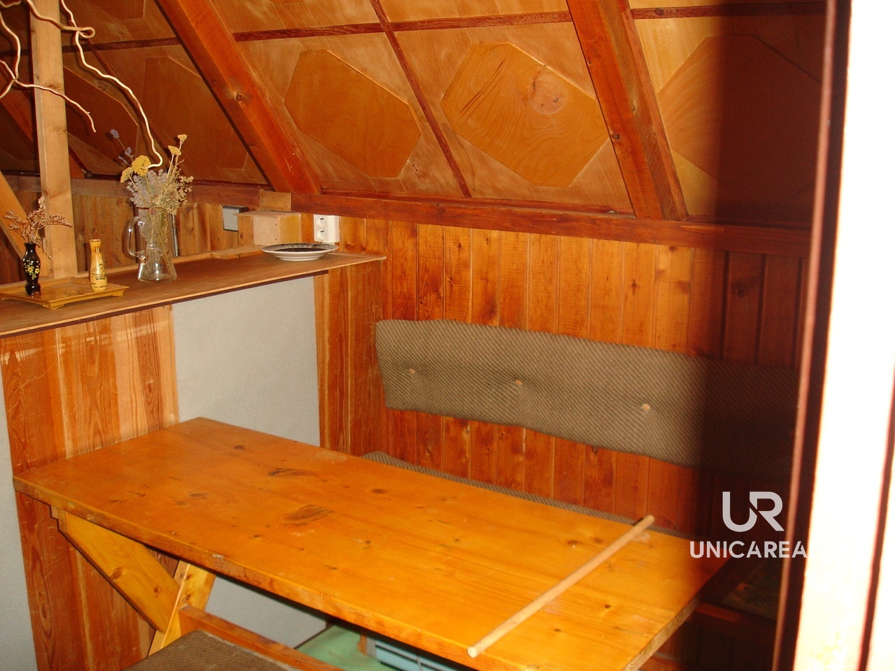 První podlaží je zděné, na něm dřevěné podlaží. V přízemí je místnost s krbem, koupelna se sprchovým koutem a WC. V prvním patře je kuchyňský kout, jídelna a obývací prostor. Z něj je výstup na terasu, ze které je krásný výhled do krajiny. V podkroví se ještě nachází dvě propojené ložnice.
