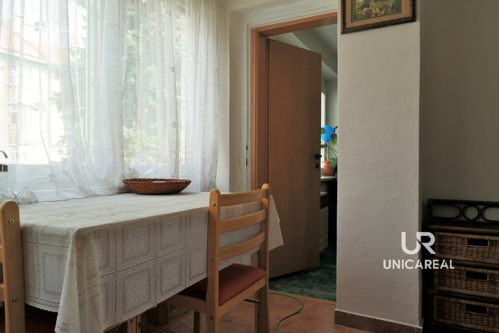 V domě jsou pouze 4 byty a každý z vlastníků má spoluvlastnický podíl na společných částech domu i na pozemku. V koupelně i na WC je okno. K bytu náleží prostorný sklep 18,5 m2.