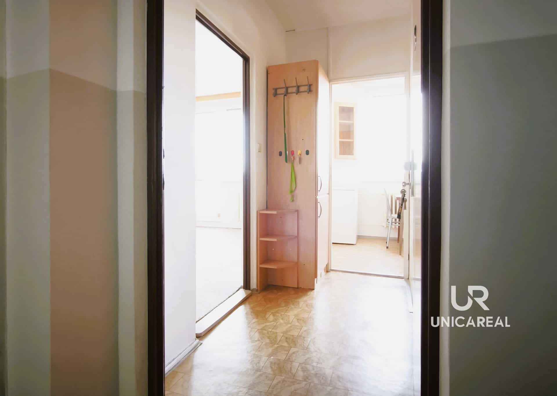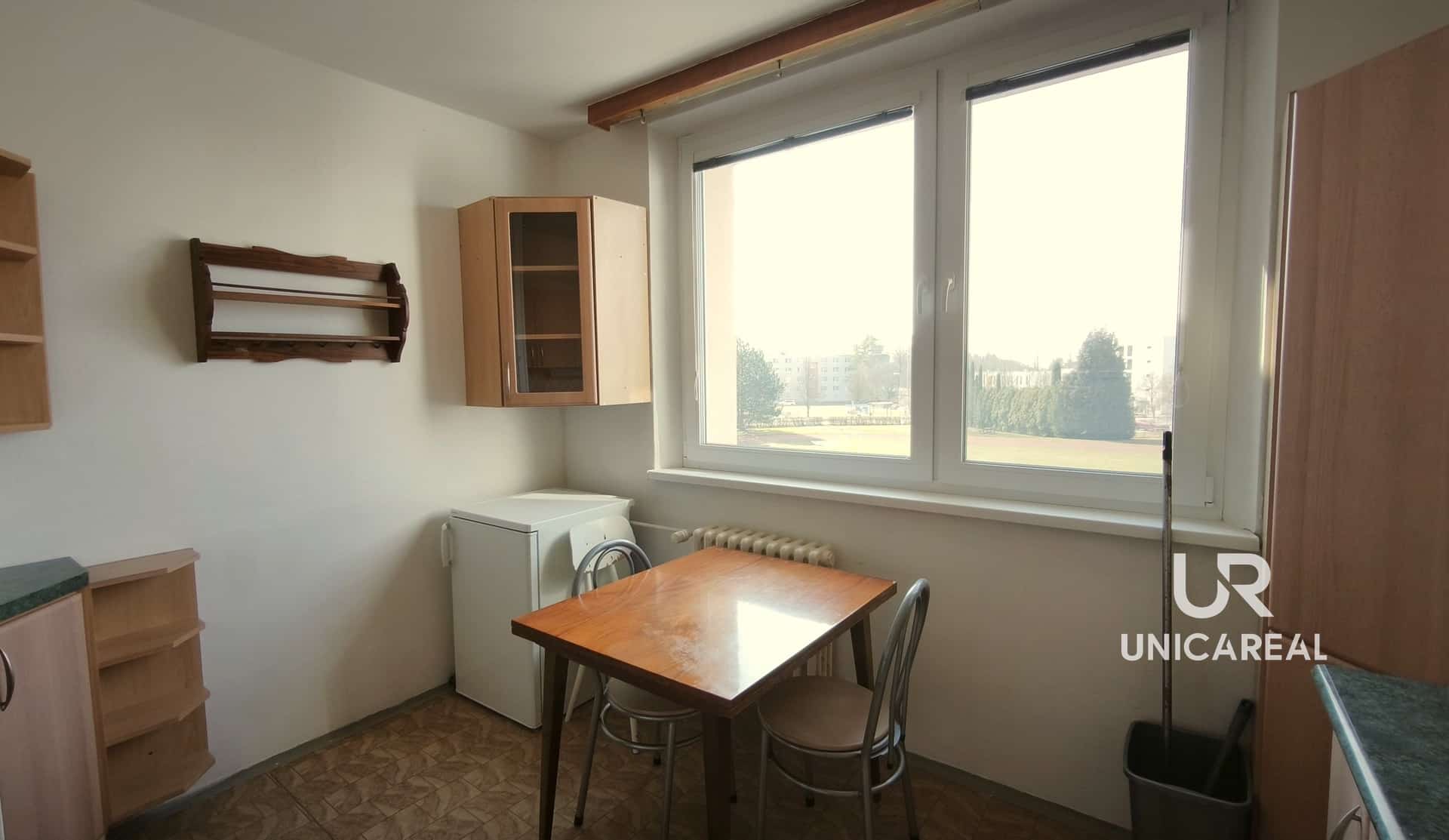 Dispozice: z chodby (2,8m2) je vchod do koupelny (2,56m2) se sprchovým koutem a toaletou. Dále do kuchyně (8,45m2) s pěknou rohovou kuchyňskou linkou. Nalevo z chodby je samostatný pokoj (16,05m2) se vstupem na prostornou lodžii (2,27m2).