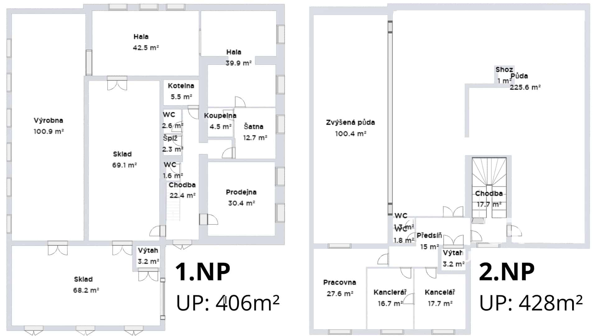 Dvoupodlažní objekt s bohatými možnostmi využití, ideální pro obchodní, skladovací, nebo výrobní aktivity.