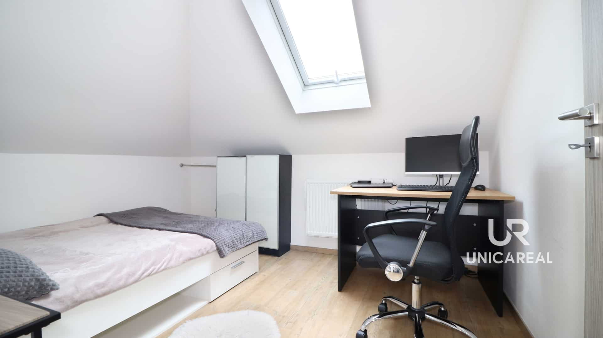 Ve 2.n.p. se nachází 3 ložnice se samostatnými vstupy a koupelna s vanou a WC. Největší ložnice je orientovaná do zahrady. Ve štítu střechy je umístěn úložný prostor ke kterému je přístup přes výsuvné schůdky. Pro lepší představu je součástí prezentace fotografie v inzerci.