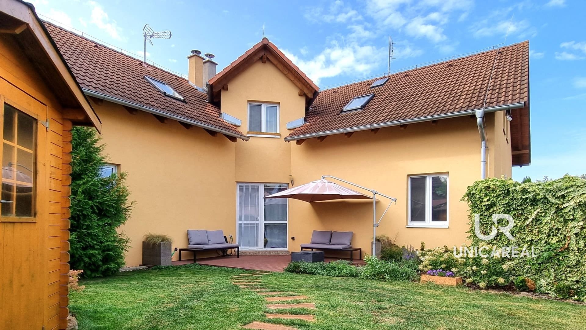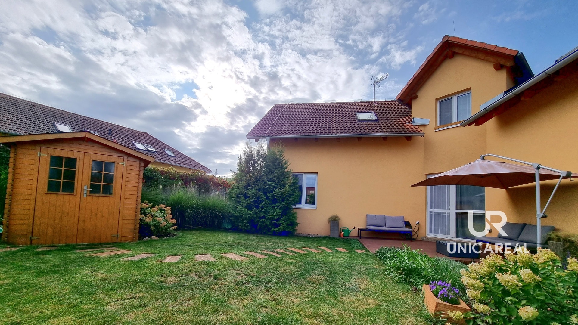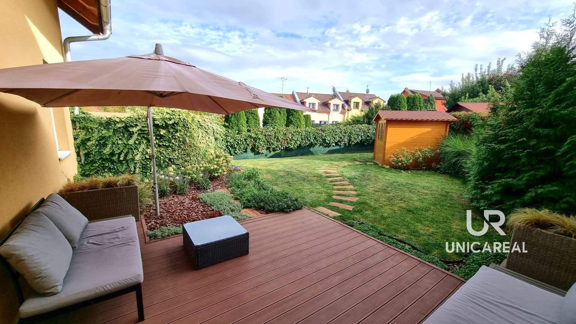 K domu náleží oplocená zahrada o velikosti 382m2, která byla majiteli jednotek rozdělena plotem na 3 části. Prostřední část upravené zahrady je součástí této jednotky. Na upravené zahradě je i terasa a zahradní domek.