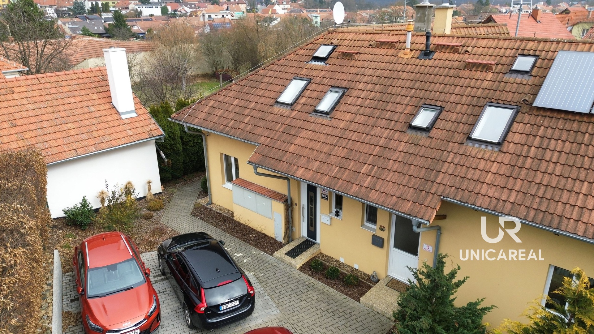 Dům kolaudovaný v roce 2014 stojí na soukromé ulici, kde byly společnými vlastníky ulice ke každé jednotce přiděleny parkovací místa. K předmětnému bytu náleží dvě parkovací místa, která se nachází přímo u vchodu do jednotky.