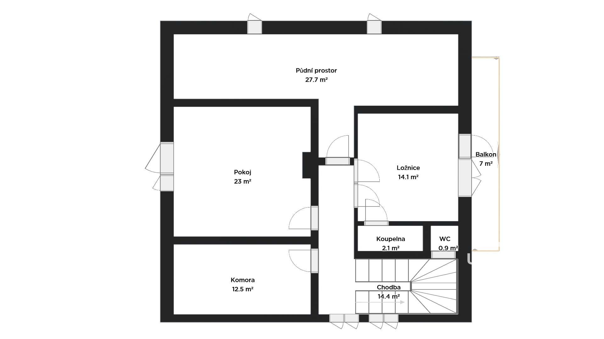 balkon ve 2. NP: 7m2