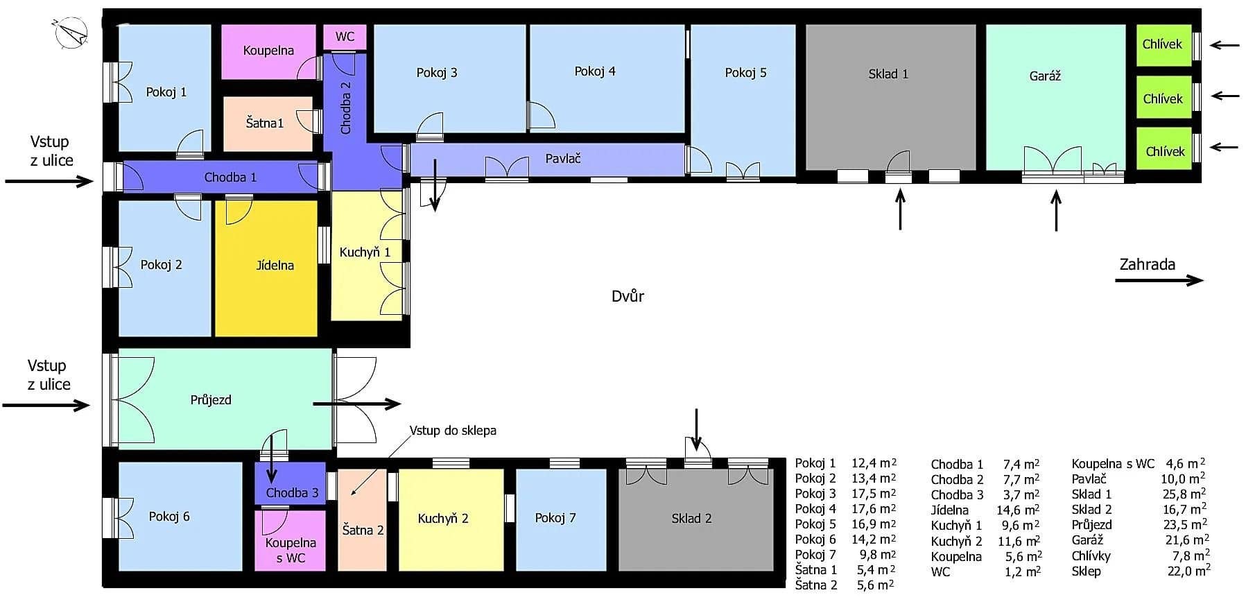 Jedná se o přízemní, řadový dům se zahradou, průjezdem do zahradního traktu. RD se dvěma oddělenými bytovými jednotkami o dispozici 6+1, 2+1. Tenhle prostorný dům , je správnou volbou pro velkou rodinu, k pronájmu, investice, podnikání. Celková plocha pozemku činí 1 239m2 , zastavěná plocha a nádvoří je 889m2, užitná plocha je cca 184m2, zahrada je 350m2.