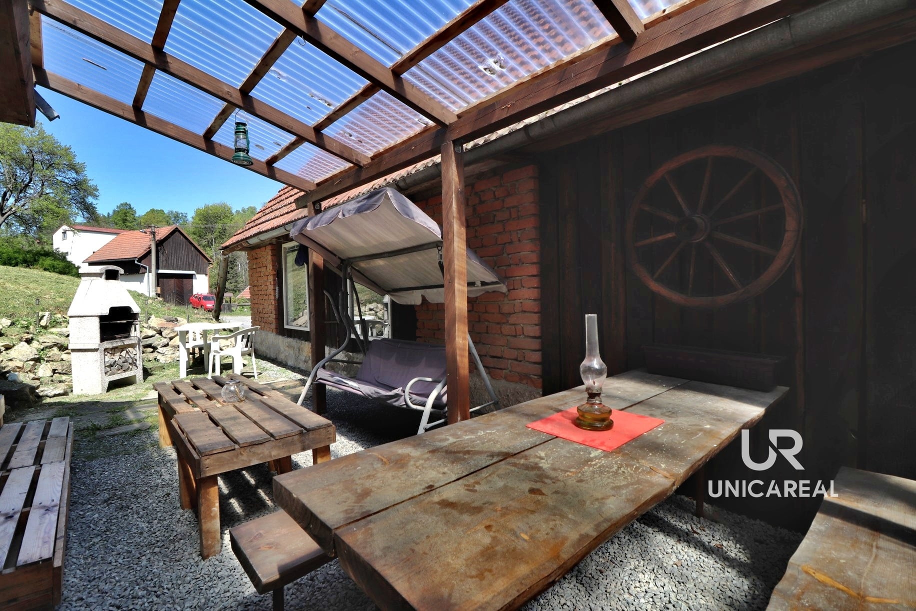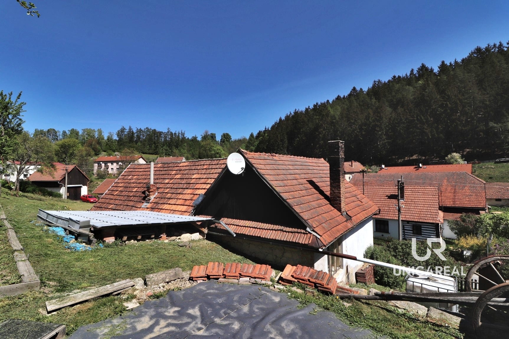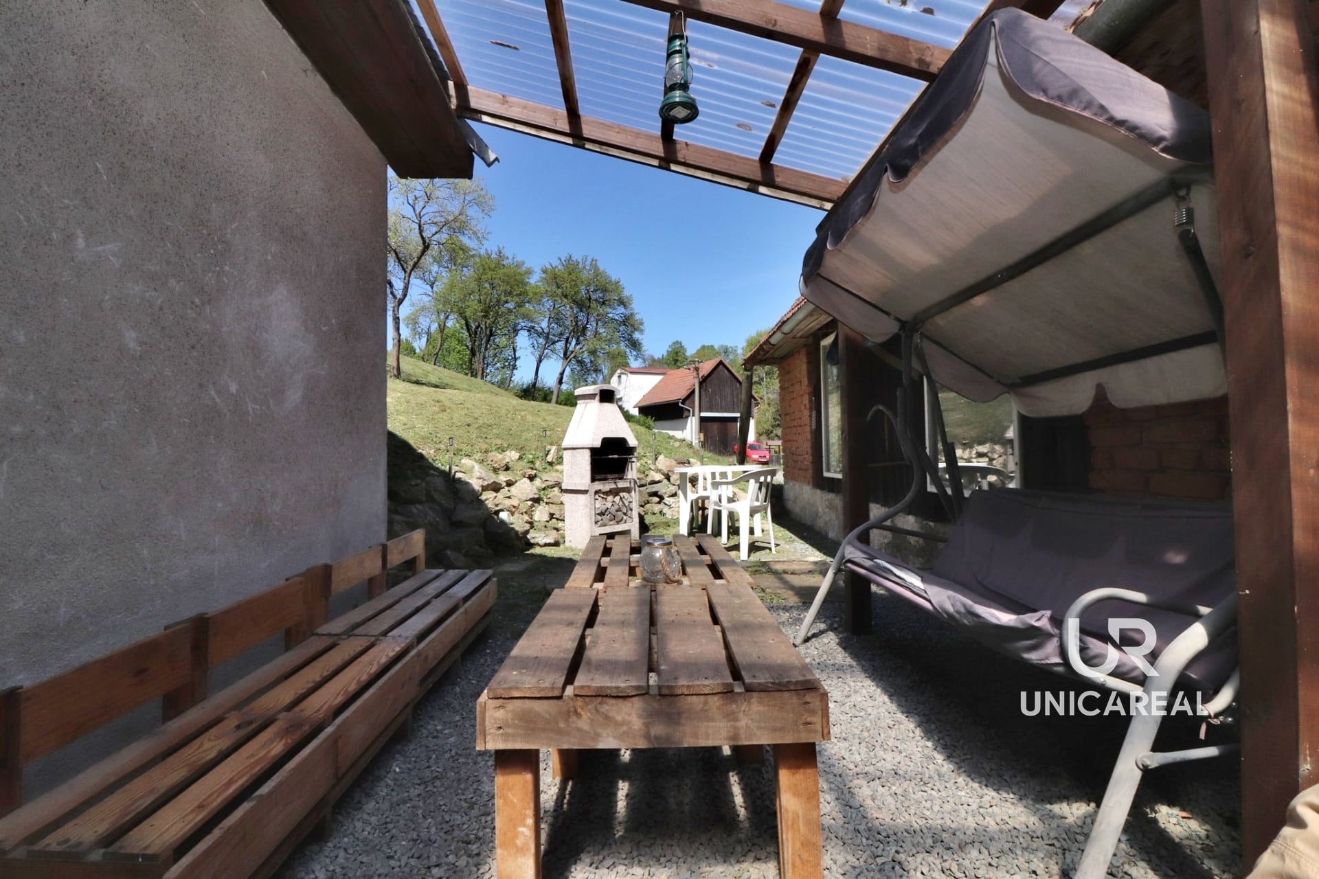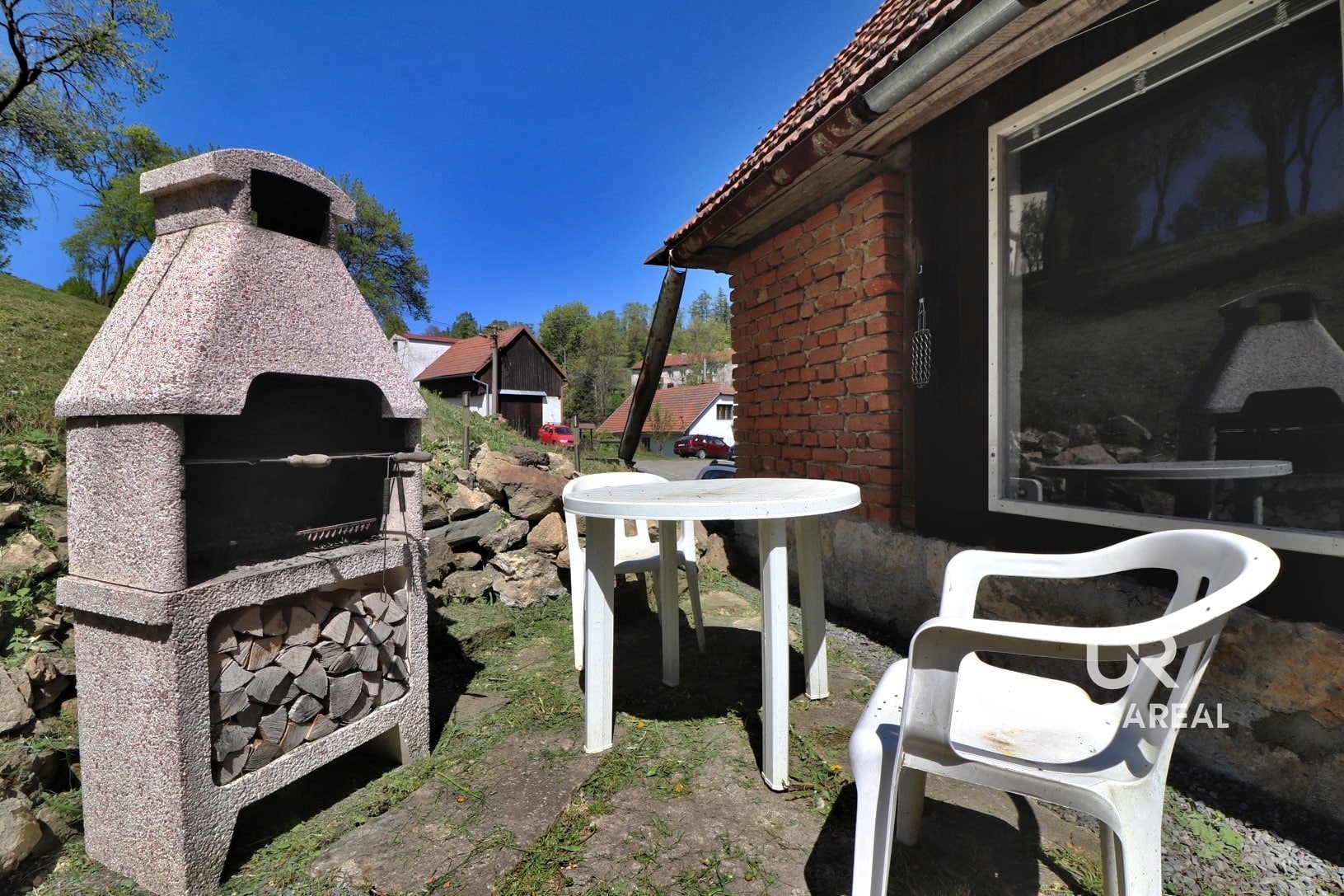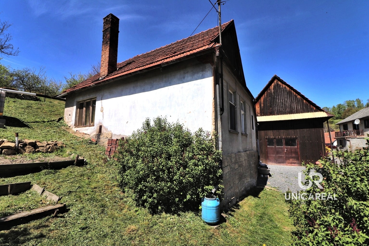 Jedná se o samostatně stojící zděnou jednopodlažní budovu vhodnou k rekreaci i bydlení. Zastavěná plocha včetně nádvoří a stodoly, kterou lze využít jako garáž či dílnu autoservisu s pneuservisem, činí 255 m². Zahrada příslušící k nemovitosti se rozprostírá na východním svahu, má výměru 2 068 m². Je osázena ovocnými stromy (švestky, jabloně, ořech) a z její horní části je nádherný výhled. V minulosti zde stávala ještě jedna nemovitost a 215 m² je v katastru nemovitostí stále vedeno jako zastavěná plocha, ke které jsou stále přivedeny inženýrské sítě a je zde tedy do budoucna možná výstavba dalšího domu. Pozemek sousedí s místním římskokatolickým kostelem, který je dominantou obce a poskytuje romantickou kulisu.
