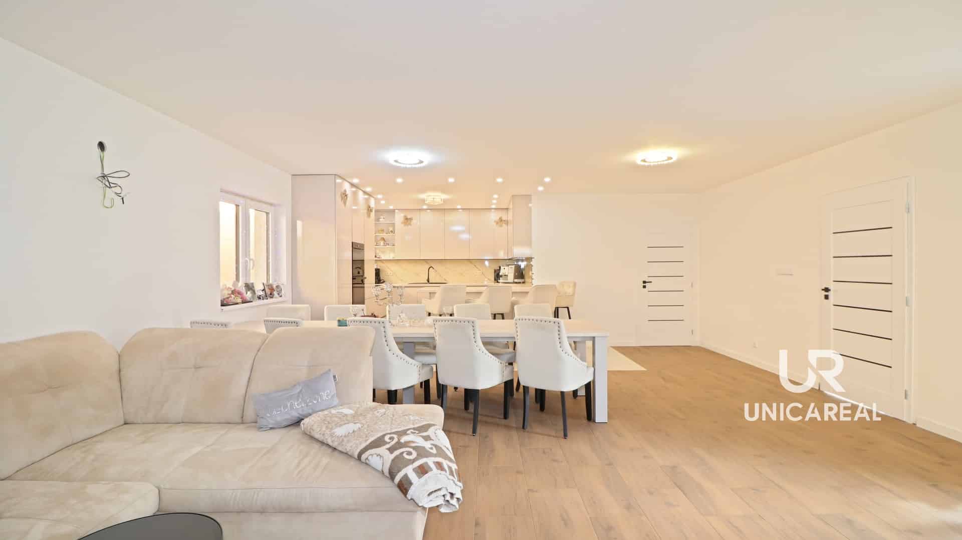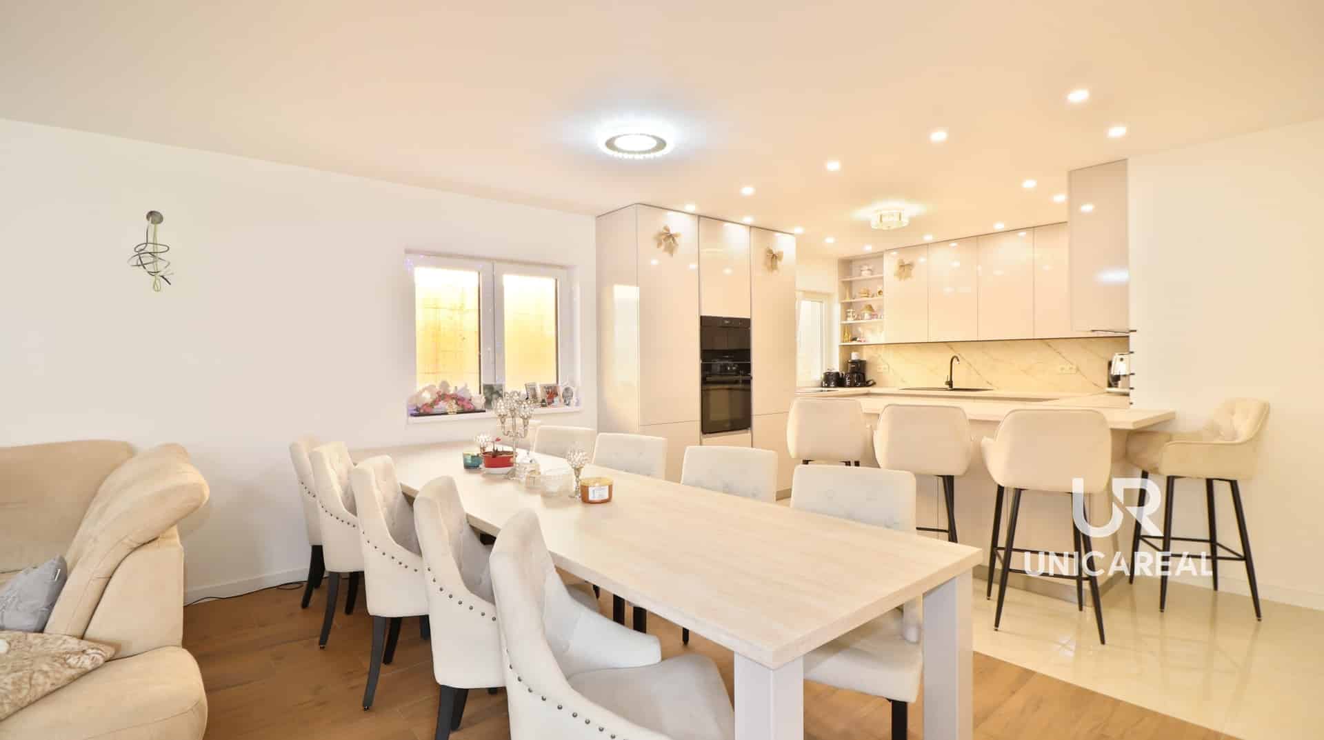 Interiér je již připraven k nastěhování včetně kompletně dokončené kuchyňské linky a k úplnému finále zbývá vydláždění terasy a dokončení fasády vč. úpravy okolí.