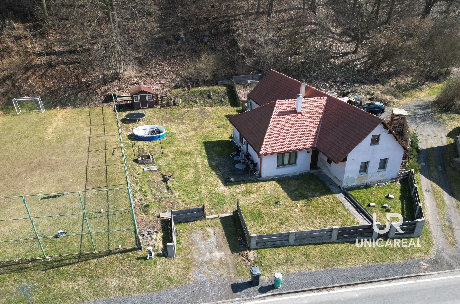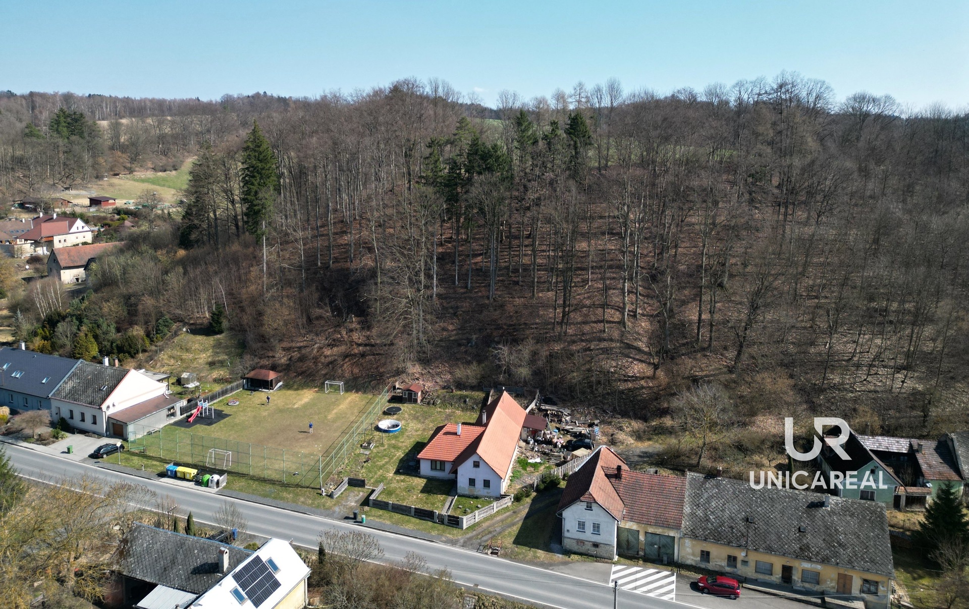 Poblíž domu je autobusová zastávka a dětské sportovní hřiště.