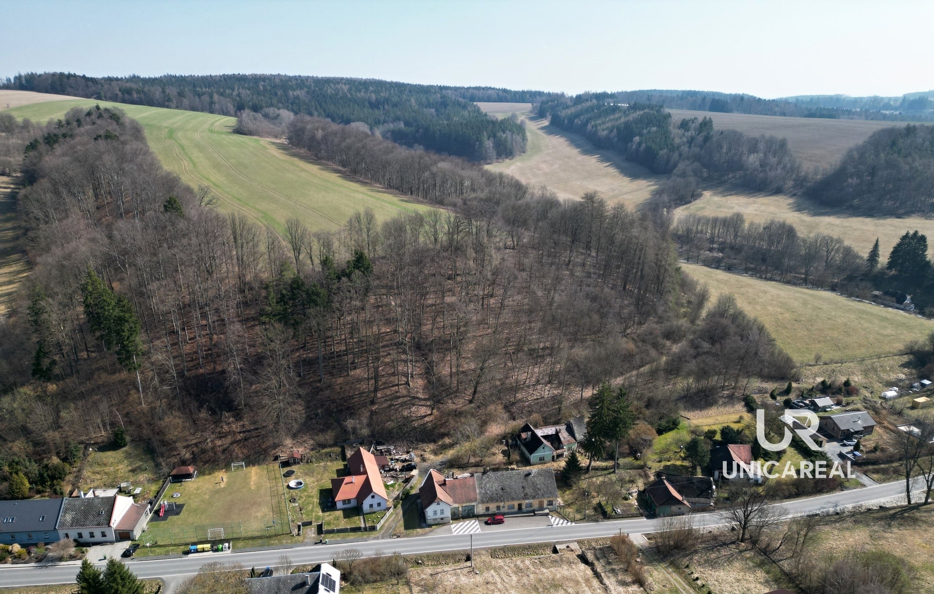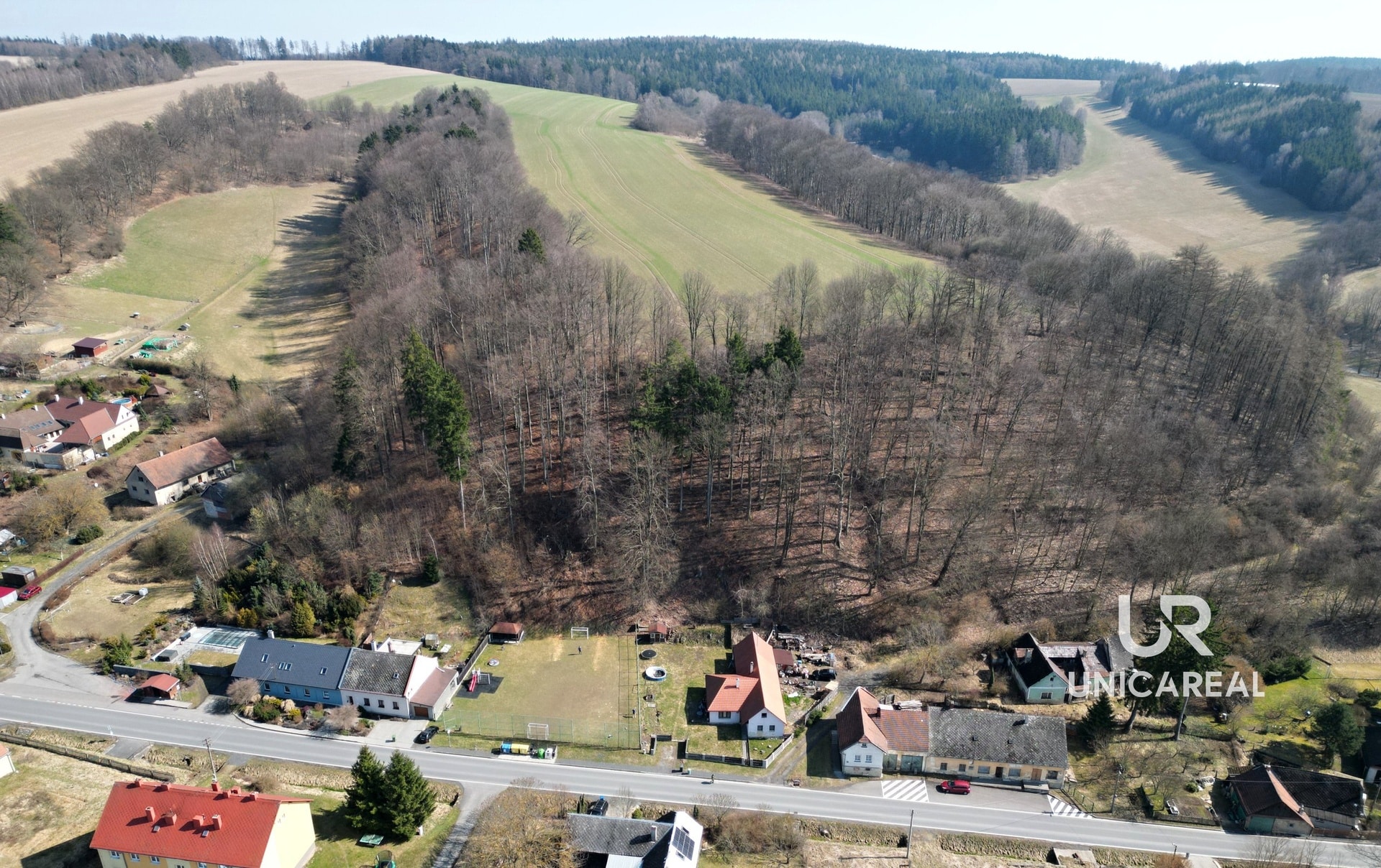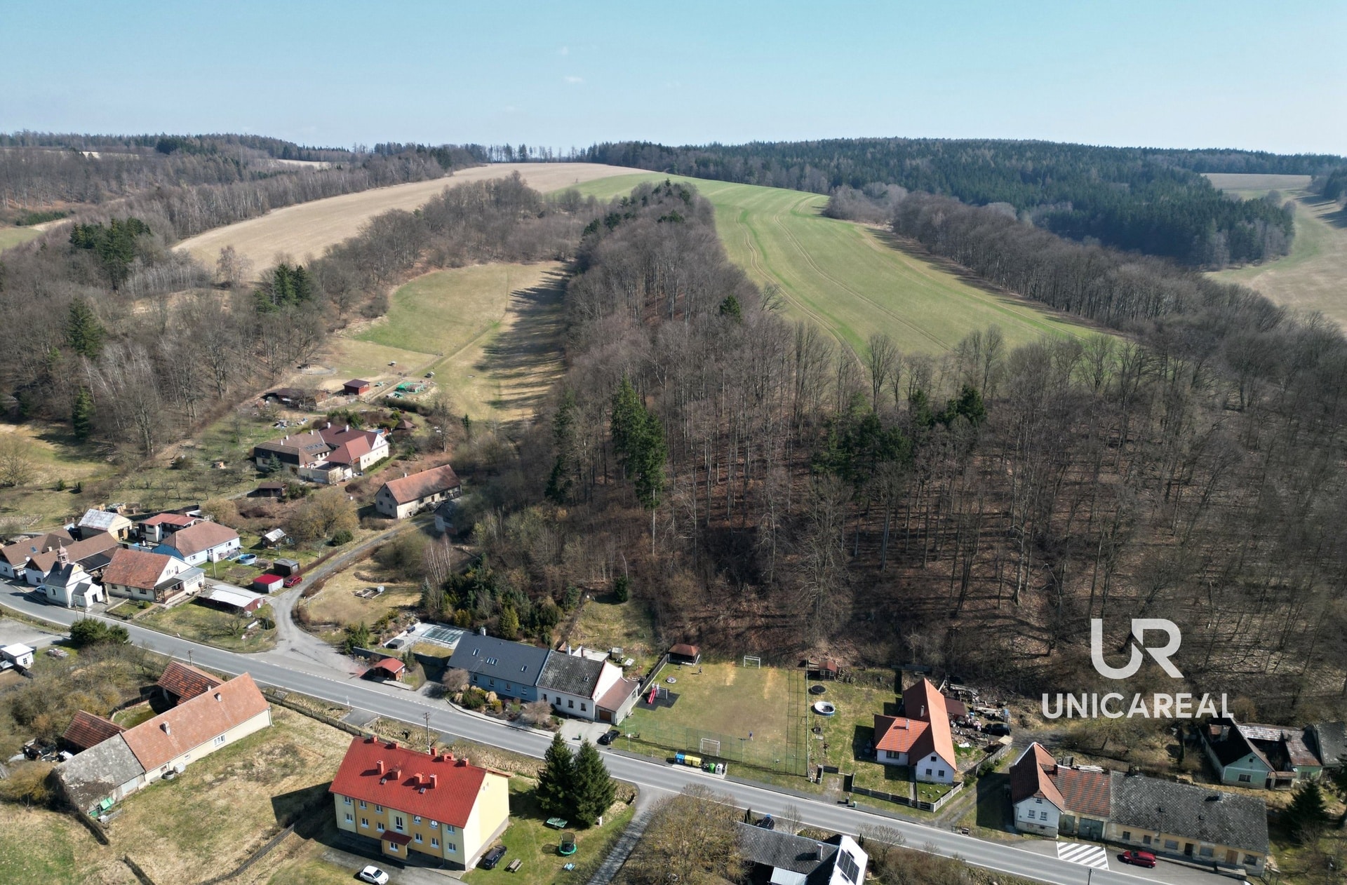 Obec Pohledy leží v průměrné výšce 495 metrů nad mořem. První zmínku o obci Pohledy nalezneme v historických pramenech v roce 1365 a Horní Hynčiny v roce 1270. Celková katastrální plocha obce je 1992 ha, z toho orná půda zabírá pouze 39% procent. Asi jedna třetina katastru obce je porostlá lesem. Občanskou vybavenost nabízí nedaleká Březová nad Svitavou.