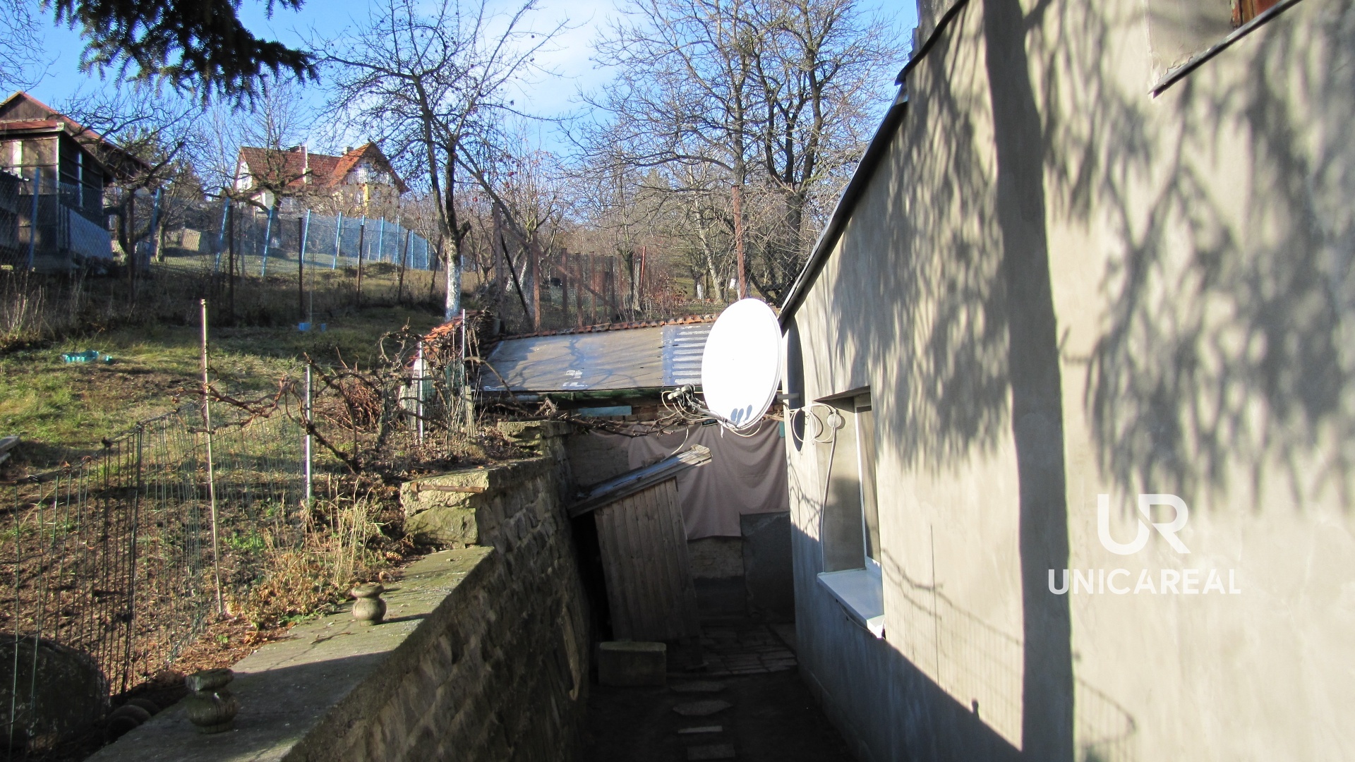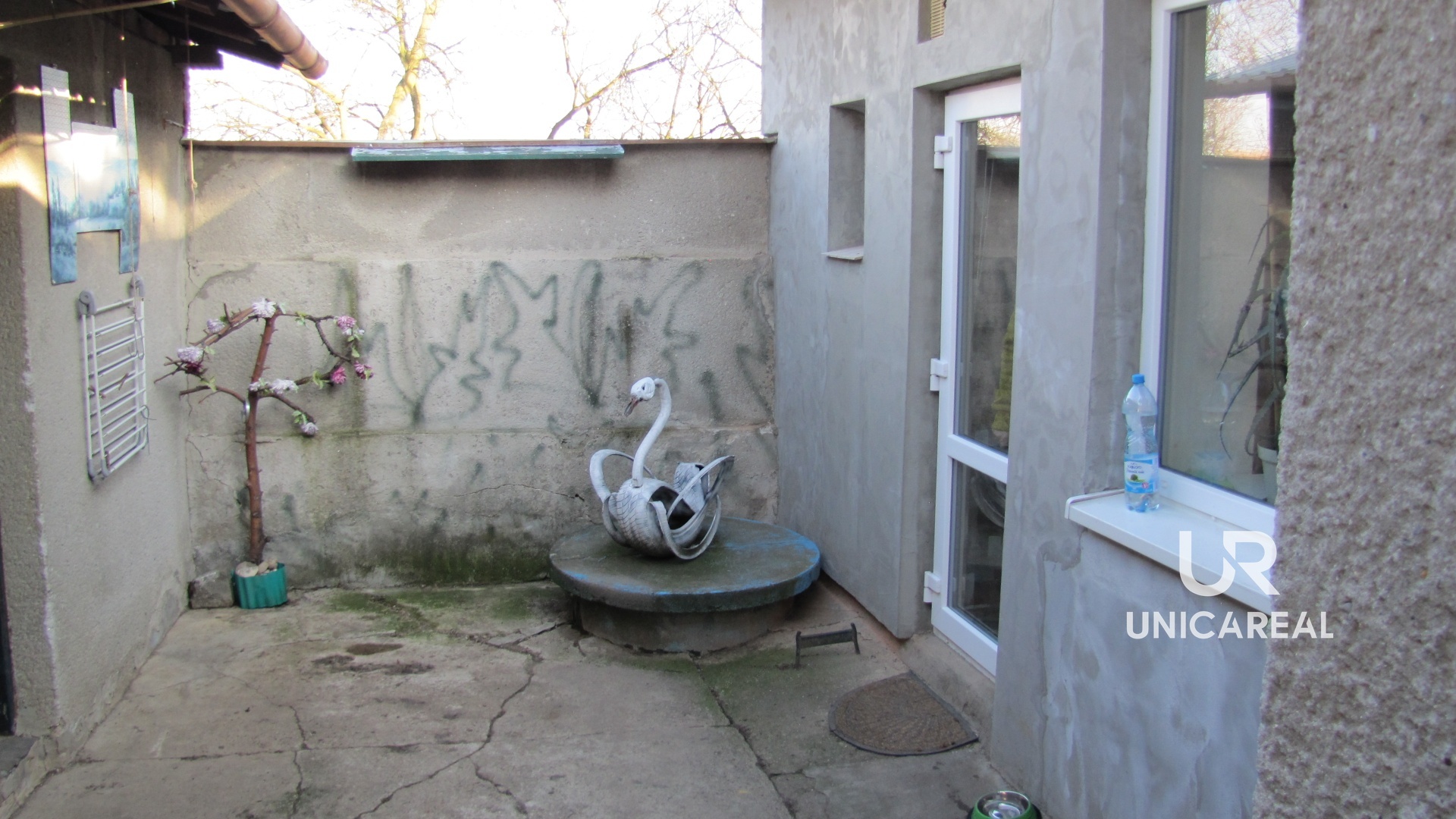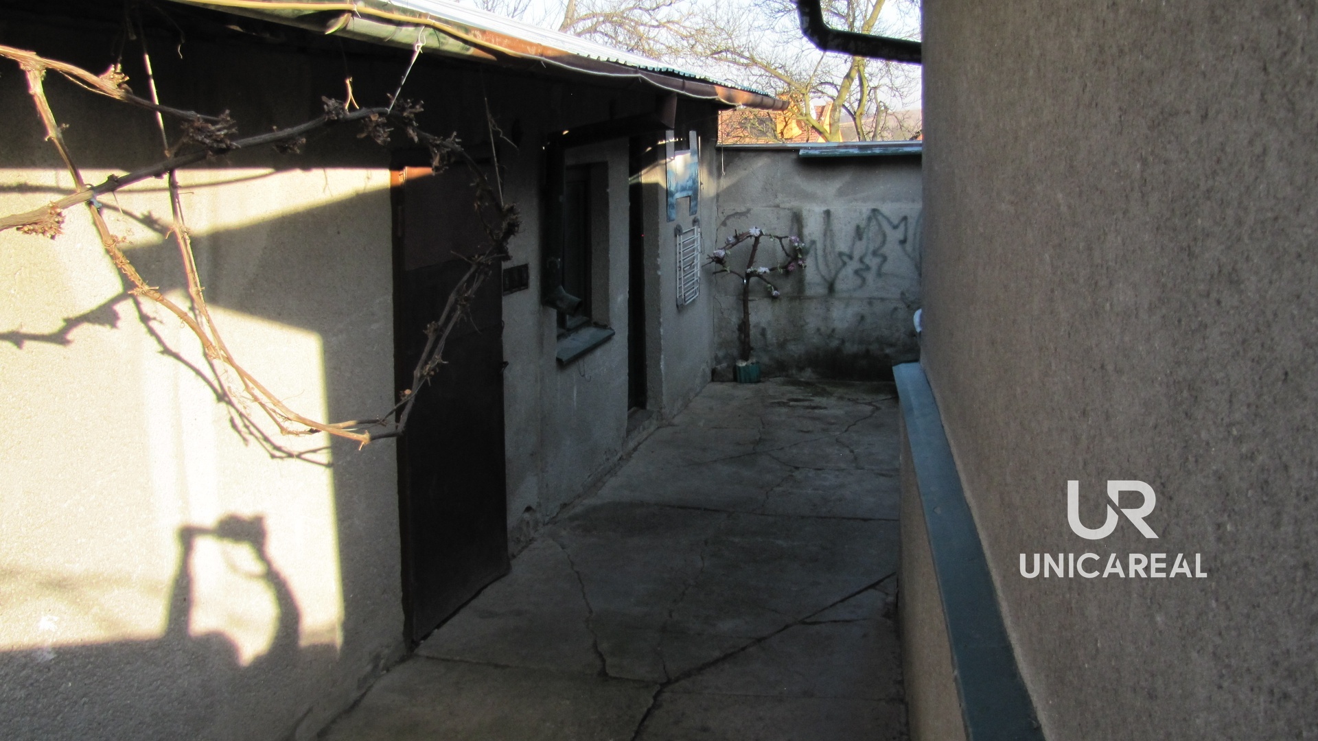 Z uzavřeného vstupu se dostaneme do průchozího pokoje. Z něj je vstup do ložnice a dále do kuchyně propojené s obývacím pokojem. WC je propojeno s koupelnou se sprchovým koutem. Z kuchyně je vstup na uzavřený dvůr s technickým zázemím. Vedle domu je zahrada s ovocnými stromy.