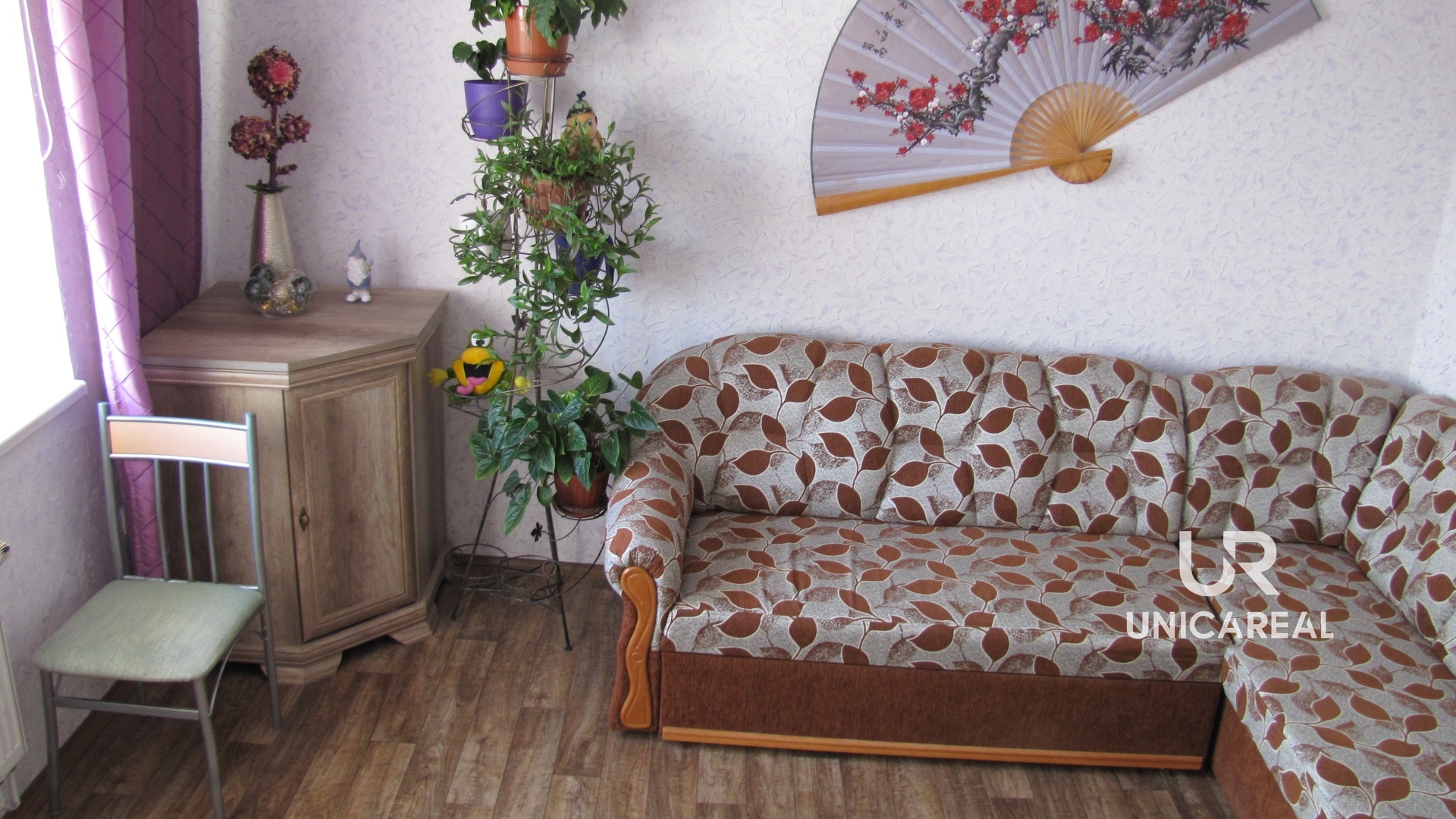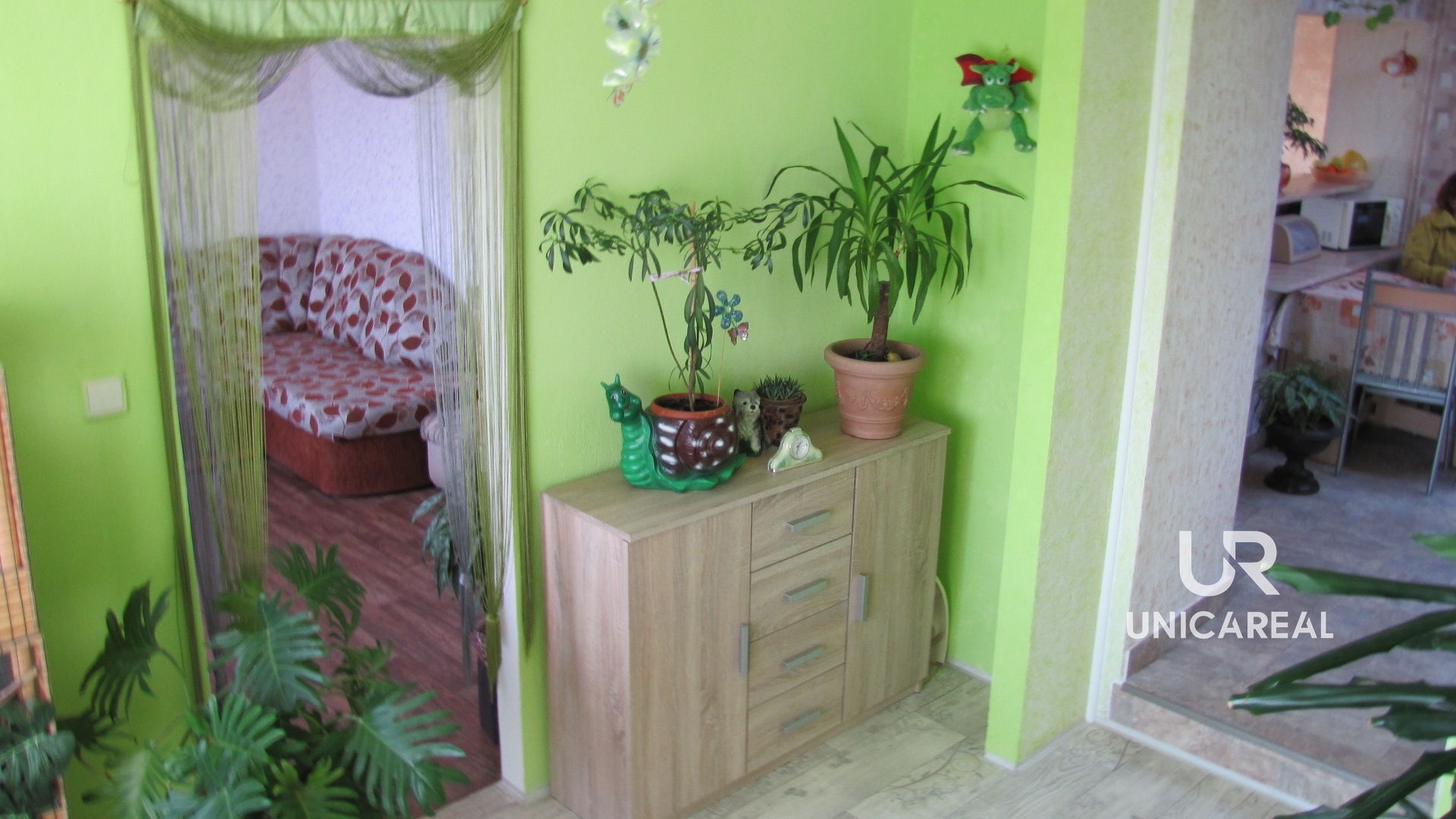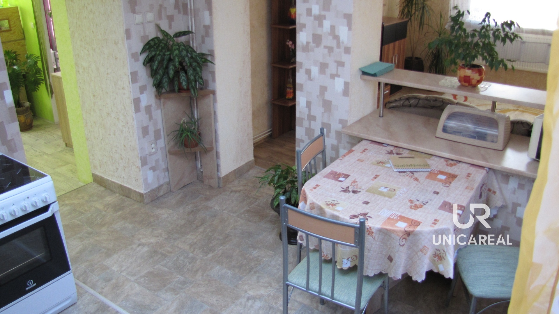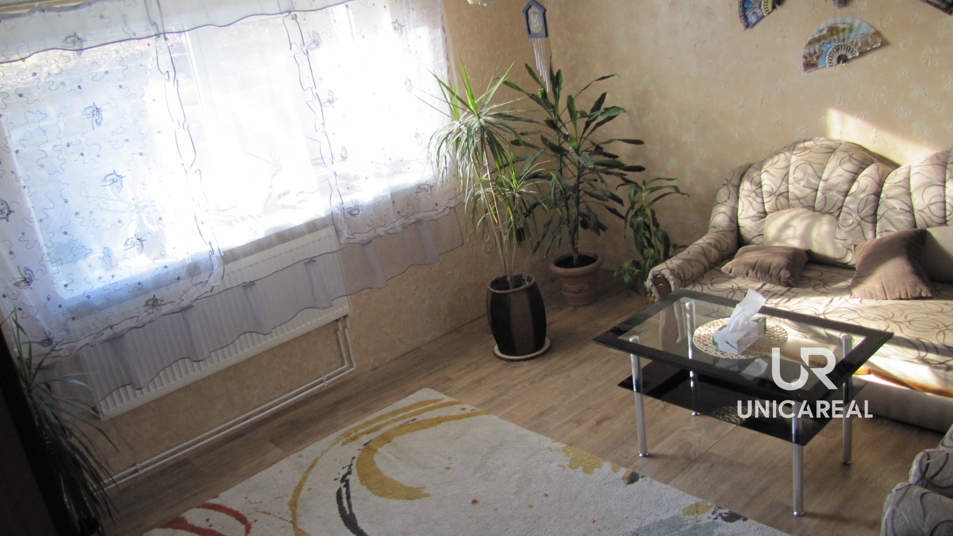 Z uzavřeného vstupu se dostaneme do průchozího pokoje. Z něj je vstup do ložnice a dále do kuchyně propojené s obývacím pokojem. WC je propojeno s koupelnou se sprchovým koutem. Z kuchyně je vstup na uzavřený dvůr s technickým zázemím. Vedle domu je zahrada s ovocnými stromy.