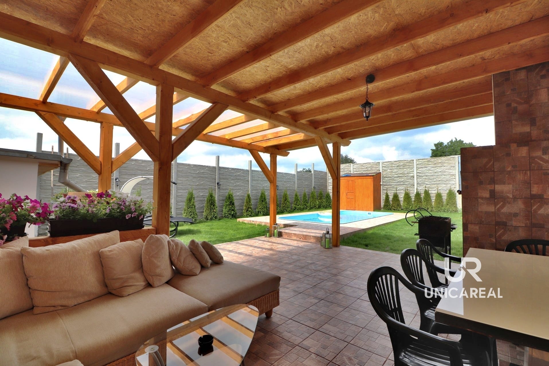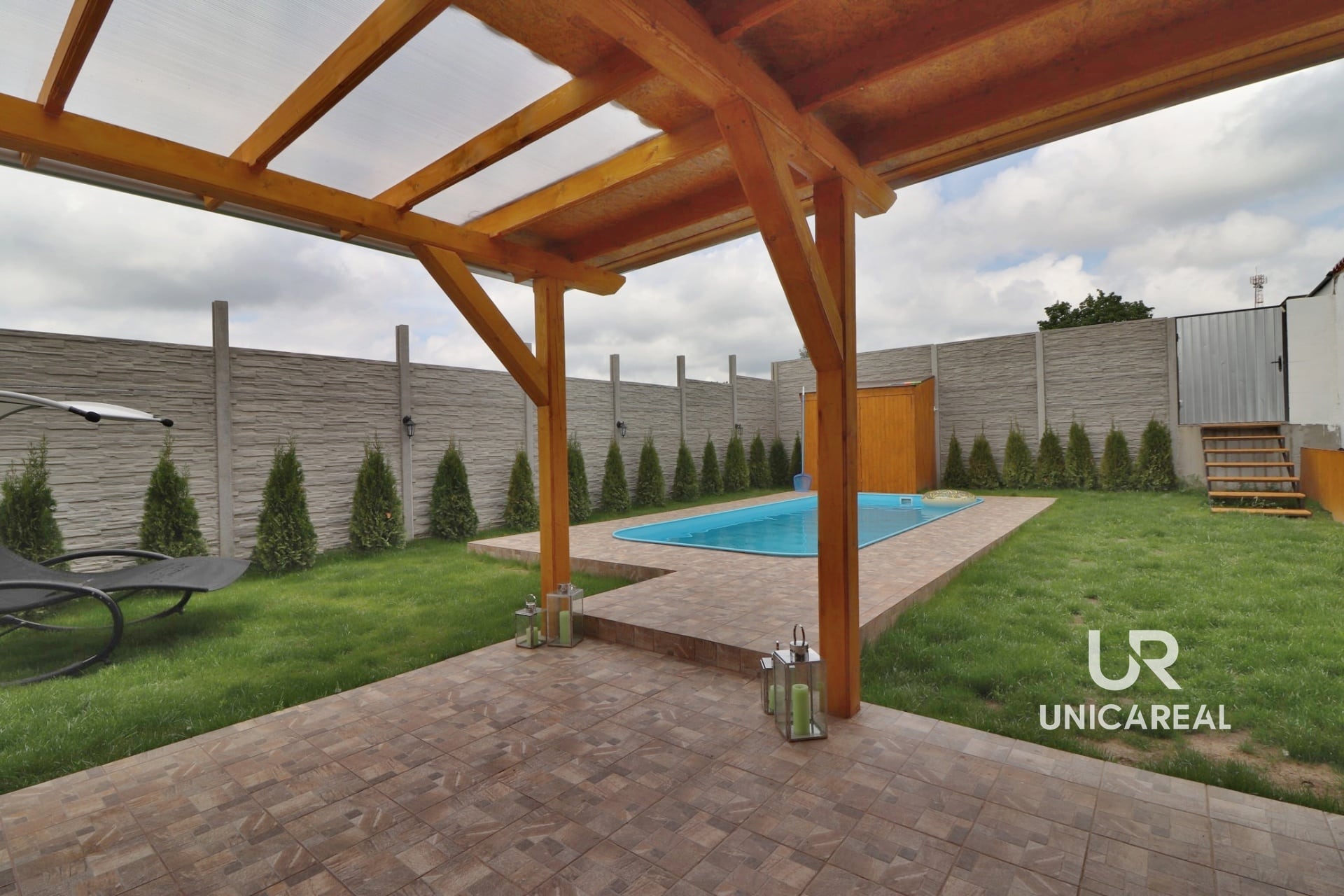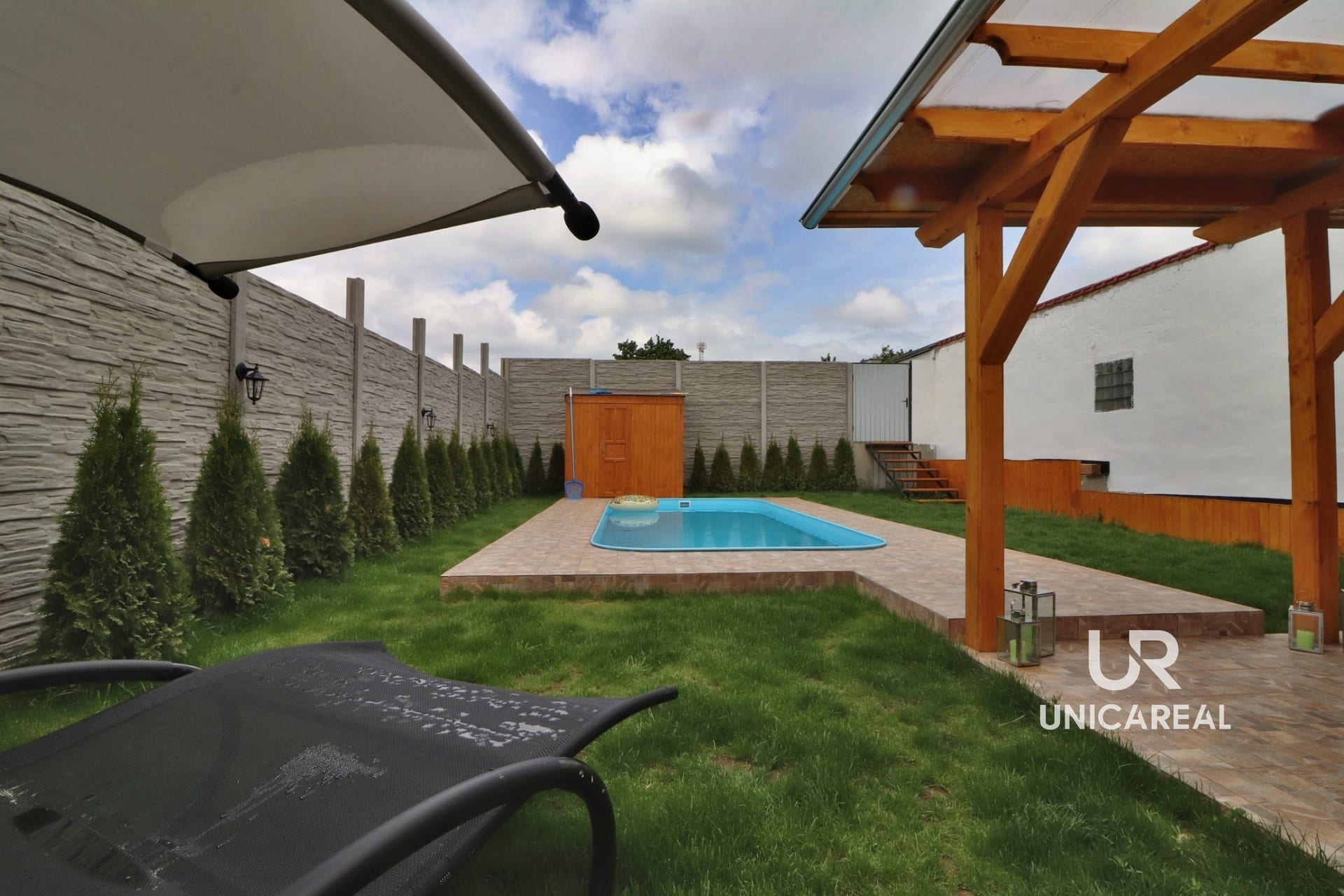 Topení a ohřev vody v domě zajišťuje plynový kondenzační kotel. Zastavěná plocha činí 265 m2, užitná 170 m2. K domu náleží oplocená zahrada 120 m2 s novým zapuštěným bazénem s pískovou filtrací 7 x 3 m. Nemovitost je napojena na veřejnou kanalizaci, elektřinu, plyn i vodovod.