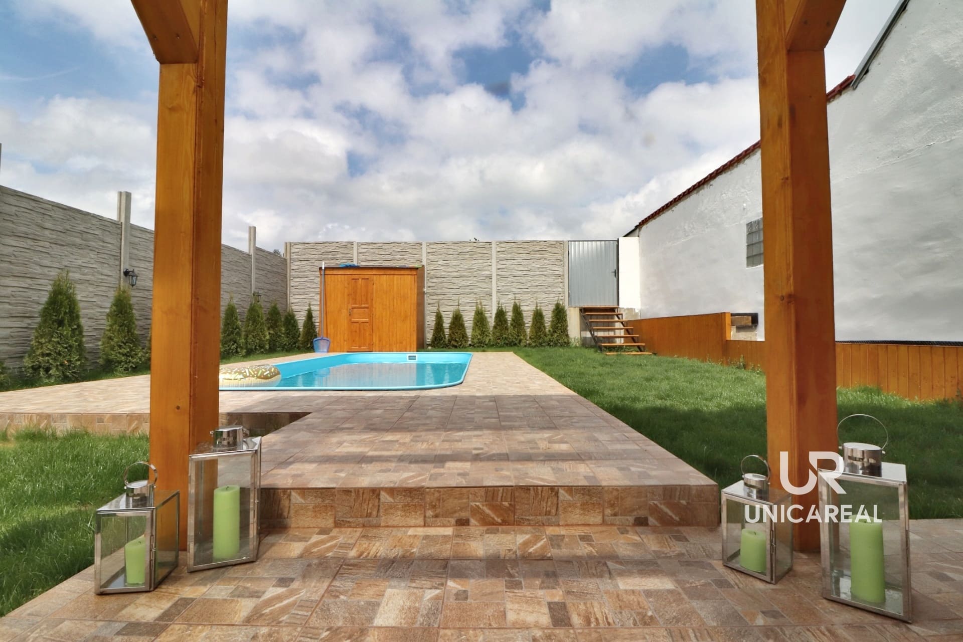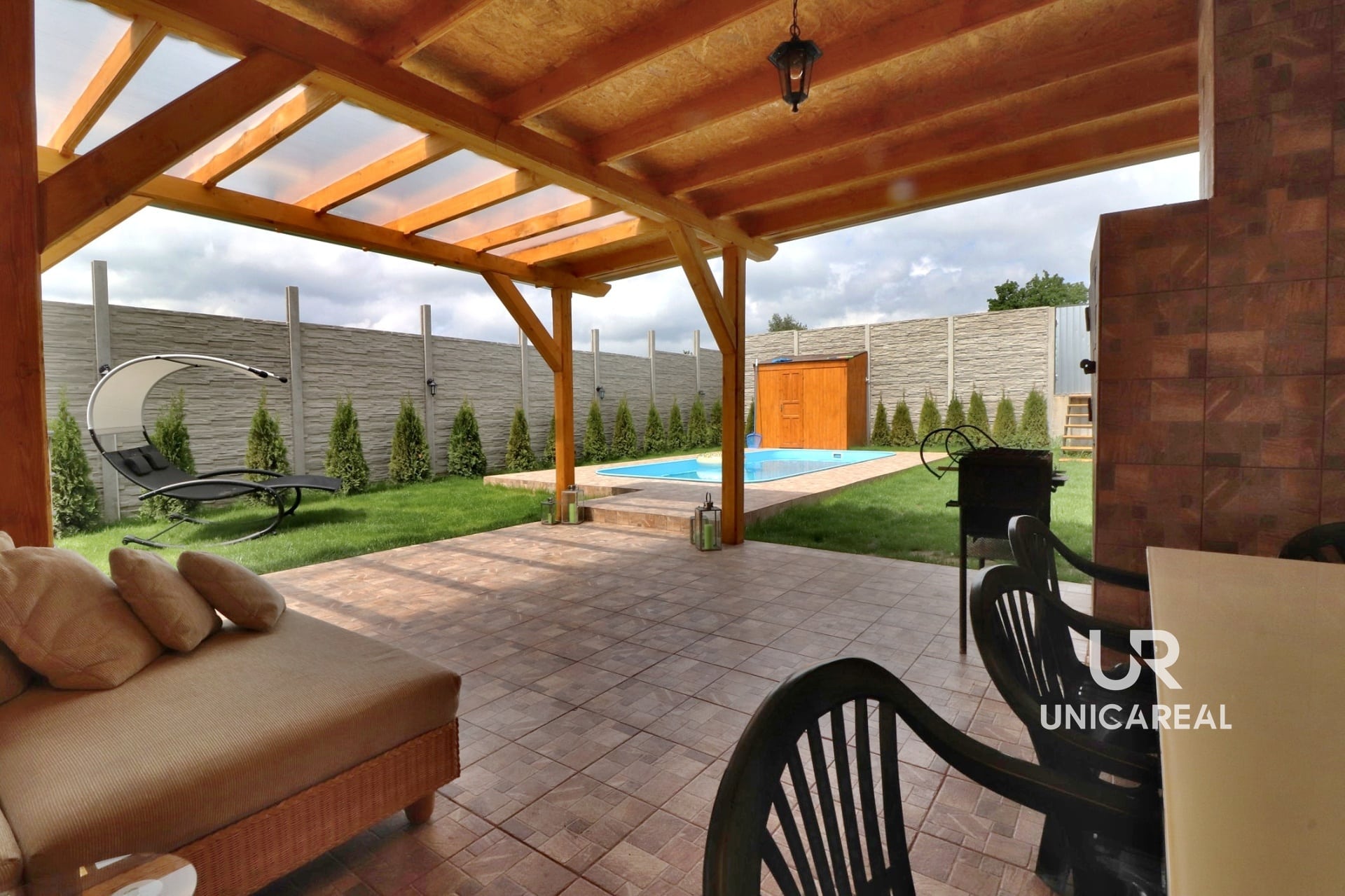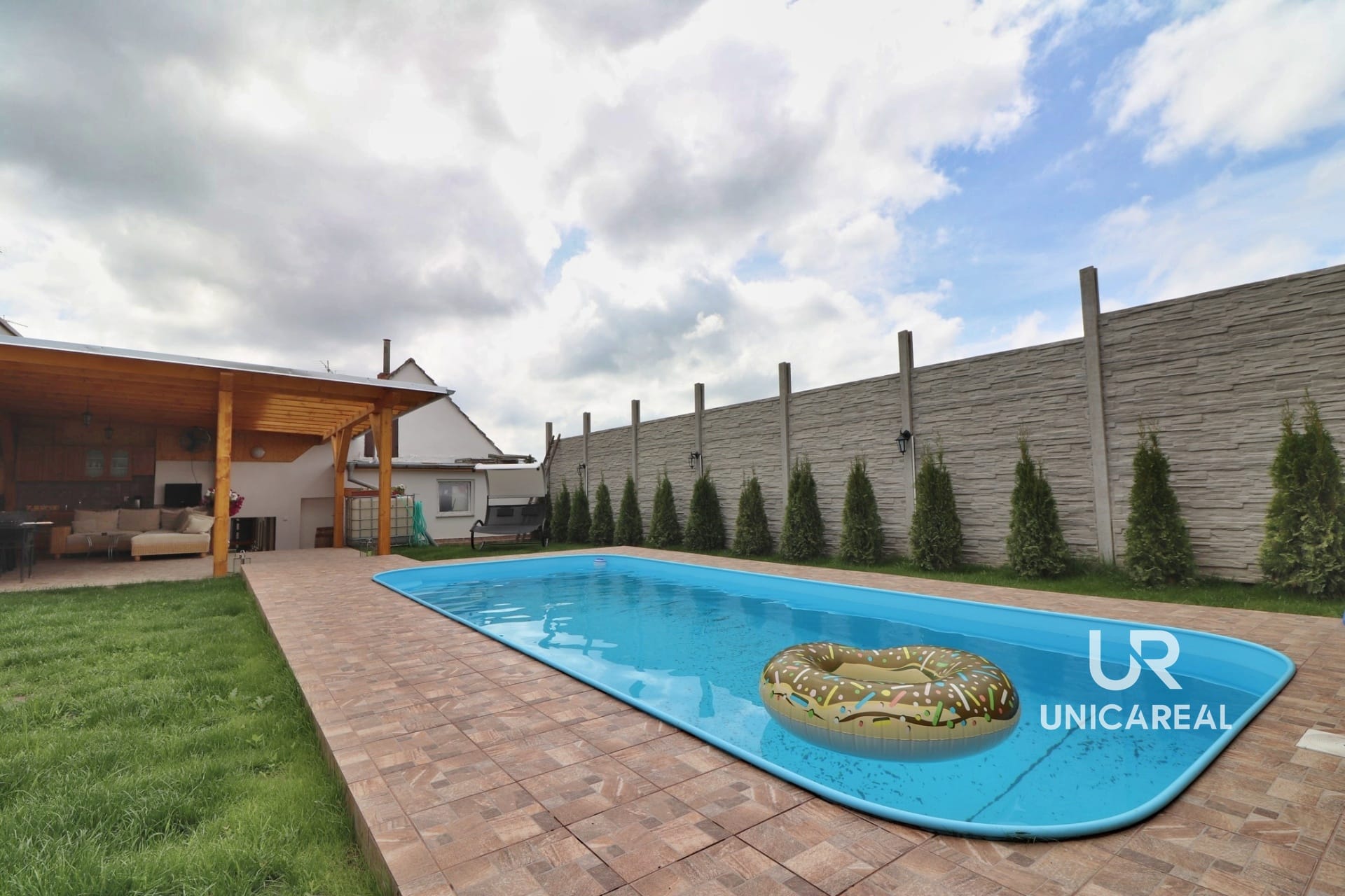 Topení a ohřev vody v domě zajišťuje plynový kondenzační kotel. Zastavěná plocha činí 265 m2, užitná 170 m2. K domu náleží oplocená zahrada 120 m2 s novým zapuštěným bazénem s pískovou filtrací 7 x 3 m. Nemovitost je napojena na veřejnou kanalizaci, elektřinu, plyn i vodovod.