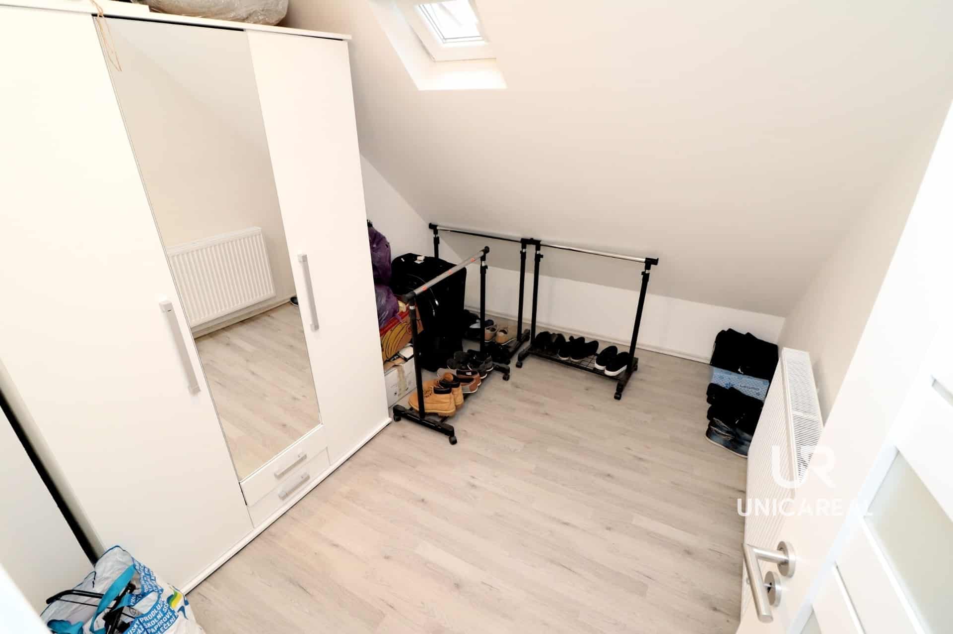 V prvním nadzemním podlaží se nachází vstupní chodba se schodištěm, hlavní obytný prostor s jídelnou a kuchyní, ložnice se samostatnou toaletou, koupelna a pokoj aktuálně využívaný jako šatna. Vkusně řešená a plně zařízená moderní kuchyň vytváří spolu s jídelní a obytnou částí vzdušnou a prostornou dispozici, ve které se vám bude příjemně trávit čas s rodinou. Druhé nadzemní podlaží s obytným podkrovím nabízí vstupní chodbu, ze které je přístup do ložnice a pokoje (využívané jako šatna).