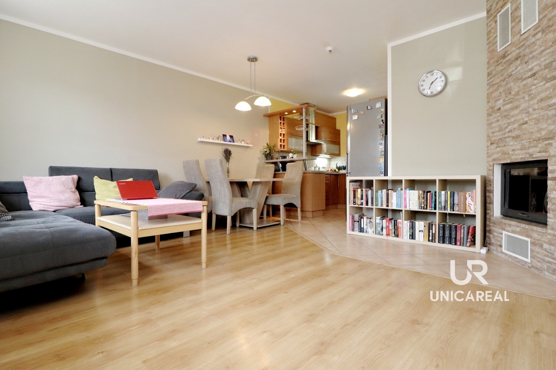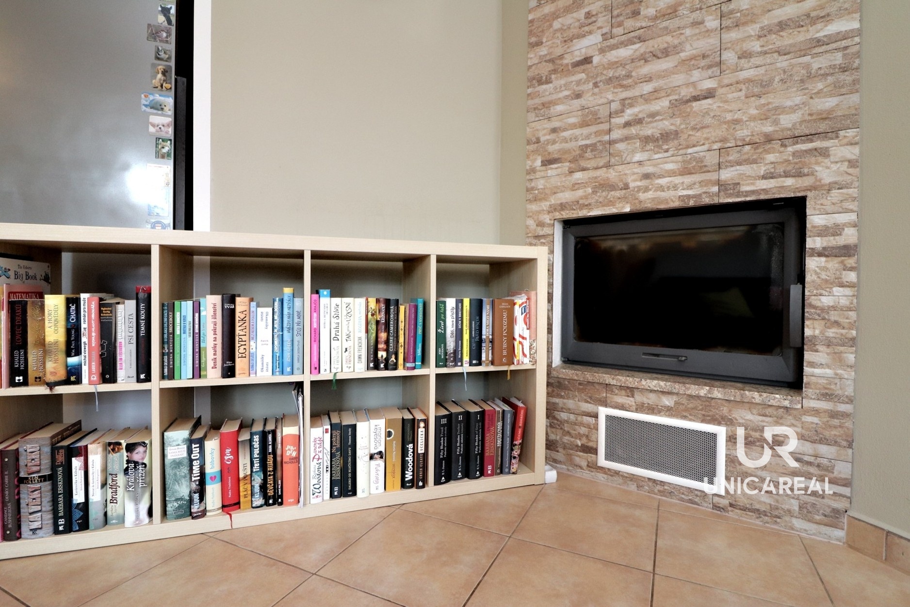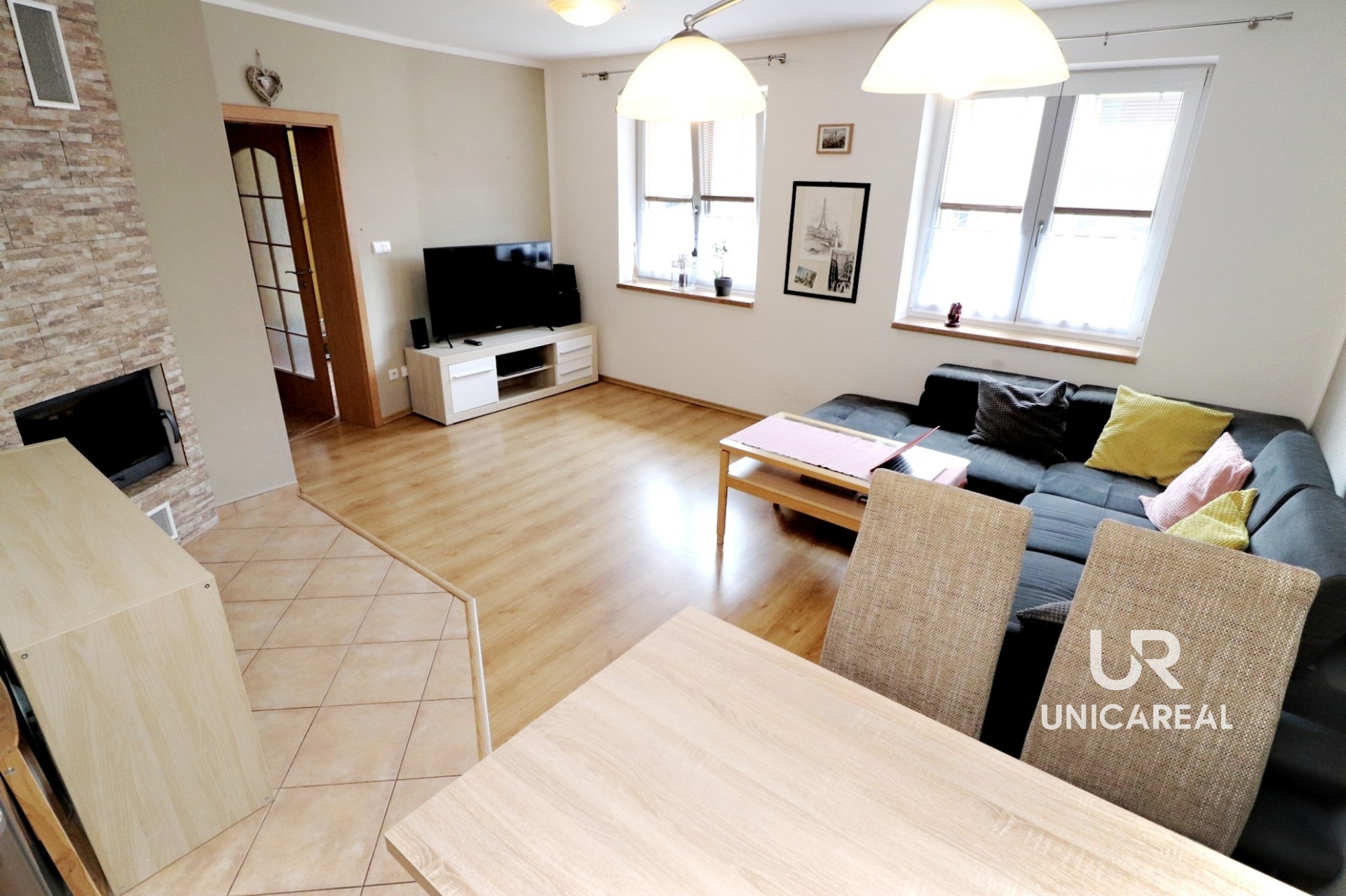 Dominantou obývacího pokoje jsou krbová kamna, která vám v chladnějších měsících příjemně vytopí spodní část domu. Hlavní vytápění v domě zajišťuje kondenzační plynový kotel, spodní část domu je vytápěna podlahovým topením, v podkroví jsou v pokojích radiátory, v koupelně a WC podlahové topení. Na podlahách je keramická dlažba, v pokojích plovoucí podlaha. V celém domě jsou plastová okna opatřená žaluziemi, střešní plastová okna Velux se zatemňovacími roletami. Schodiště do podkroví je zděné s dřevěnými nášlapy.