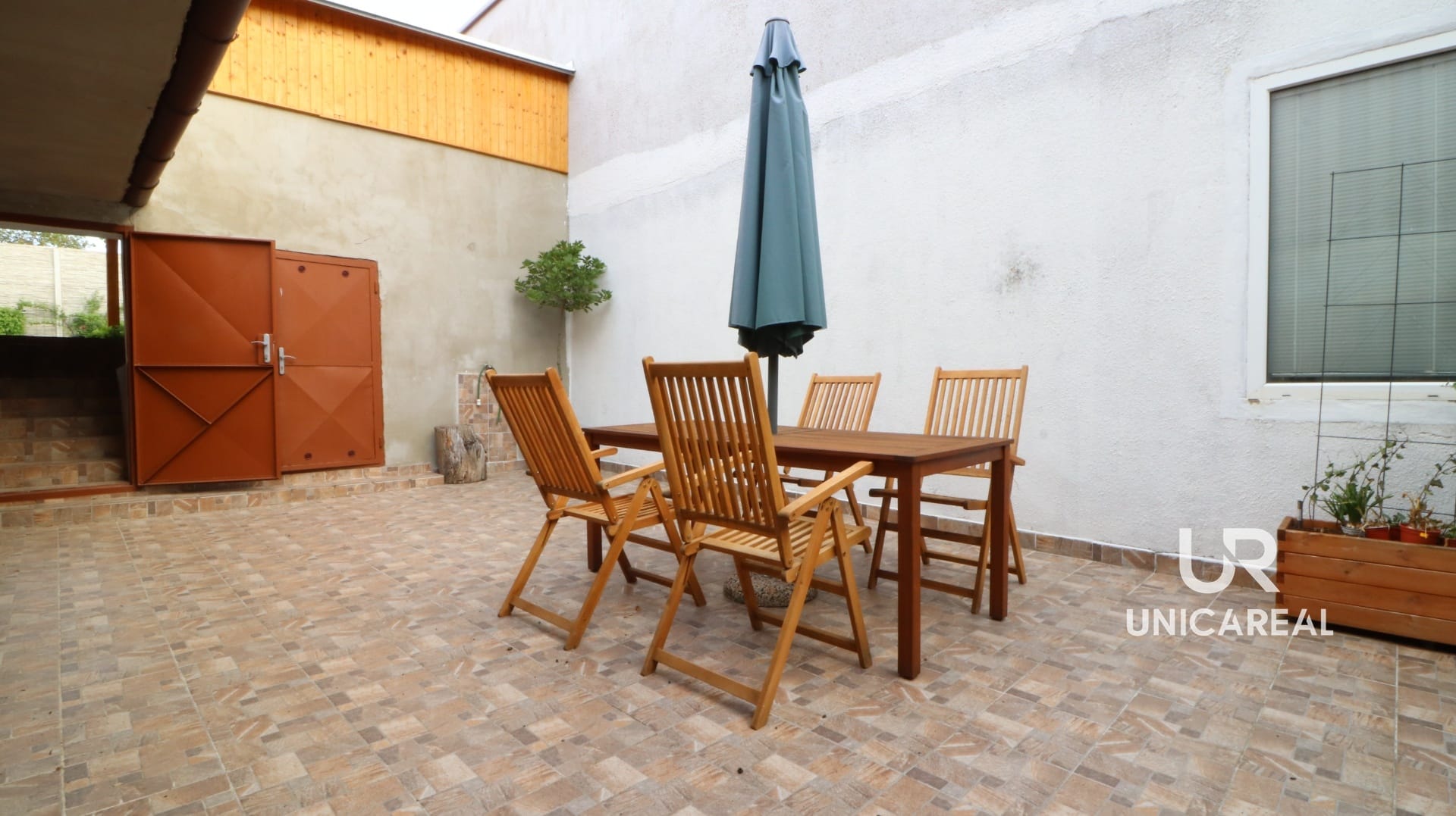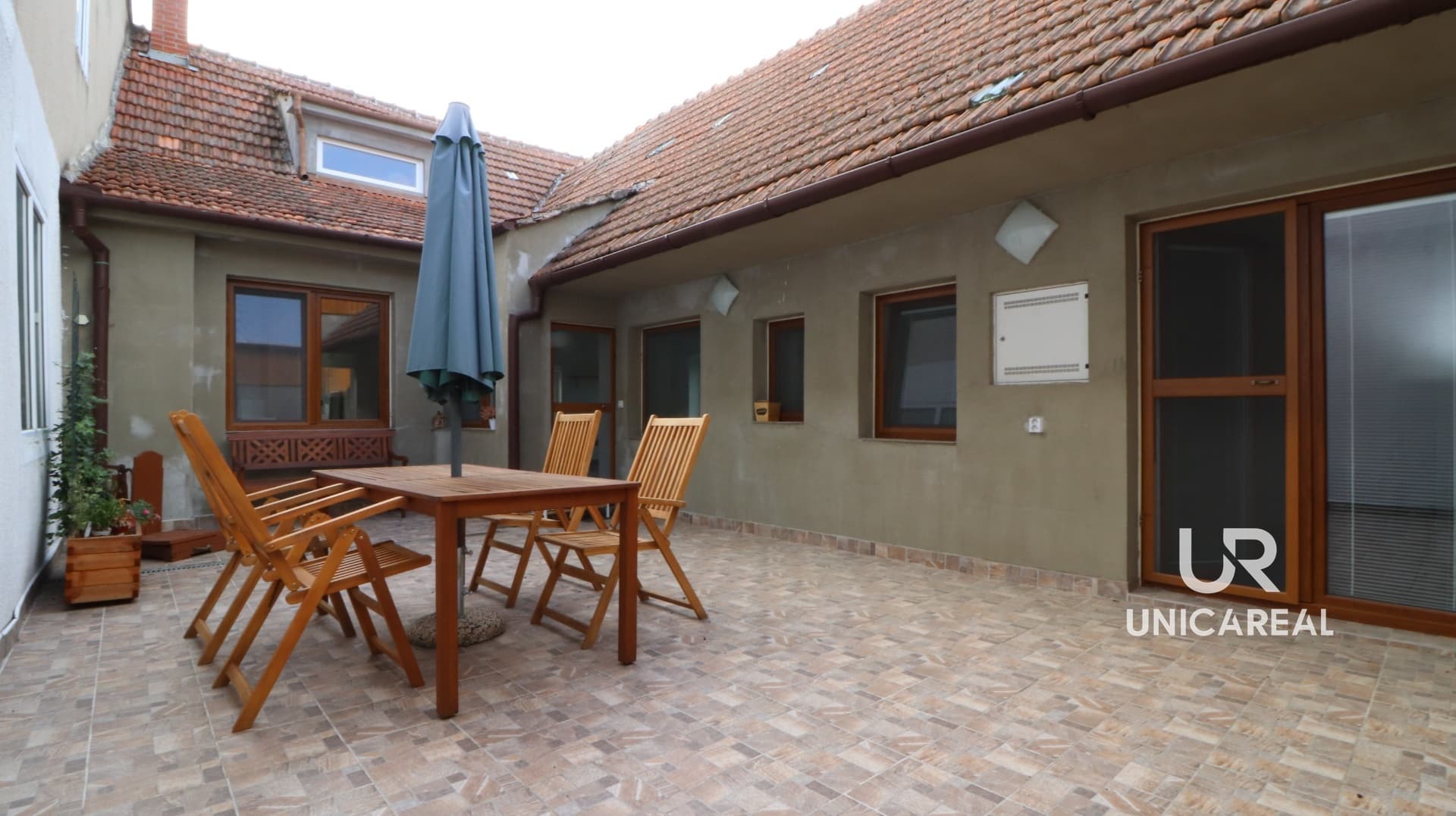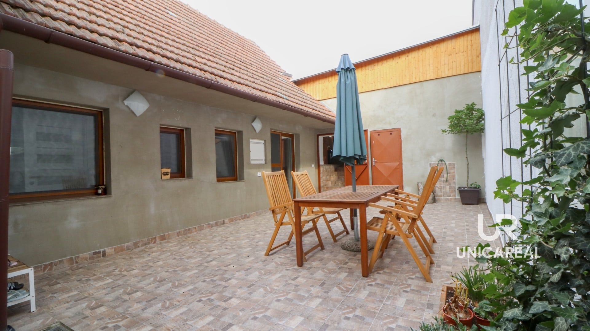 Z obývacího pokoje i ložnice je vstup na uzavřenou část terasy s posezením která navazuje na zahradu s bazénem, dřevěnou pergolou s posezením. Zahrada je nově vysázena okrasnými dřevinami.