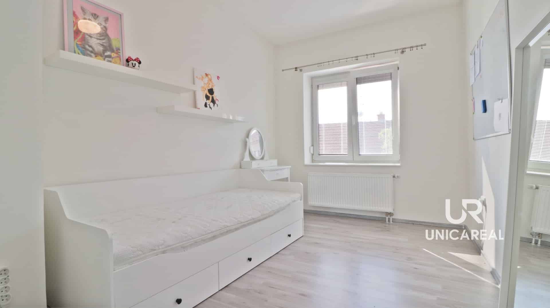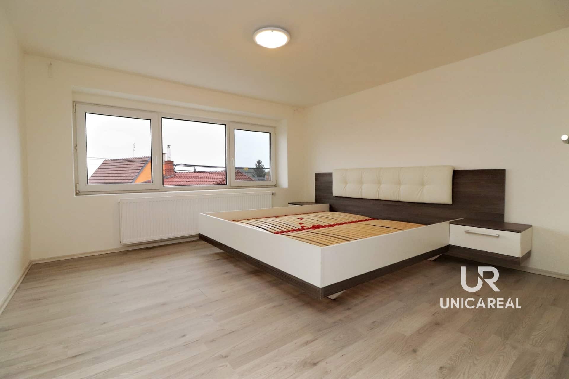 V prvním nadzemním podlaží se nachází vstupní chodba se schodištěm, hlavní obytný prostor s jídelnou a kuchyní, ložnice, dětský pokoj, ložnice se samostatnou toaletou, koupelna s vanou a toaletou. Vkusně řešená a plně zařízená moderní kuchyň vytváří spolu s jídelní a obytnou částí vzdušnou a prostornou dispozici, ve které se vám bude příjemné trávit čas s rodinou. Druhé nadzemní podlaží s obytným podkrovím nabízí vstupní chodbu, ze které je přístup do ložnice a pokoje (využívané jako šatna).