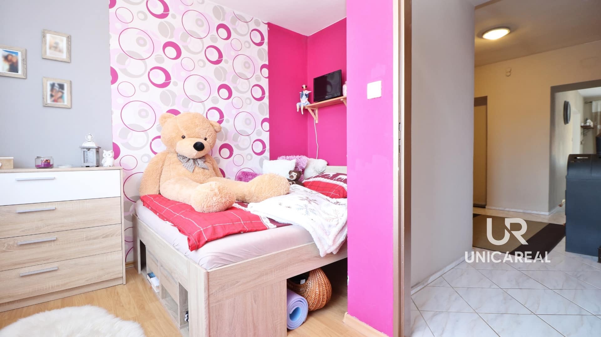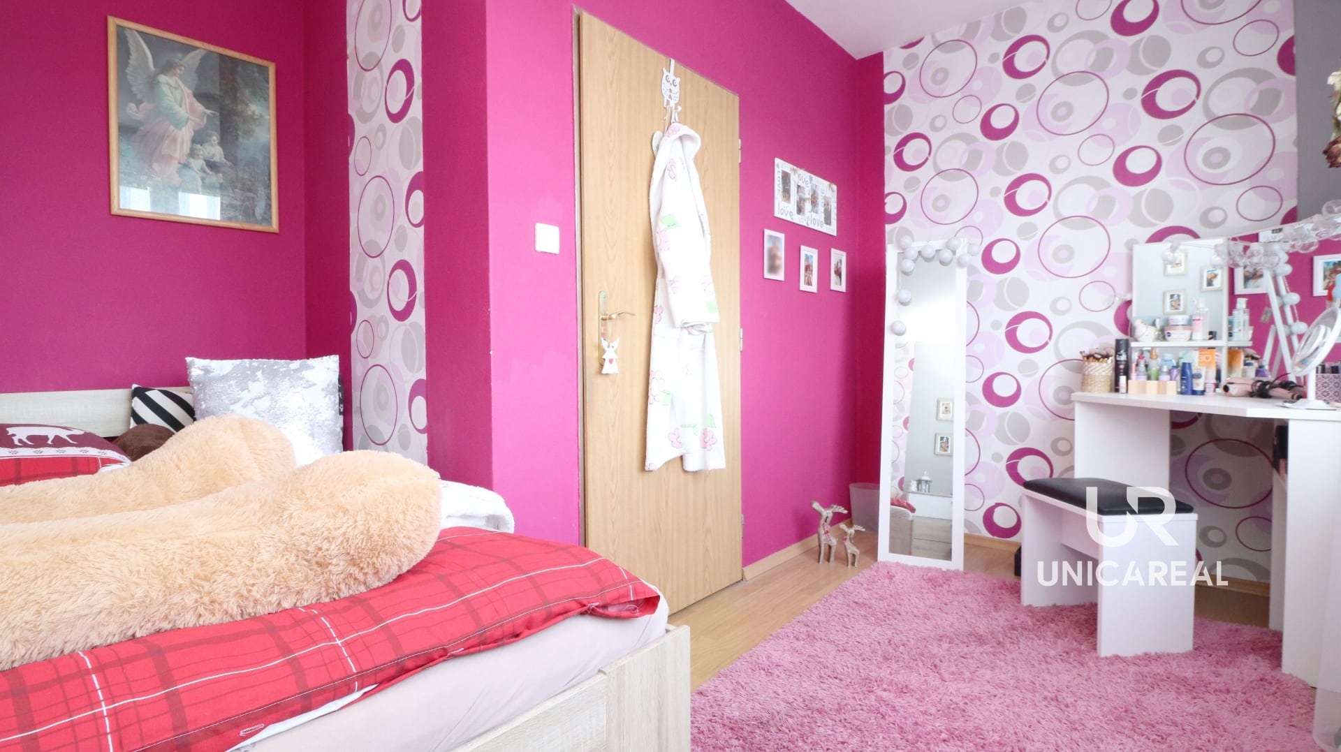 Do prvního patra vstupujeme přes společnou chodbu po schodišti kde se nachází samostatná bytová jednotka s dispozicí – hala 11,8 m2, koupelna s vanou a toaletou 6,6 m2 , dětský pokoj 6,8 m2, pokoj 10,3 m2, ložnice 12,9 m2, prostorná obytná kuchyně 21,2 m2 s krásným výhledem do okolí, obývací pokoj 20,6 m2 se vstupem na lodžii 4,4m2 .
