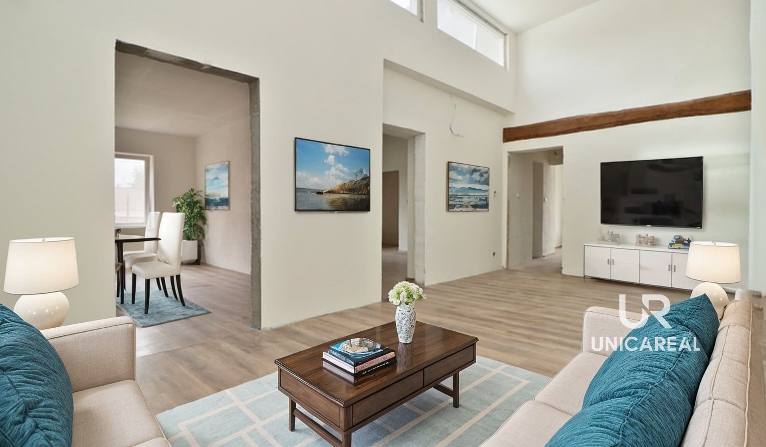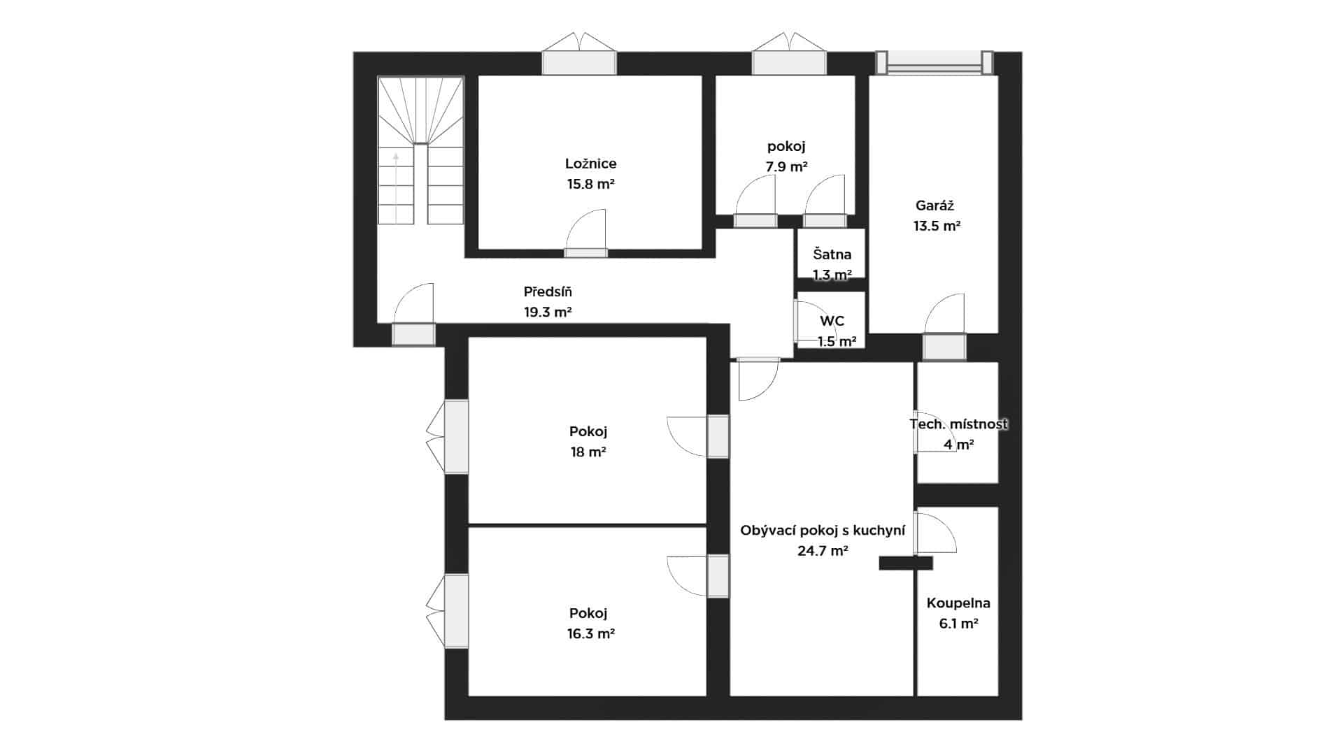V 1.NP se nachází bytová jednotka 5+kk – 131m² s technickým zázemím a garáží, odkud se centrálním schodištěm dostaneme do 2.NP s dispozicí 2+kk – 68 m² včetně praktické šatny. Dům se dá využít i jako dvougenerační se dvěma samostatnými byty.