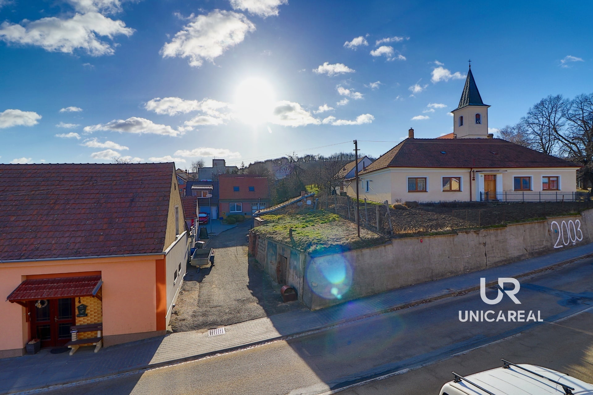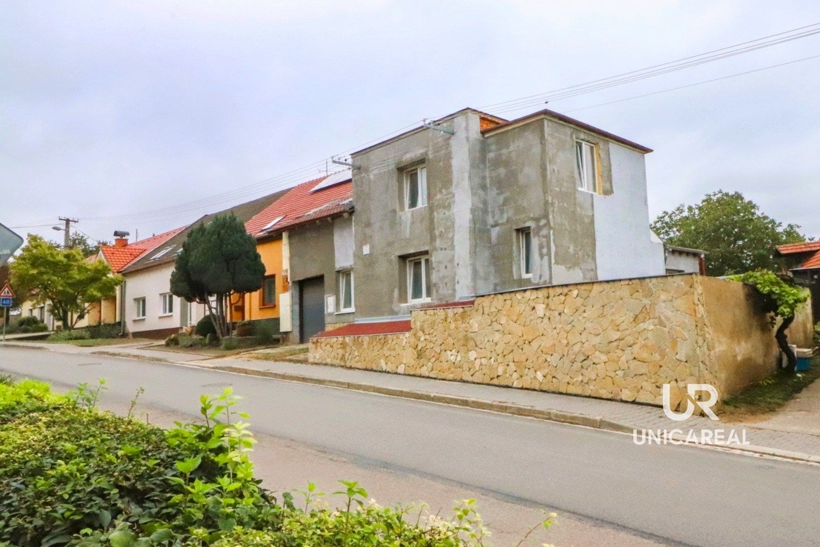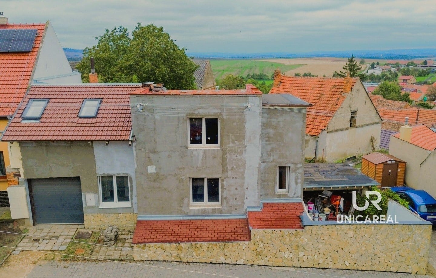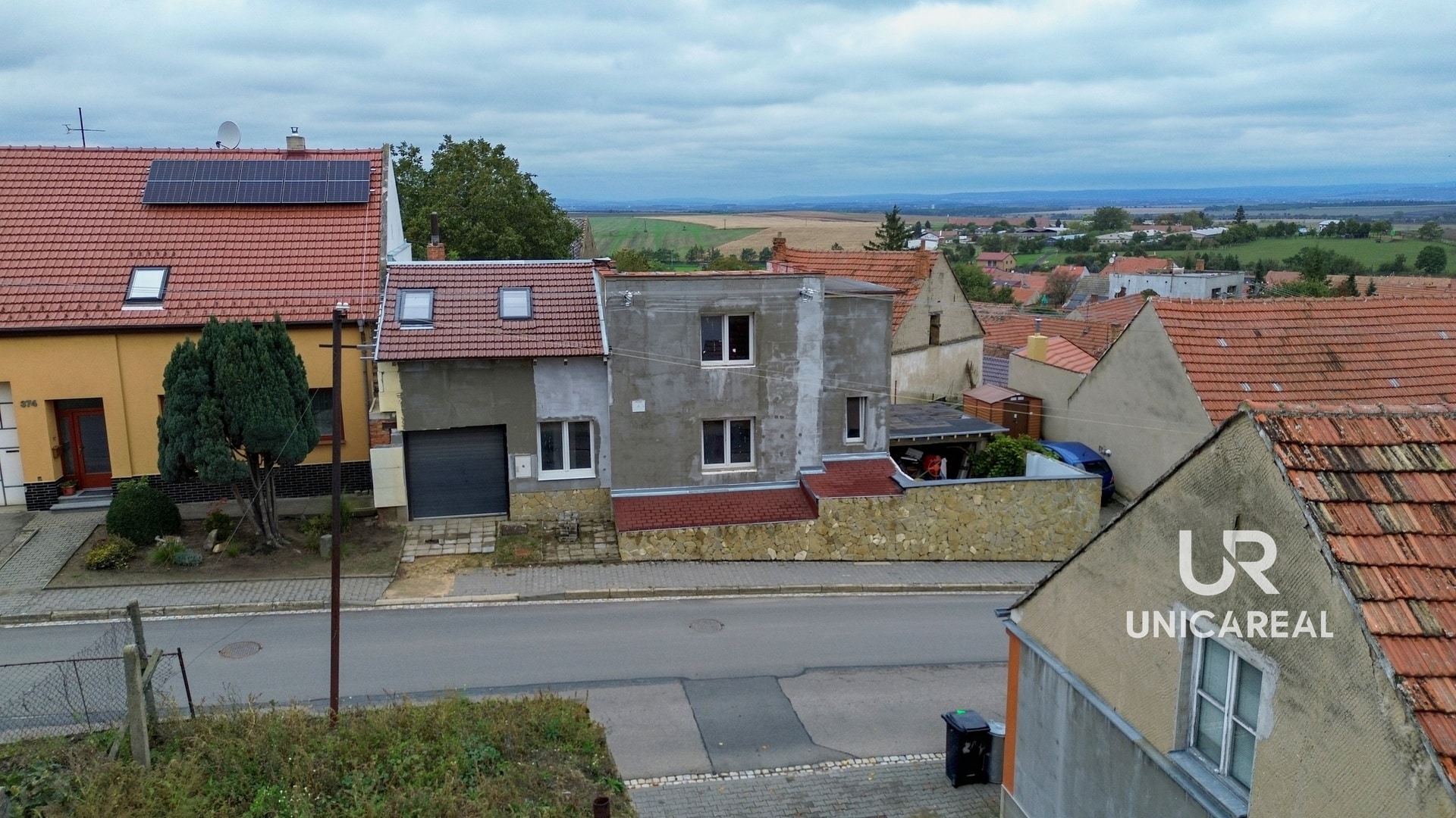 s garáží, terasou, zahrádkou a klenbovým vinným sklepem 18 m² pod domem. Zděný dům se sedlovou střechou je po rozsáhlé rekonstrukci, kdy byla upravena dispozice domu.