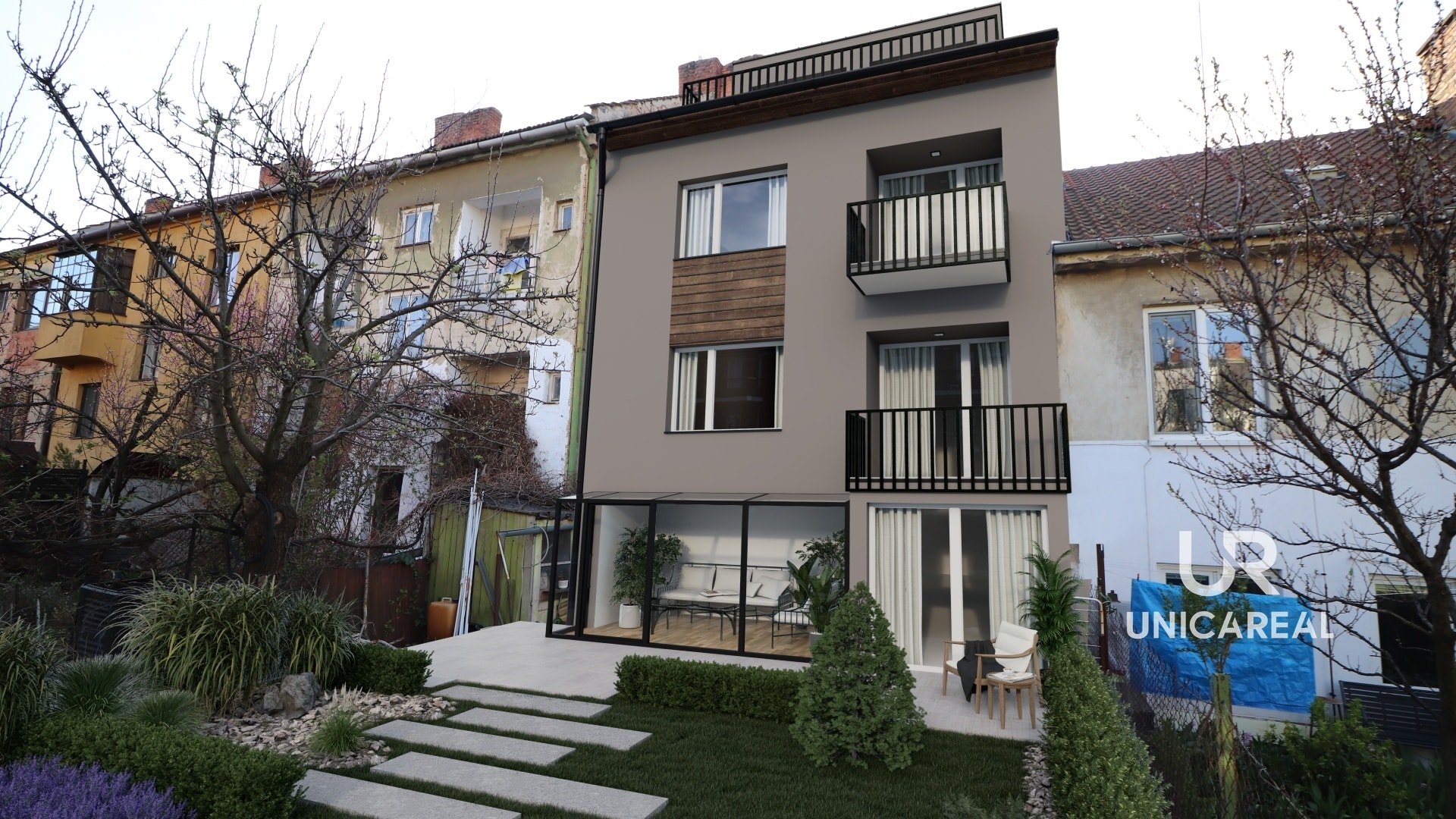 – Dům na pronájmy: Vzhledem k situačnímu řešení domu, kde z centrálního schodiště se vstupuje vždy do uzamykatelného patra, lze přebudovat až na 4 samostatné bytové jednotky. Ve 2.n.p. a 3.n.p. jsou již byty o dispozici 2+1. Další bytová jednotka může být zrekonstruovaná z technického zázemí v 1n.p. a půdního prostoru ve 4.n.p.