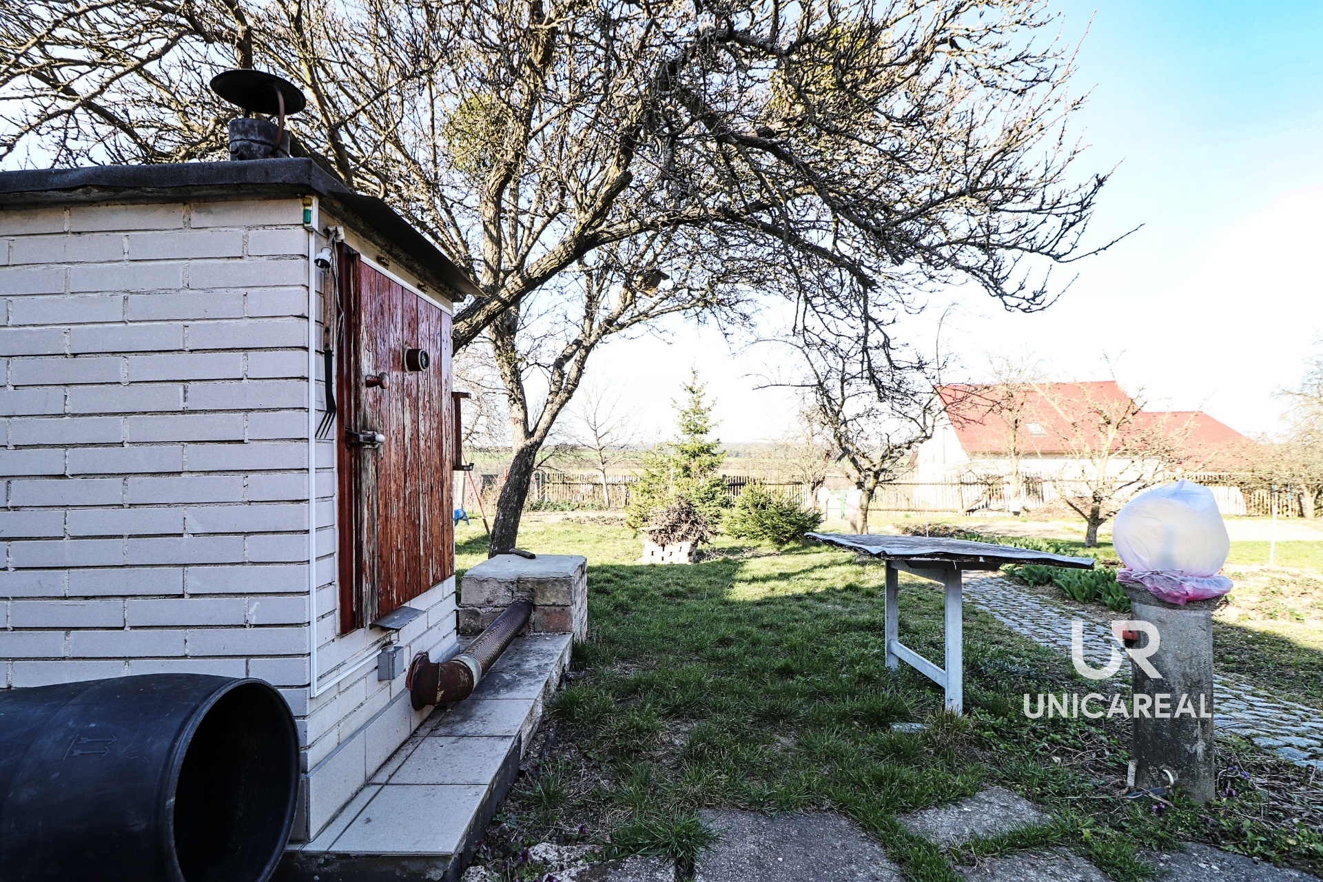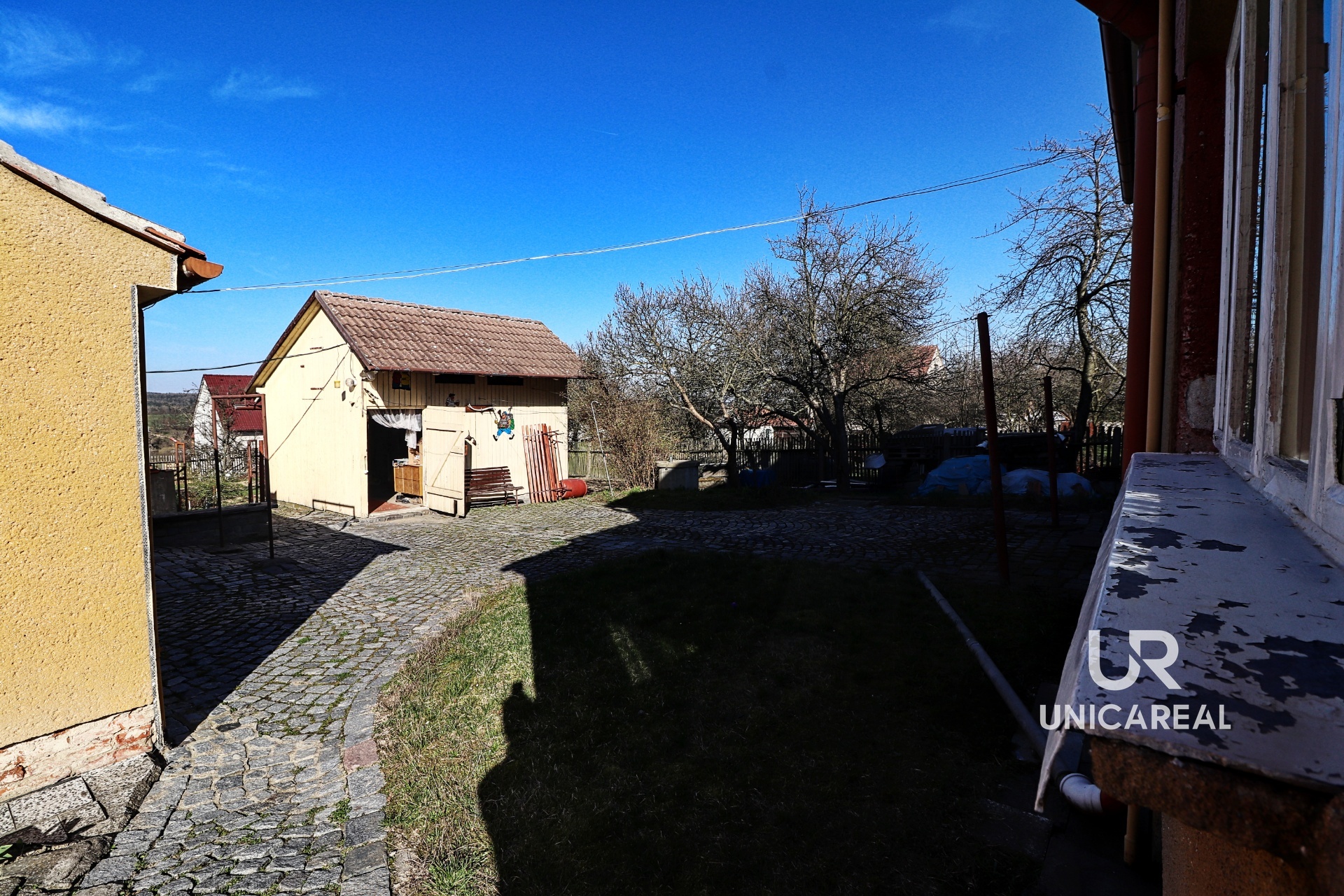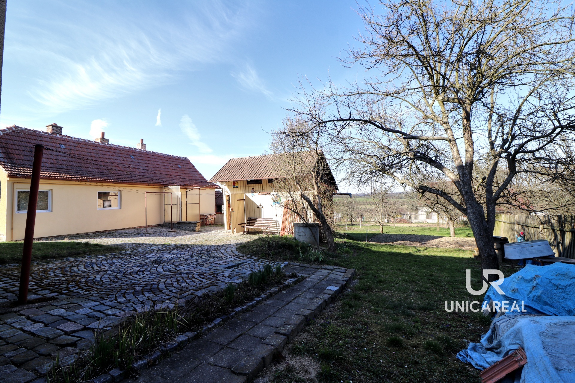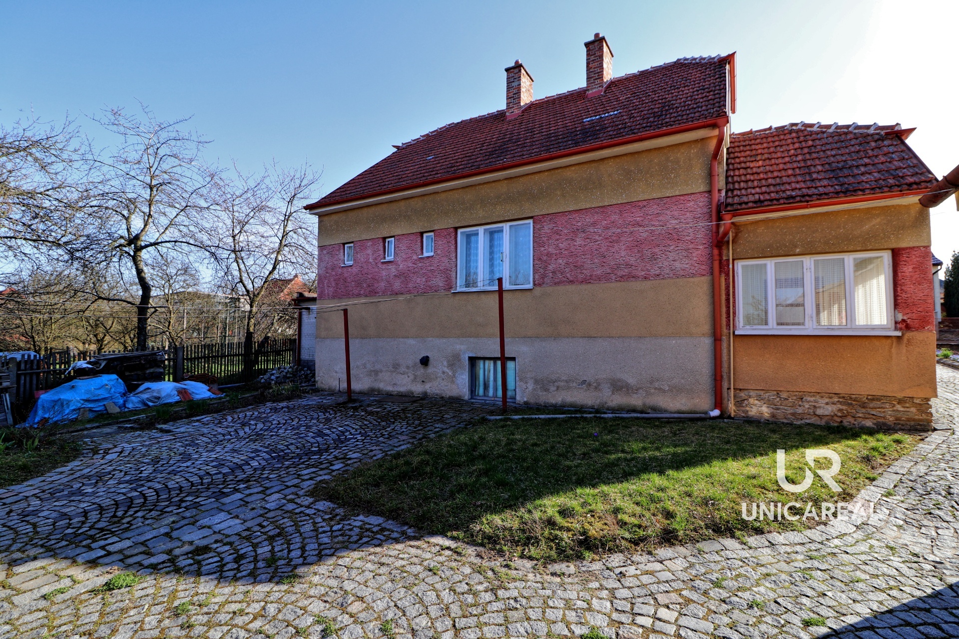 V přízemí je kuchyň, dva pokoje, koupelna a samostatné WC. V patře malý kuchyňský kout a 3 pokoje. Voda do patra je vyvedena, není proto problém vybudovat koupelnu i v patře. Dům je podsklepen, je napojen na veškeré inženýrské sítě, topení plynovým kotlem. Za domem je samostatná budova, kterou je možno využít jako výměnek. Je zde malá kuchyňka, jídelna, samostatná ložnice, koupelna se sprchovým koutem a WC. Domek má vlastní plynový kotel, plastová okna i dveře, rozvod elektřiny v mědi. Oba domy je možno současně vytápět i kotlem na tuhá paliva. V zadní části uzavřeného dvoru je dřevěná stavba vhodná pro uložení nejen zahradního nářadí. Velkou výhodou je vlastní kamenná studna. Vedle domu je samostatná garáž a za dvorem pěkná, udržovaná zahrada s ovocnými stromy. Zahrada je přístupná i zezadu.