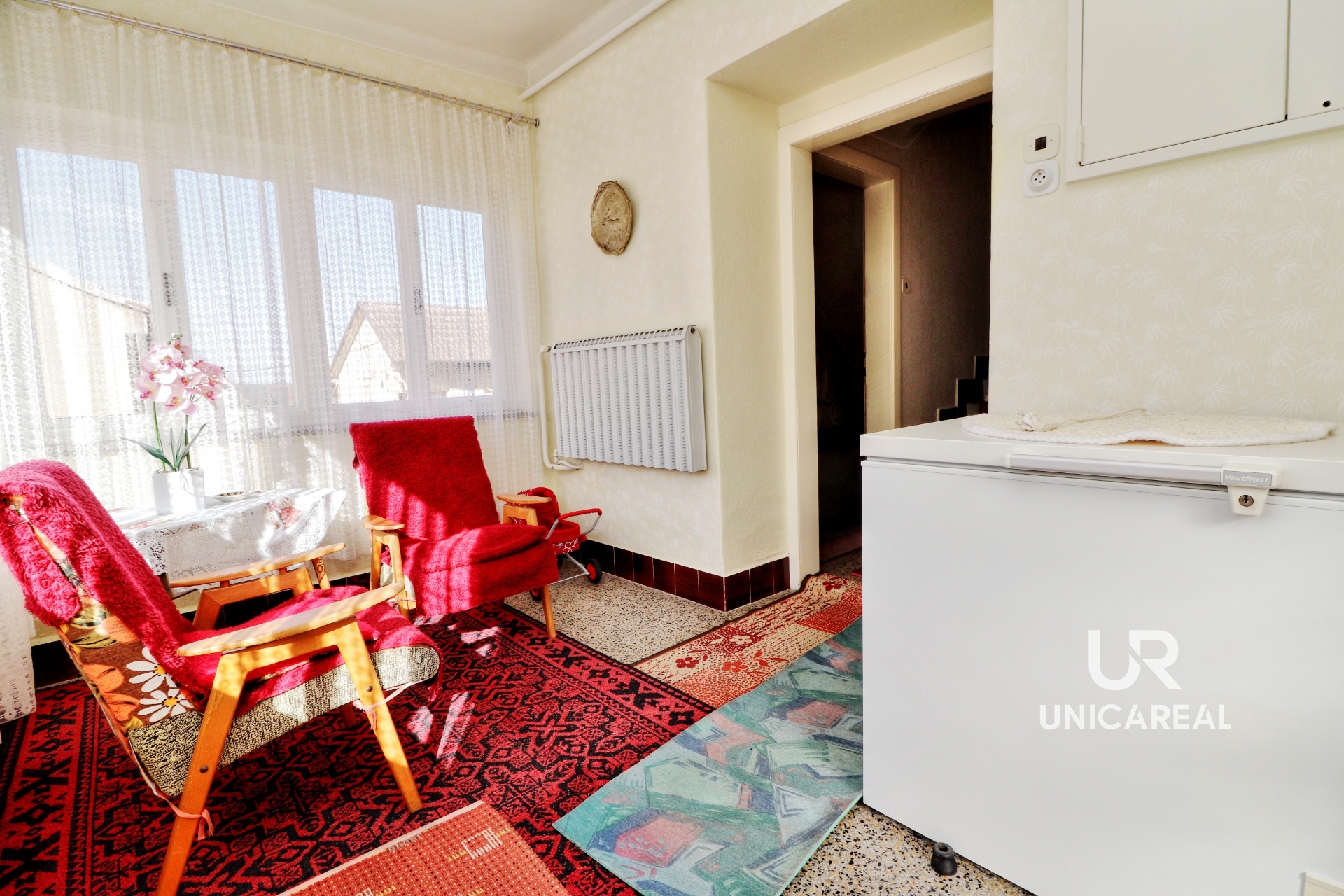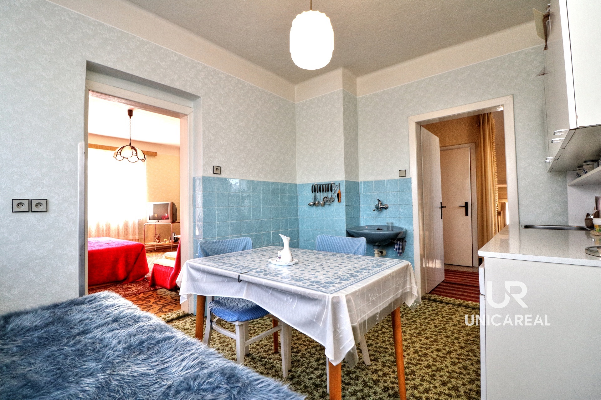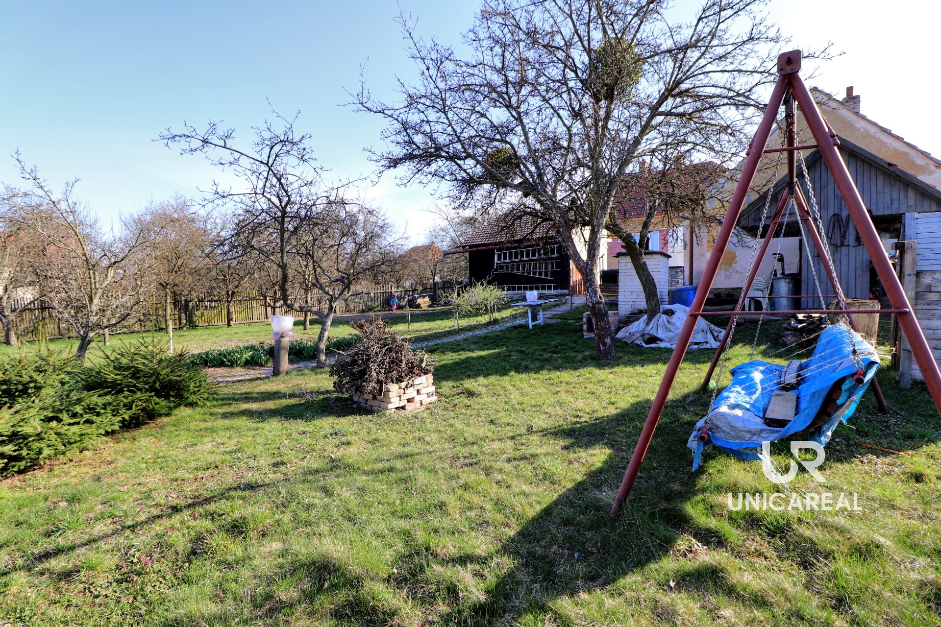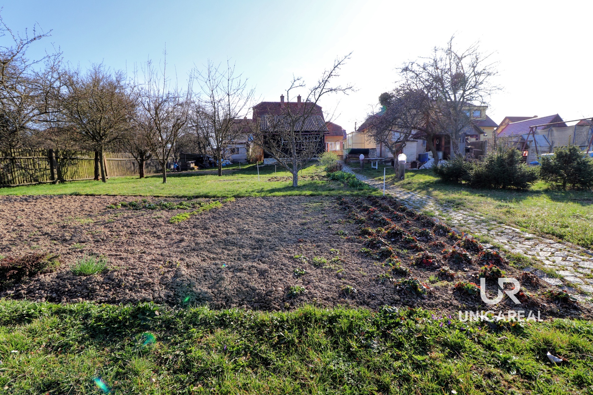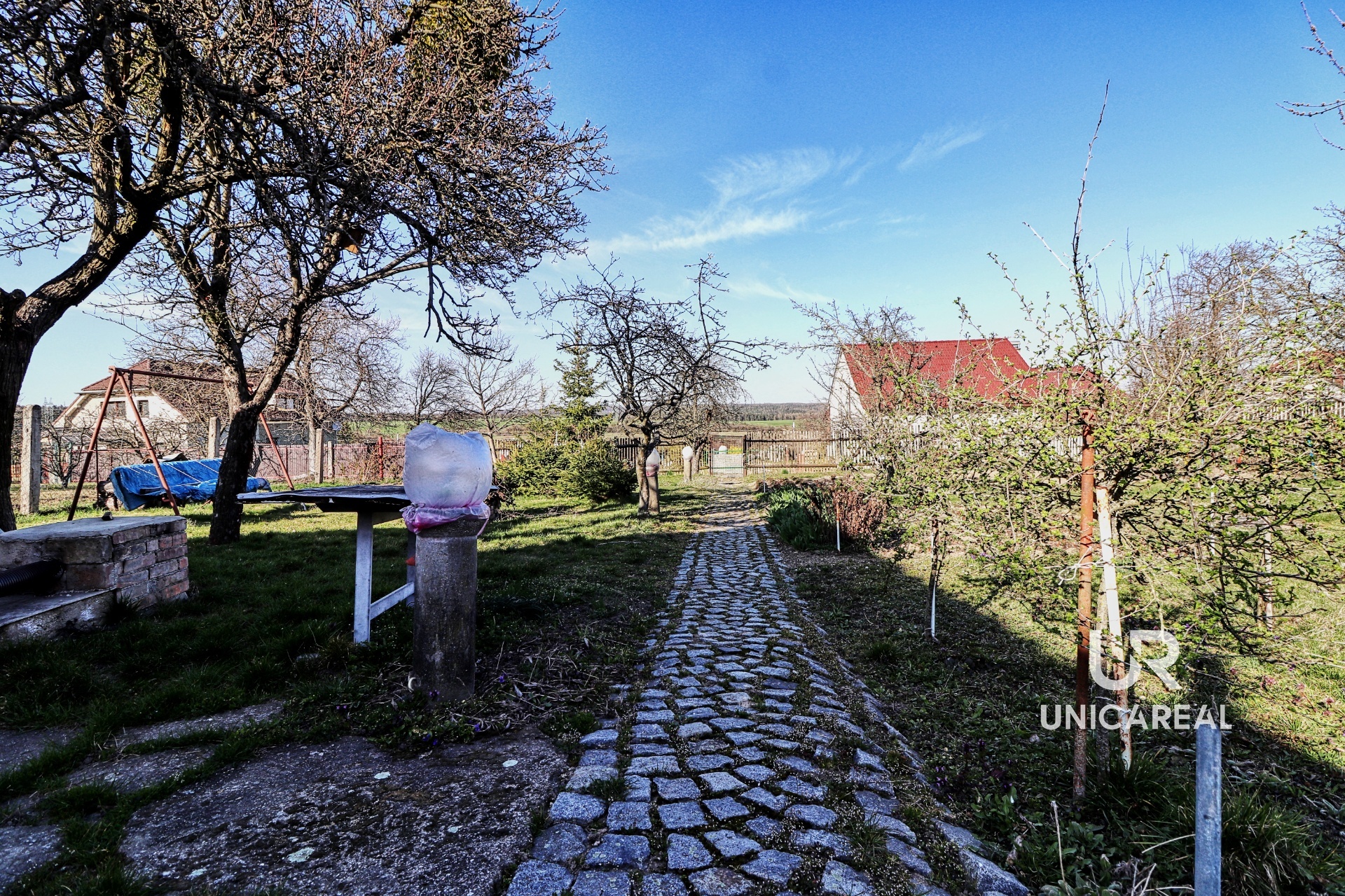 V přízemí je kuchyň, dva pokoje, koupelna a samostatné WC. V patře malý kuchyňský kout a 3 pokoje. Voda do patra je vyvedena, není proto problém vybudovat koupelnu i v patře. Dům je podsklepen, je napojen na veškeré inženýrské sítě, topení plynovým kotlem. Za domem je samostatná budova, kterou je možno využít jako výměnek. Je zde malá kuchyňka, jídelna, samostatná ložnice, koupelna se sprchovým koutem a WC. Domek má vlastní plynový kotel, plastová okna i dveře, rozvod elektřiny v mědi. Oba domy je možno současně vytápět i kotlem na tuhá paliva. V zadní části uzavřeného dvoru je dřevěná stavba vhodná pro uložení nejen zahradního nářadí. Velkou výhodou je vlastní kamenná studna. Vedle domu je samostatná garáž a za dvorem pěkná, udržovaná zahrada s ovocnými stromy. Zahrada je přístupná i zezadu.