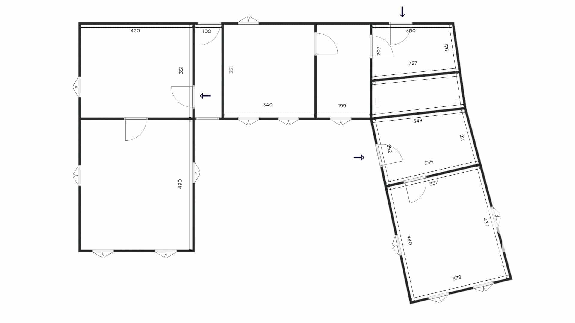 2. obytná jednotka (2 místnosti s chodbou v prvním patře)