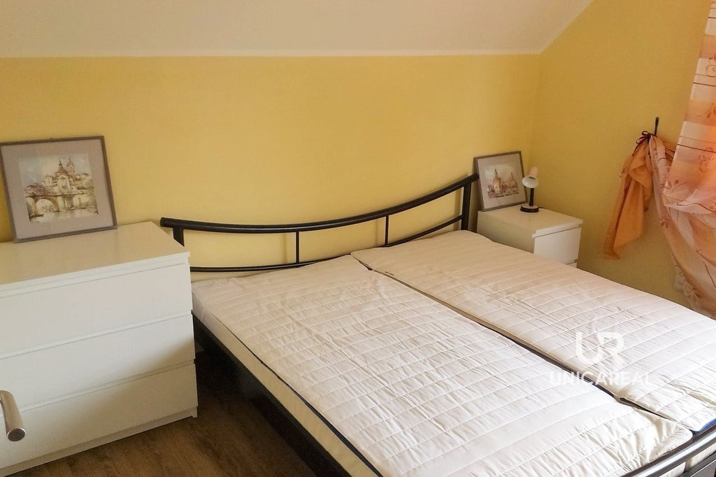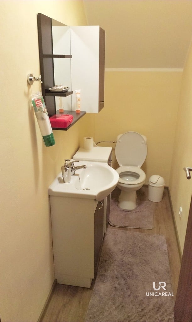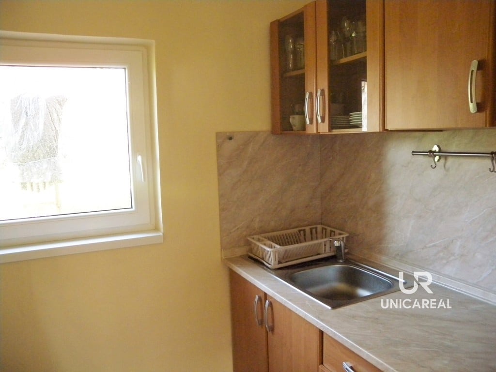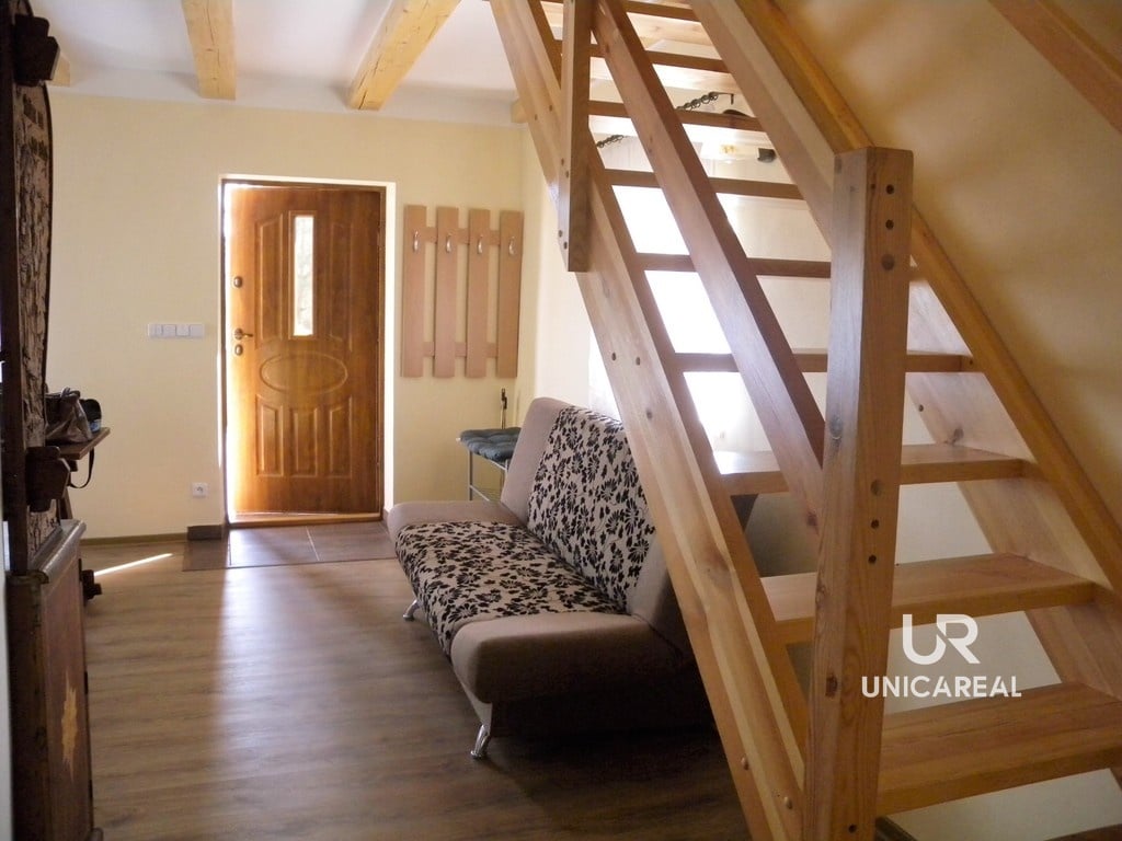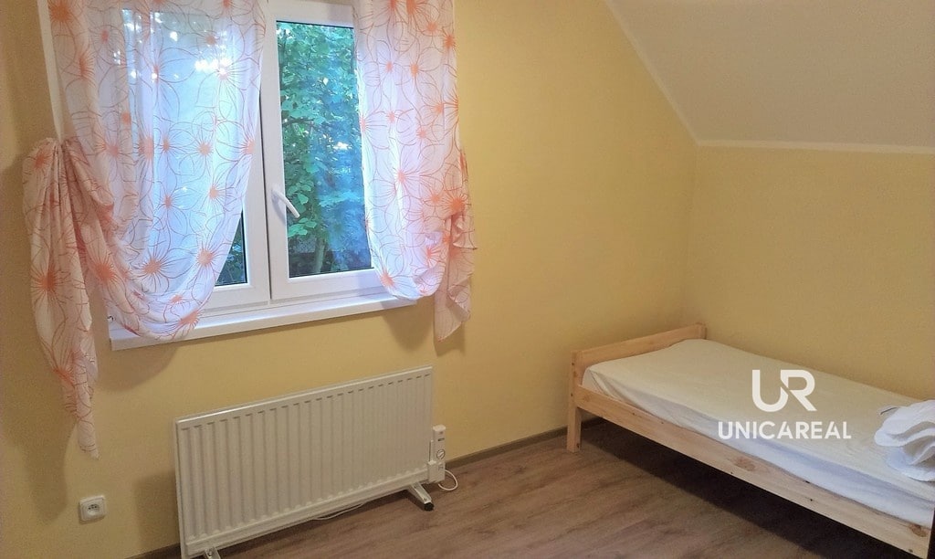 V prvním podlaží rodinného domu na ploše 31 m2 se nachází kuchyň, obývací pokoj a WC. V celém domě je rozvedena voda z vlastní studny, topení je na elektřinu, odpad je sveden do septiku. Ve druhém podlaží jsou 2 ložnice – pokoj (11 m2), druhý pokoj (11,5 m2) s balkonem. Na chodbě je druhá toaleta. Vytápění všech místností je elektrické.