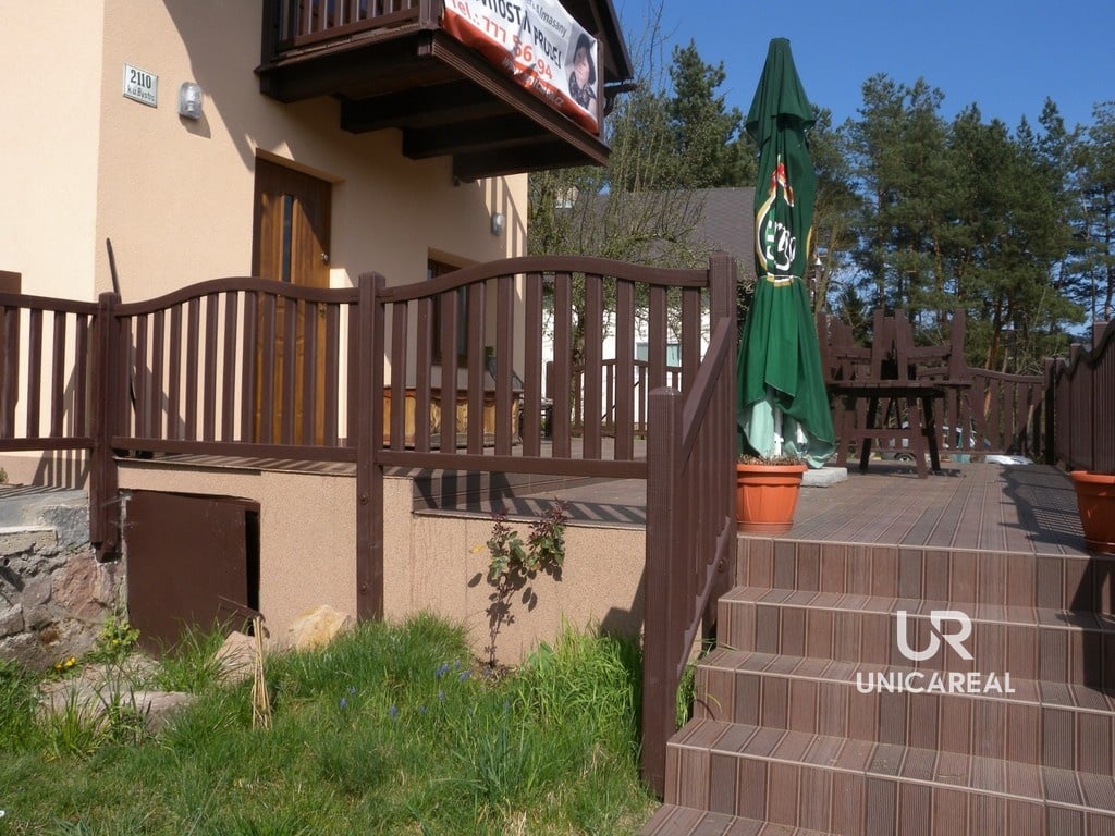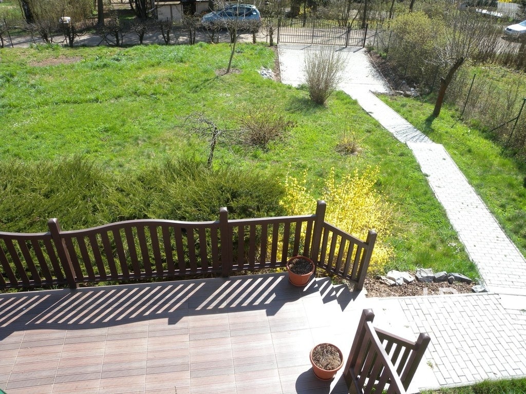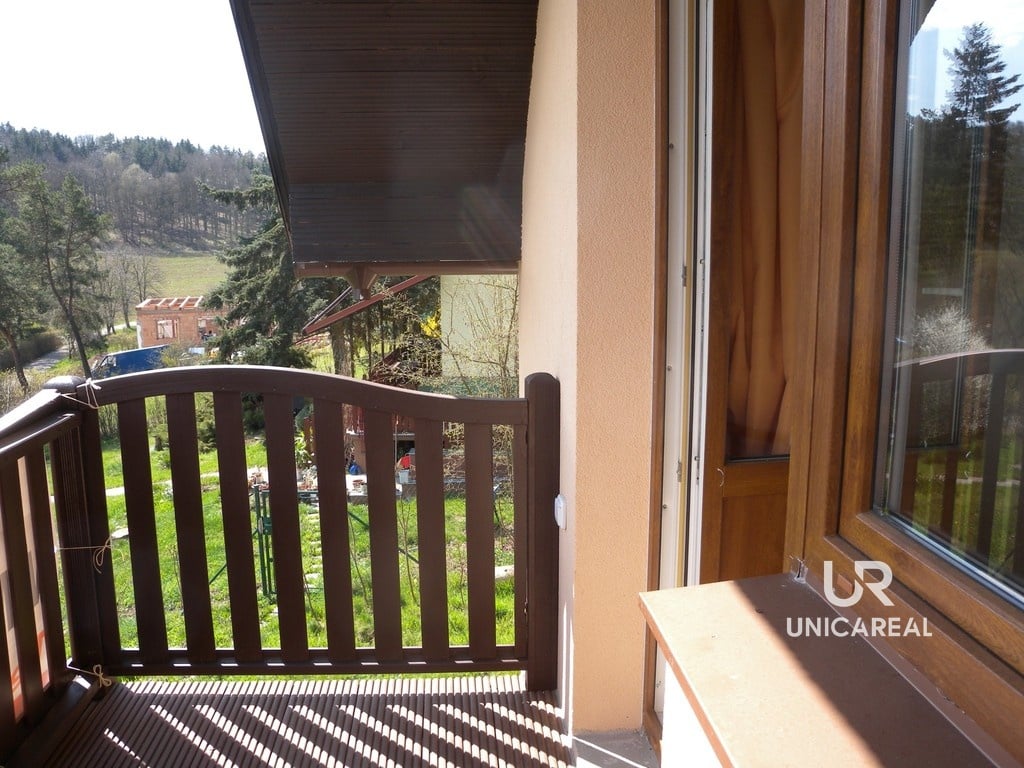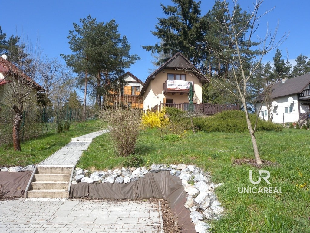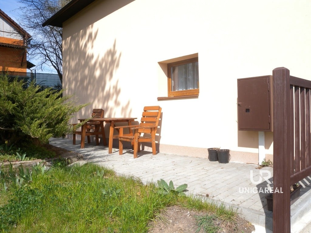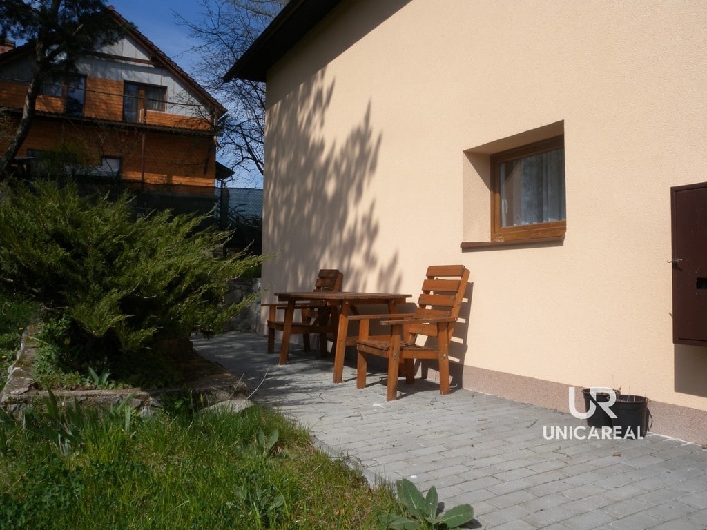 Chata má balkon a terasu s posezením orientovanou na jižní stranu s výhledem na les a hrad Veveří. Domek je celý oplocen včetně parkovacího stání pro dvě auta. Na zahradě je možno vybudovat bazén.